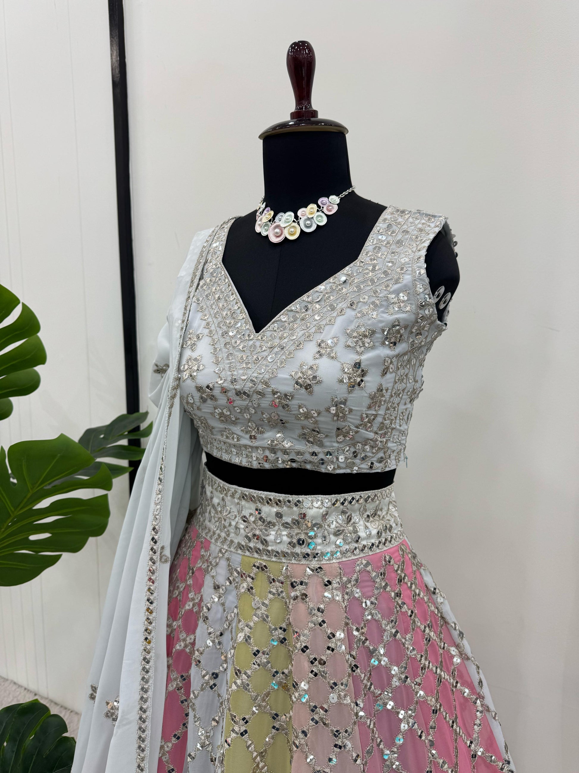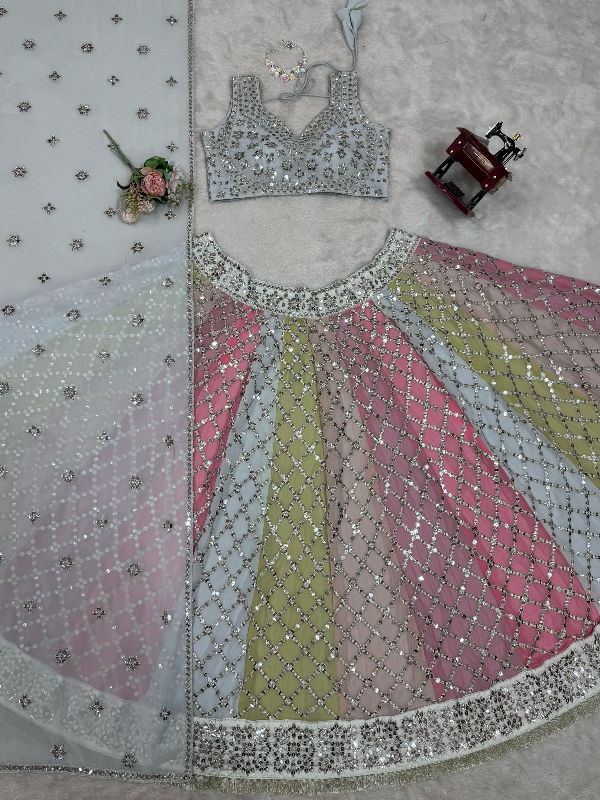 Work : Thread With 9mm Sequence With Four Side Fancy Lace Border