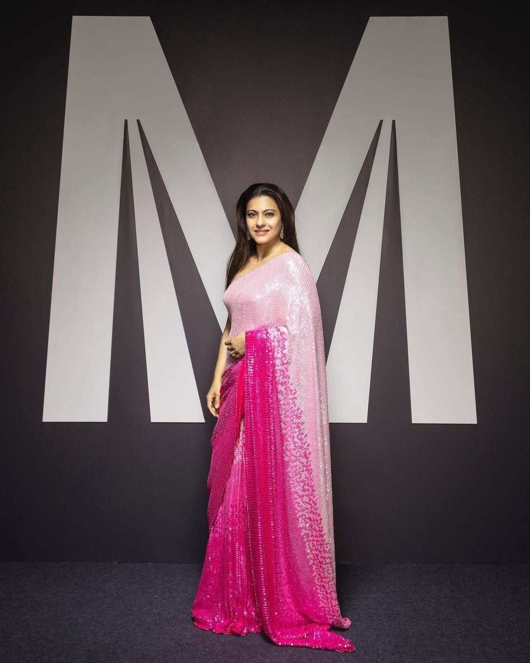 Launching Bollywood Kajol Devgan Blockbuster Sequins Saree in Georgette Fabric