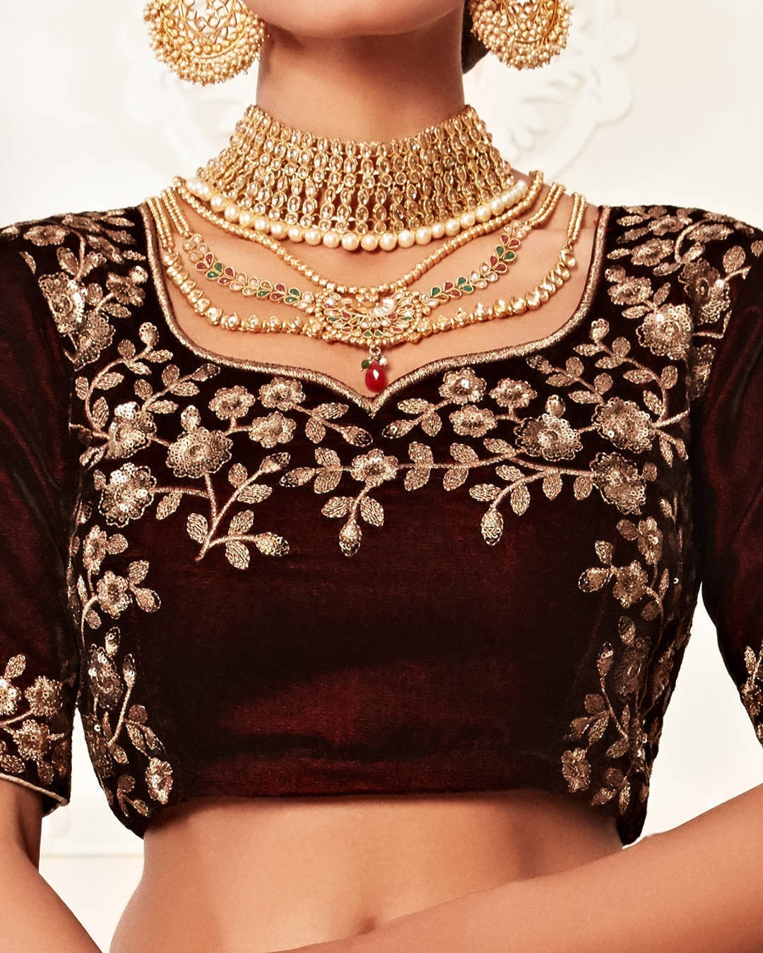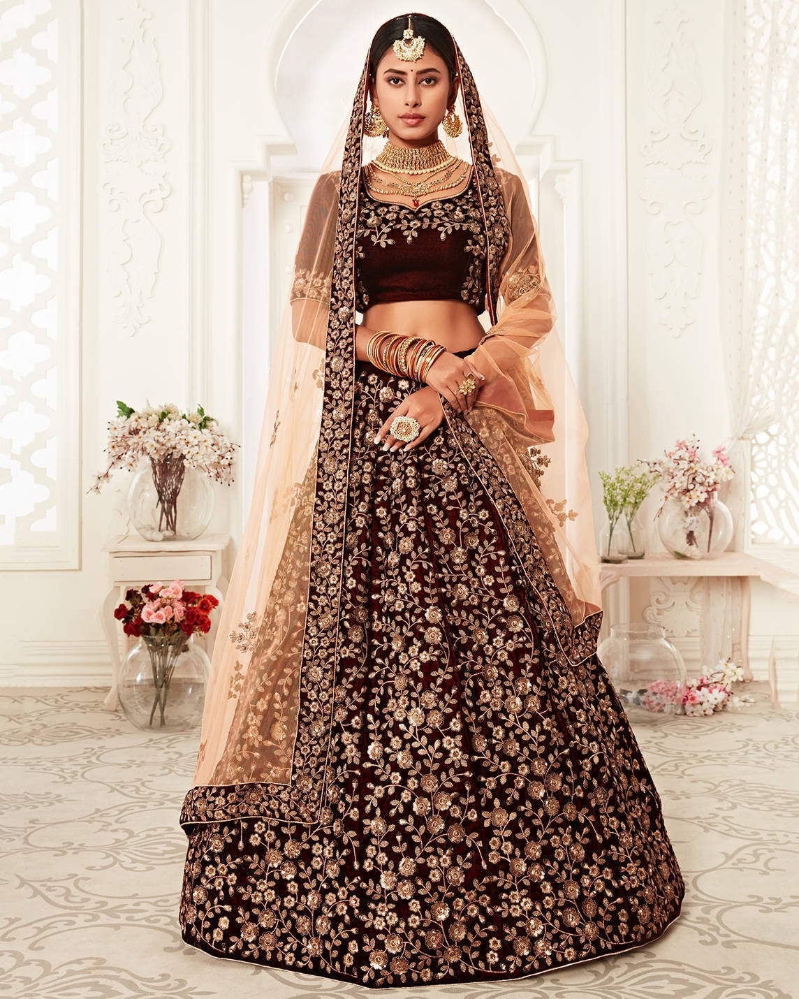 Majestic Maroon Velvet Lehenga