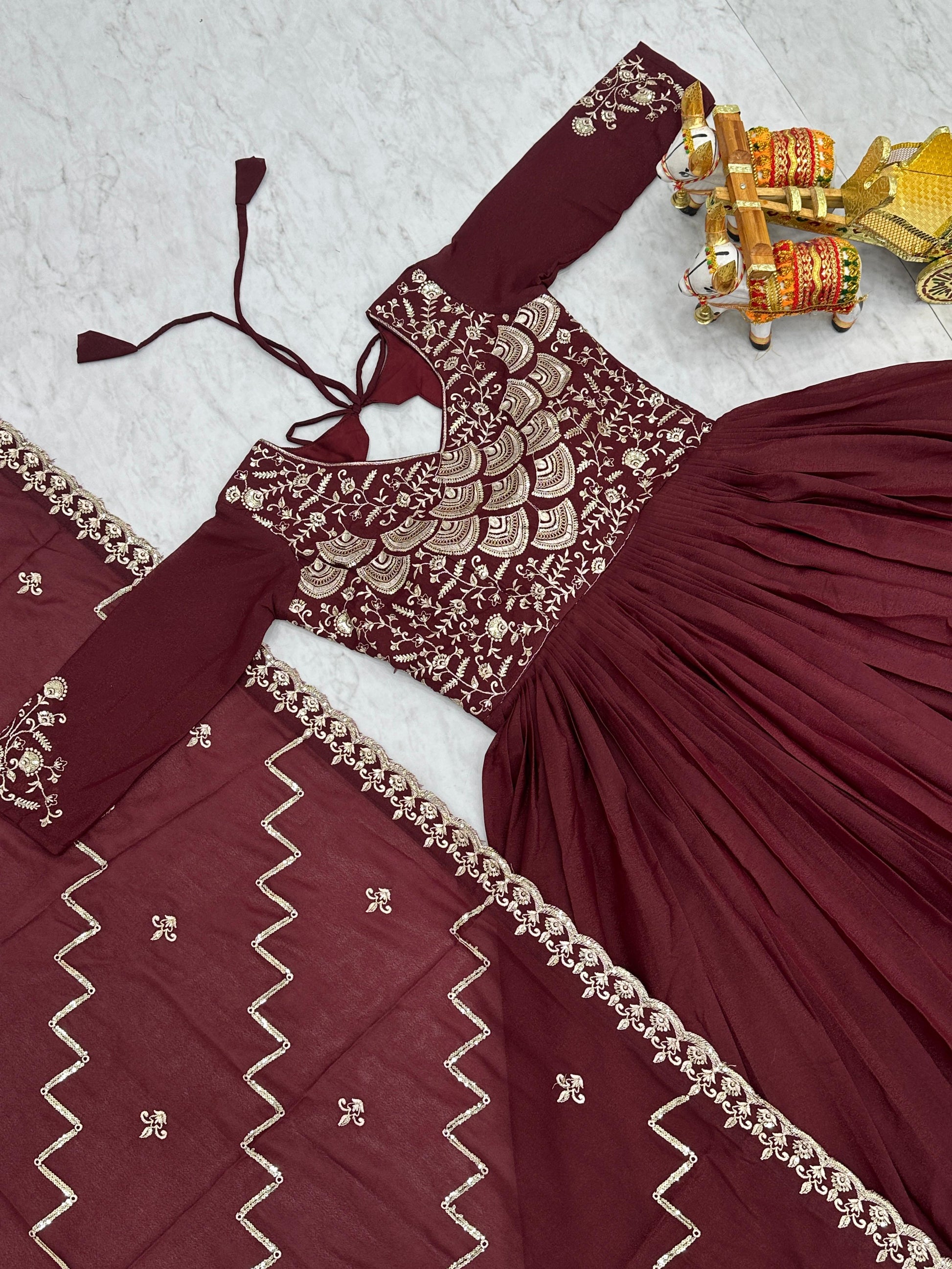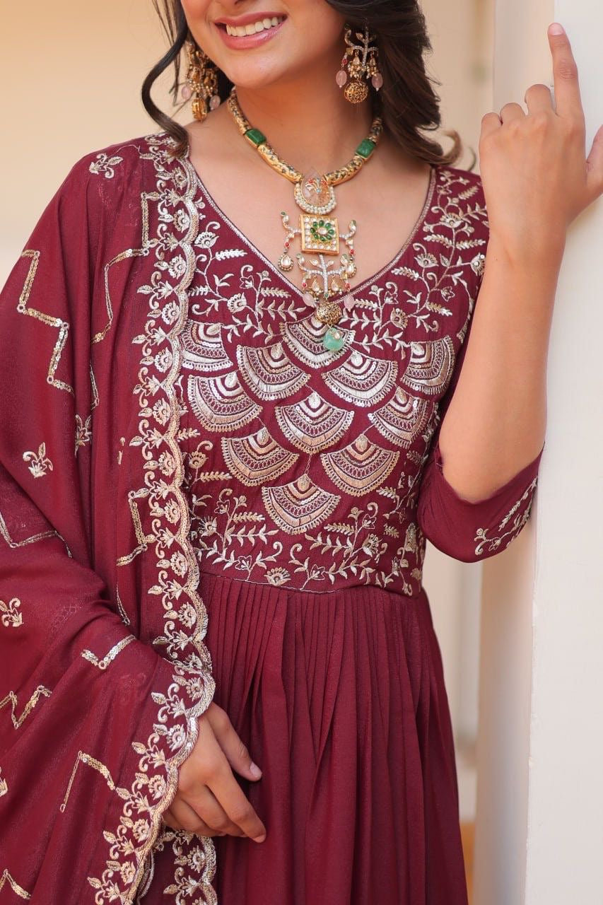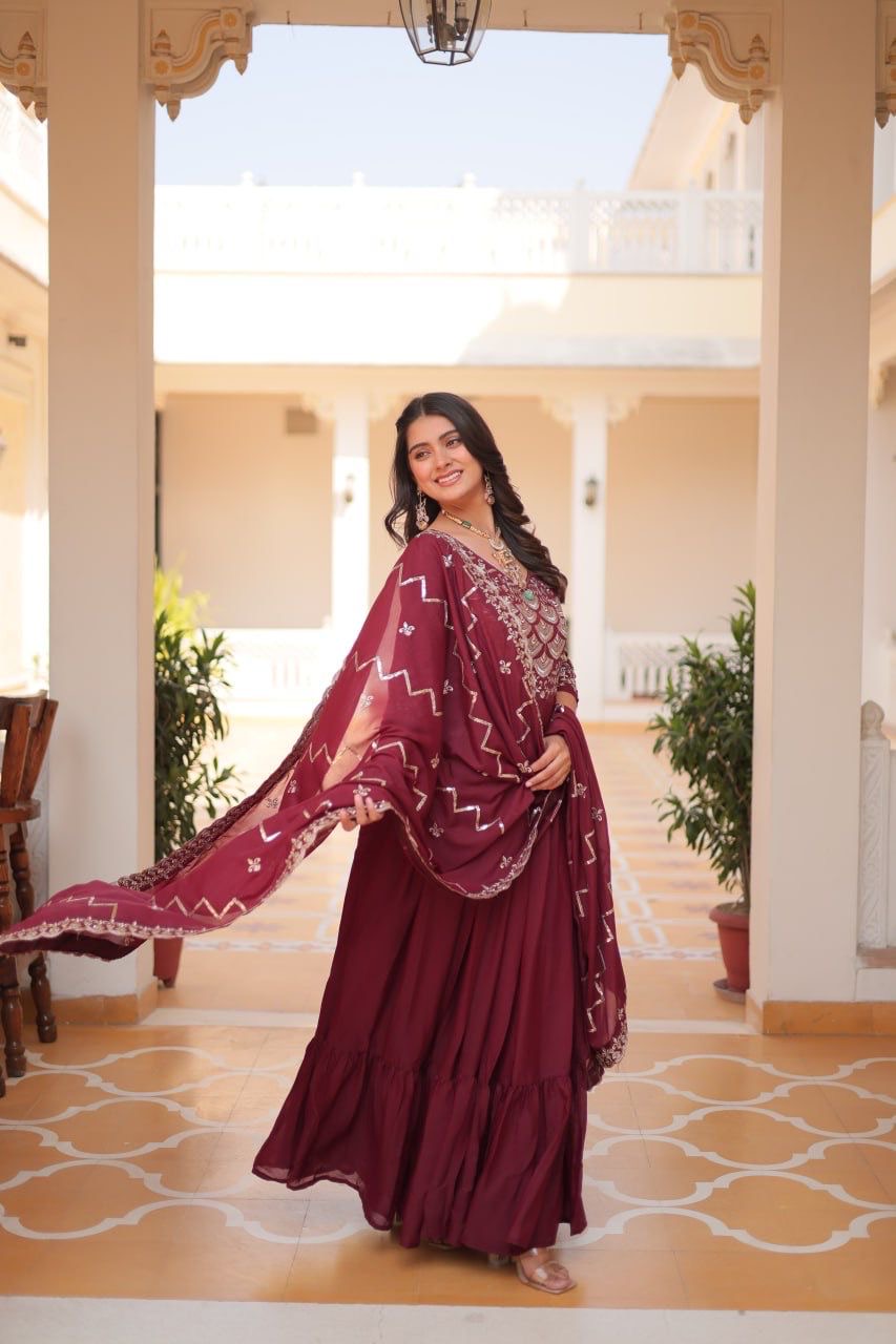 Maroon Color Beautiful Anarkali Dress in Georgette Fabric