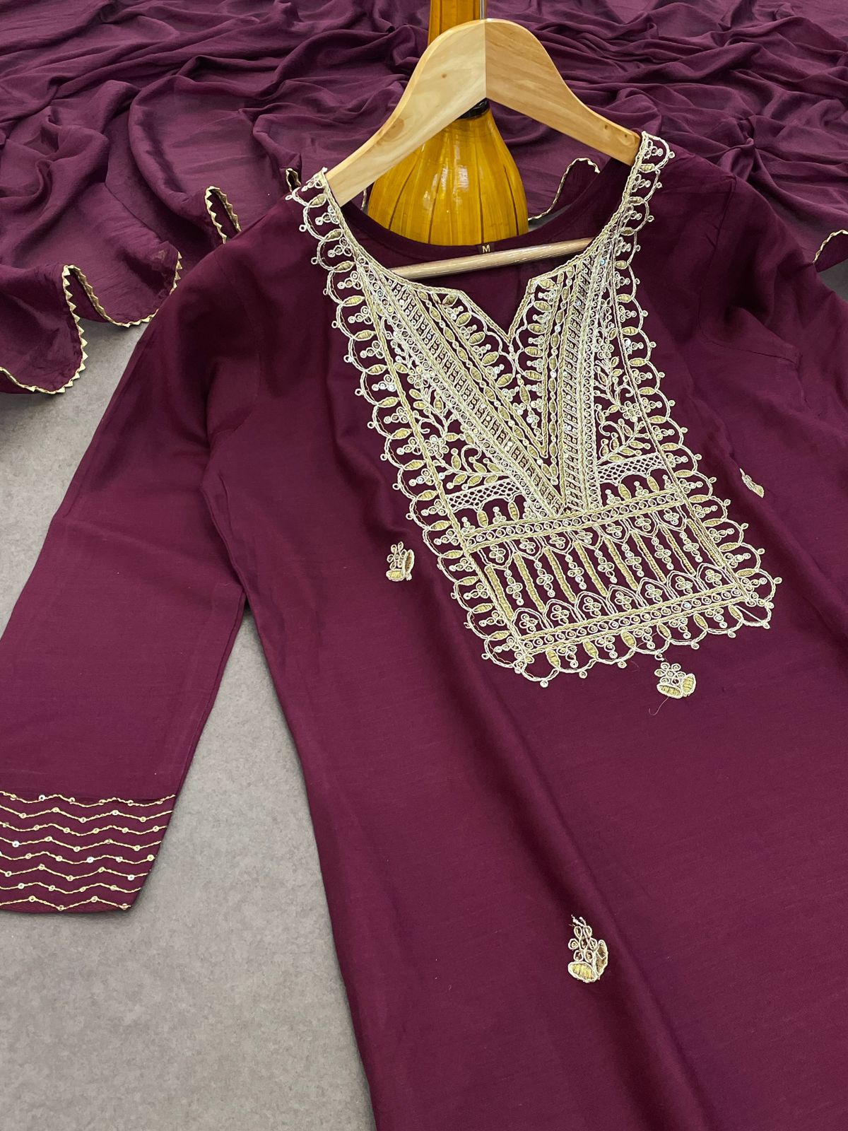 Maroon Color Beautiful Rayon Summer Wear Kurti Pent 3 Pics Set
