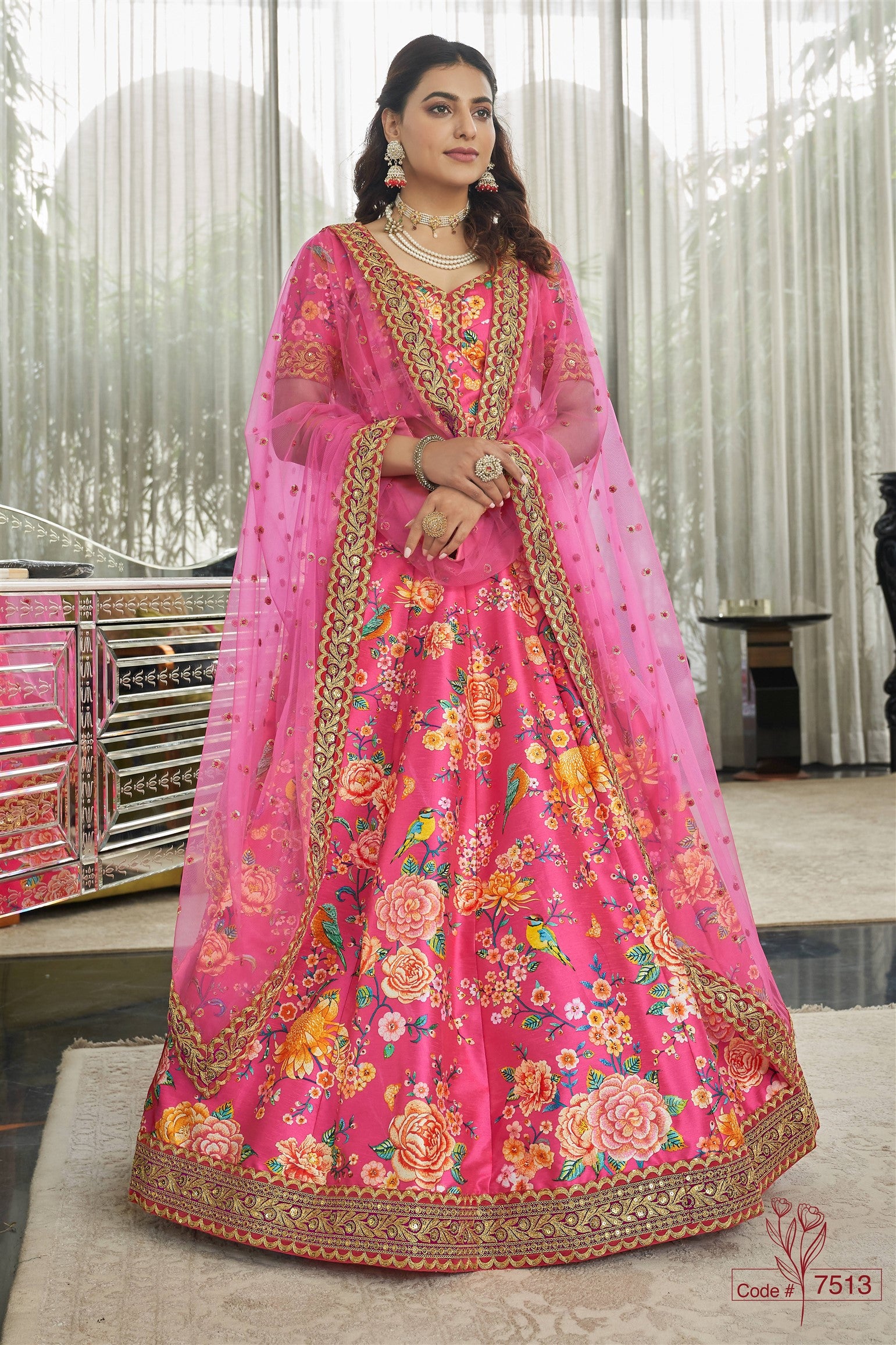 Modern Floral Lehenga Choli For Wedding Function in Pink color