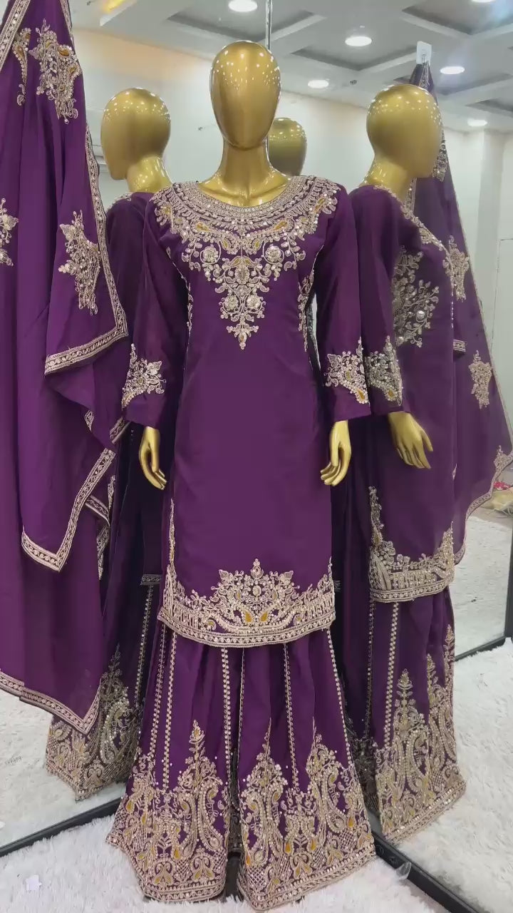 Plazzo Fabrics :Pure Chinnon Silk With Heavy Embroidery Coding Dori-Sequence Work With Elastic