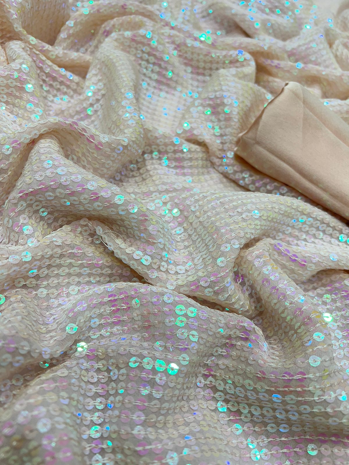 A Moment In Time. Like A Million Starts In The Sublime Sky, Delicately Handcrafted Sequins Work Bring Out The Vibrancy Of This Silver Georgette Saree.