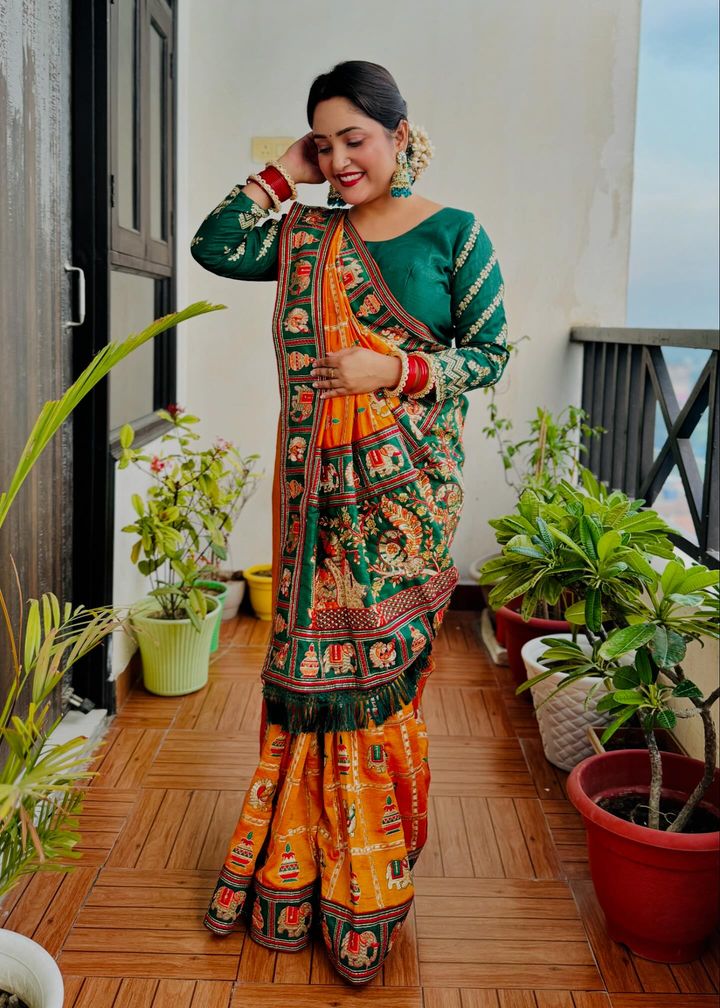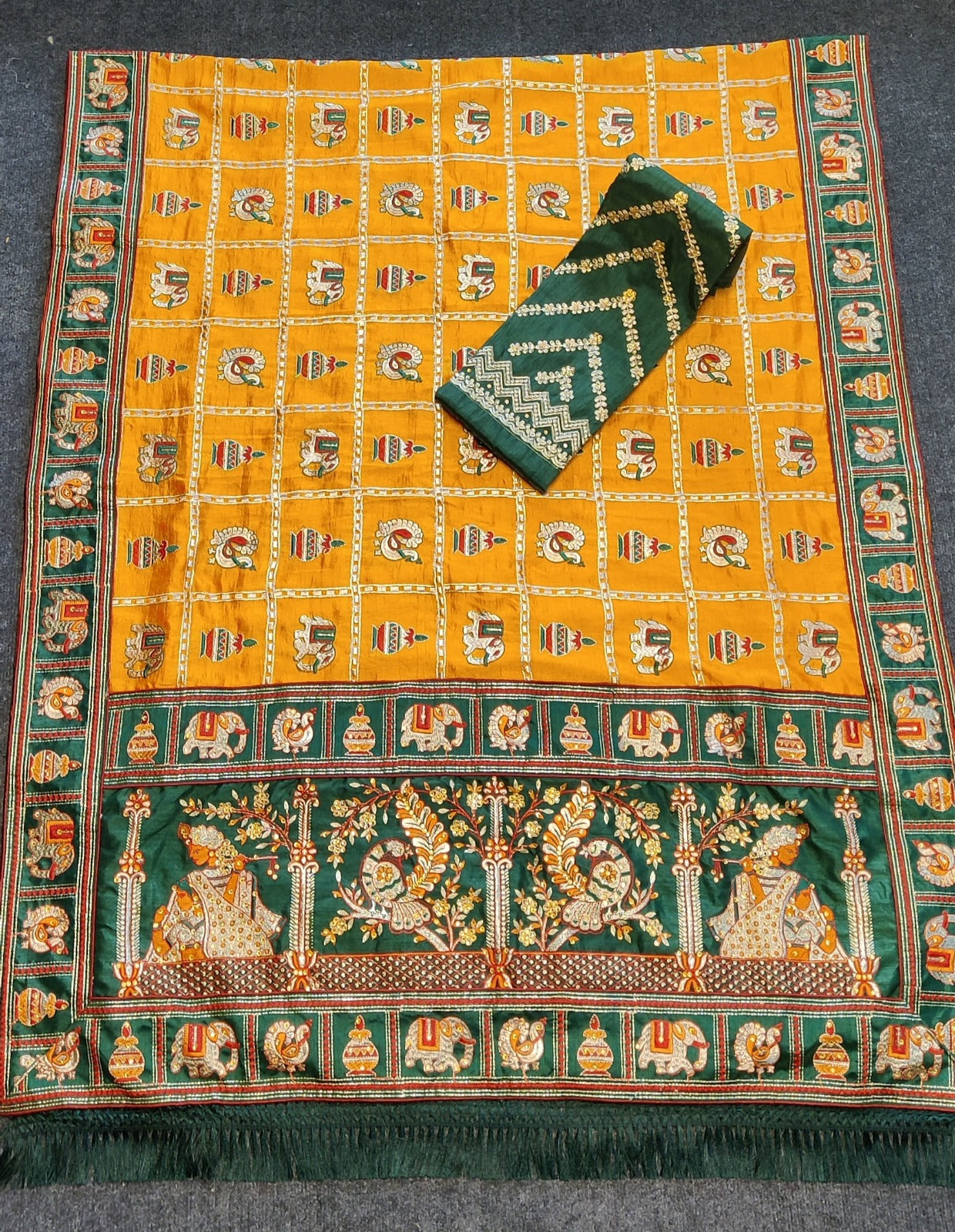 Mustards Yellow Color Beautiful Panetar Saree in Vichitra Silk special Occasion Saree