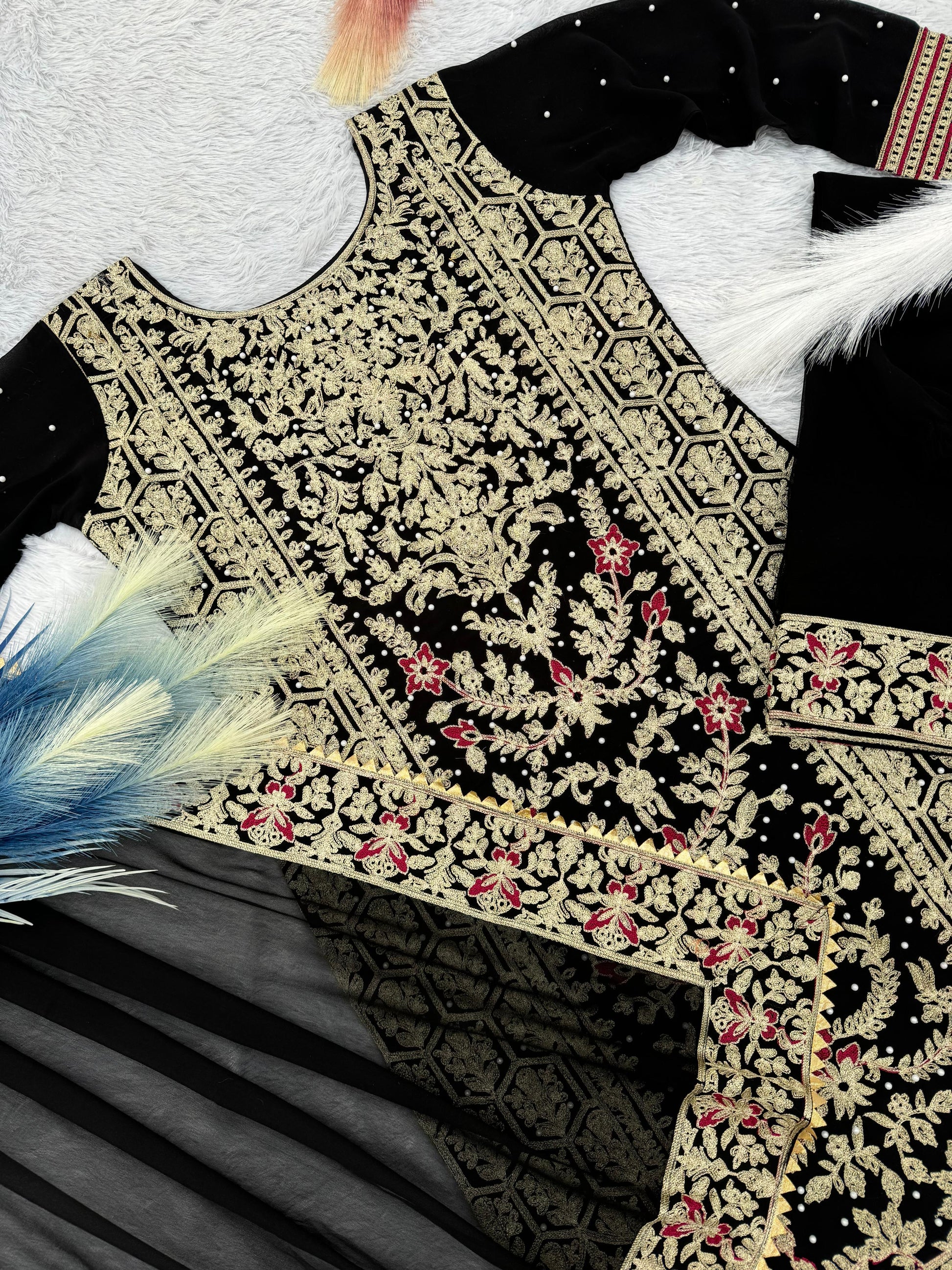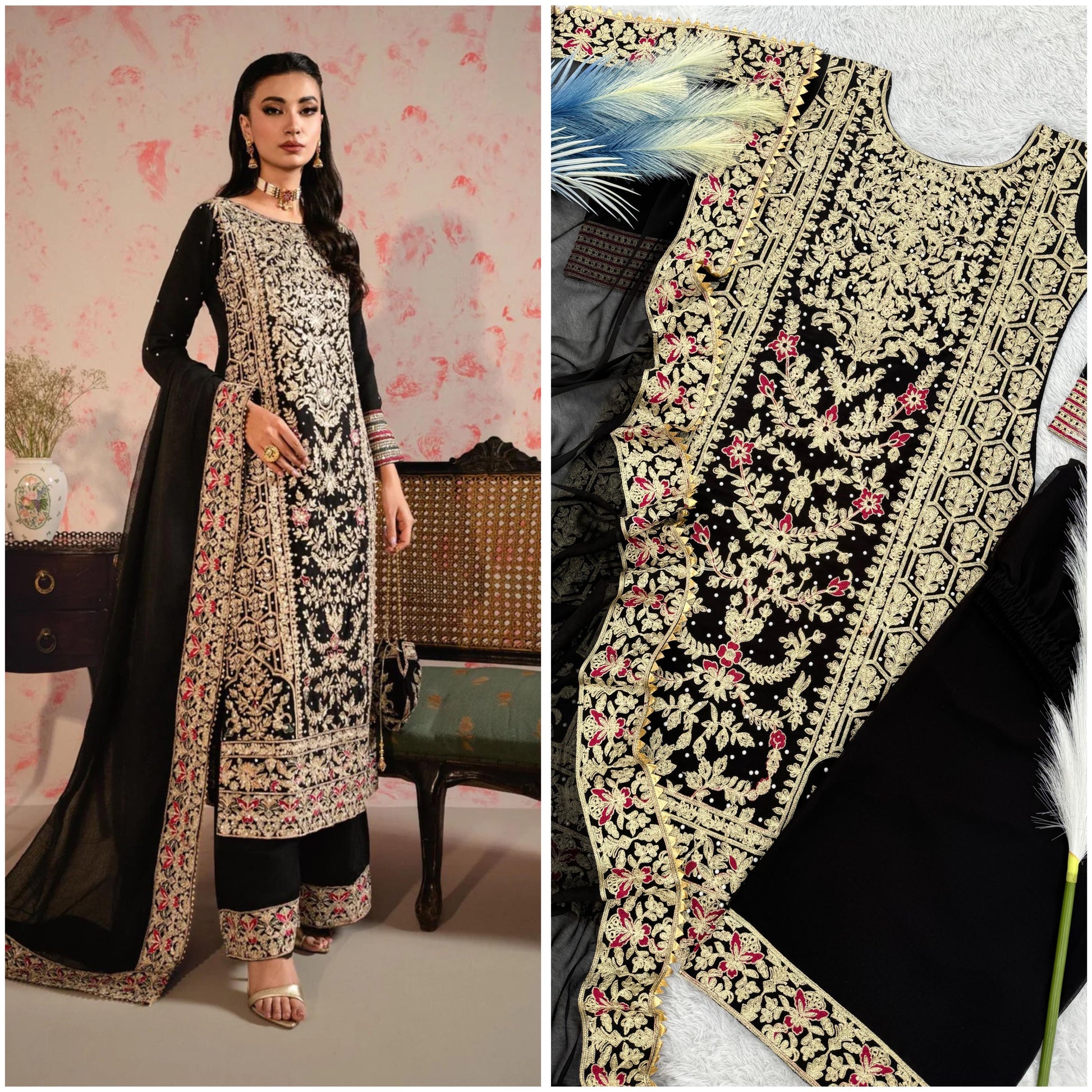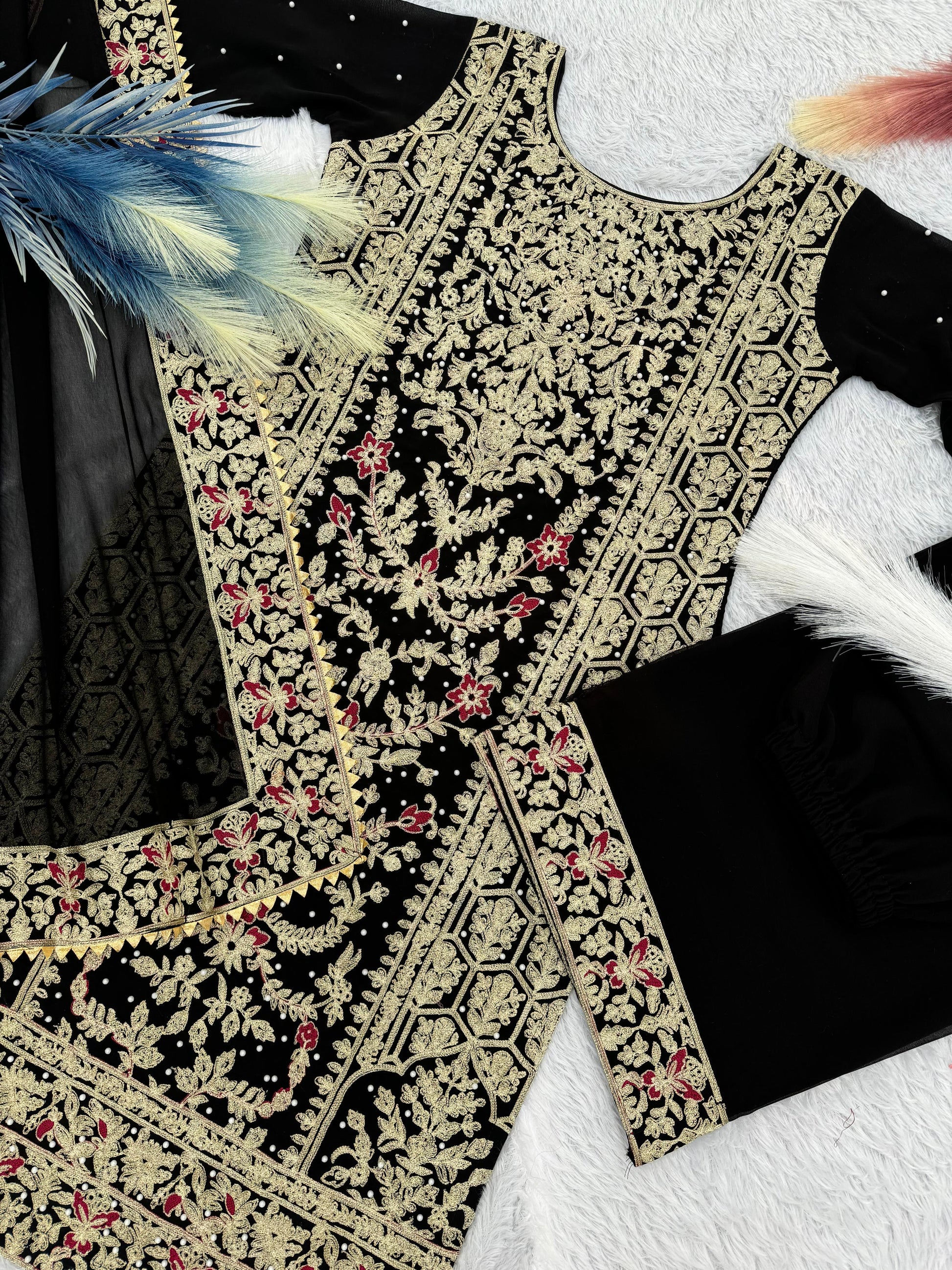 ➡️Work :- Attractive Embroidery Work With Riveted Moti Work(Work Only Front Side)