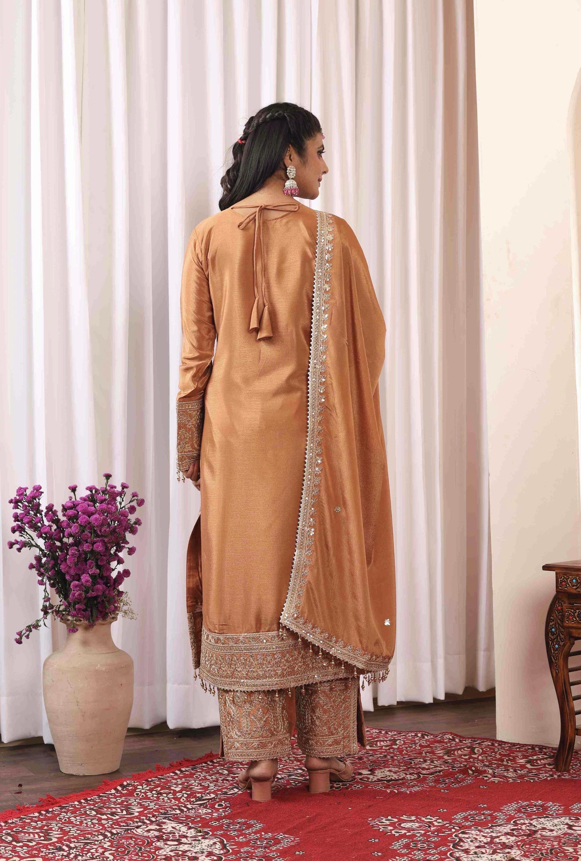 Orange Color Beautiful Partywear Chinon fabric Suit