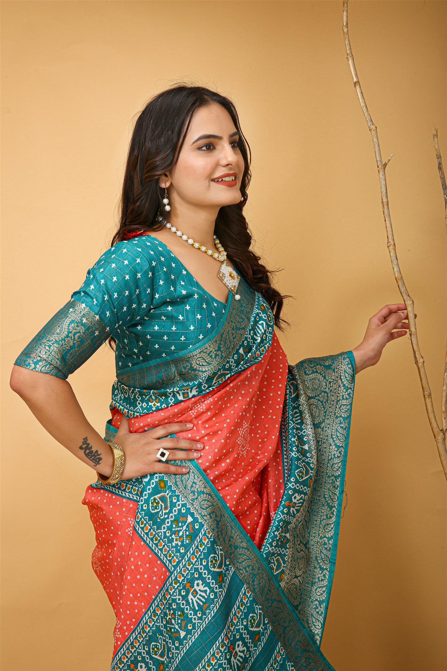Fabric-Saree- soft Dola cotton silk fabric .(6.30m with print blouse)