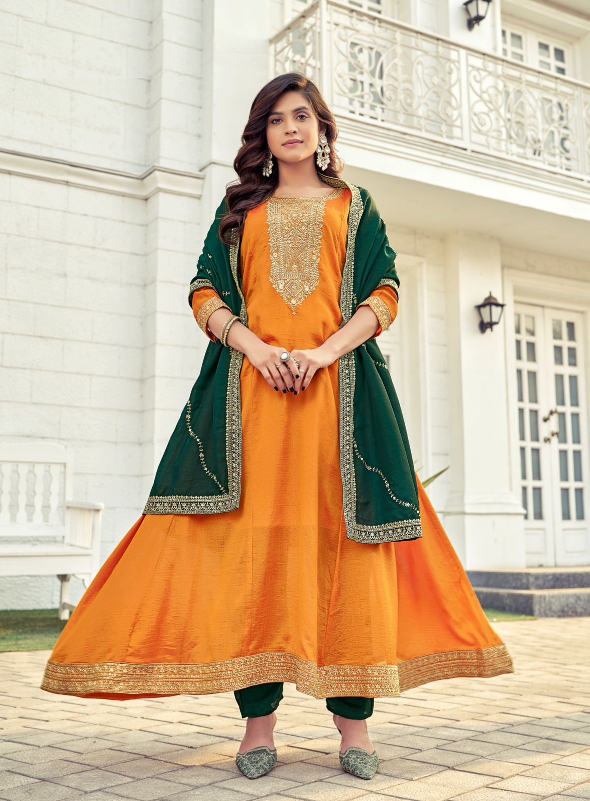 Orange Yellow Color Beautiful Collection With Full Flair And Boutique Finish Stitching