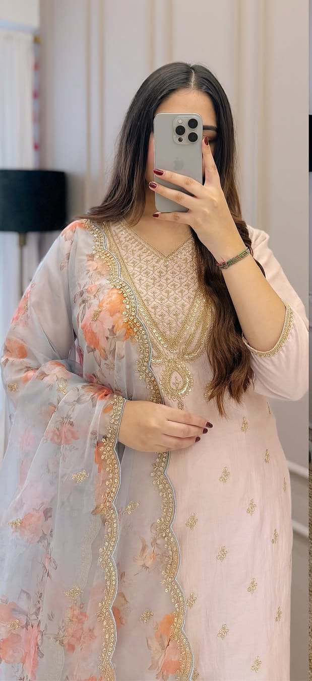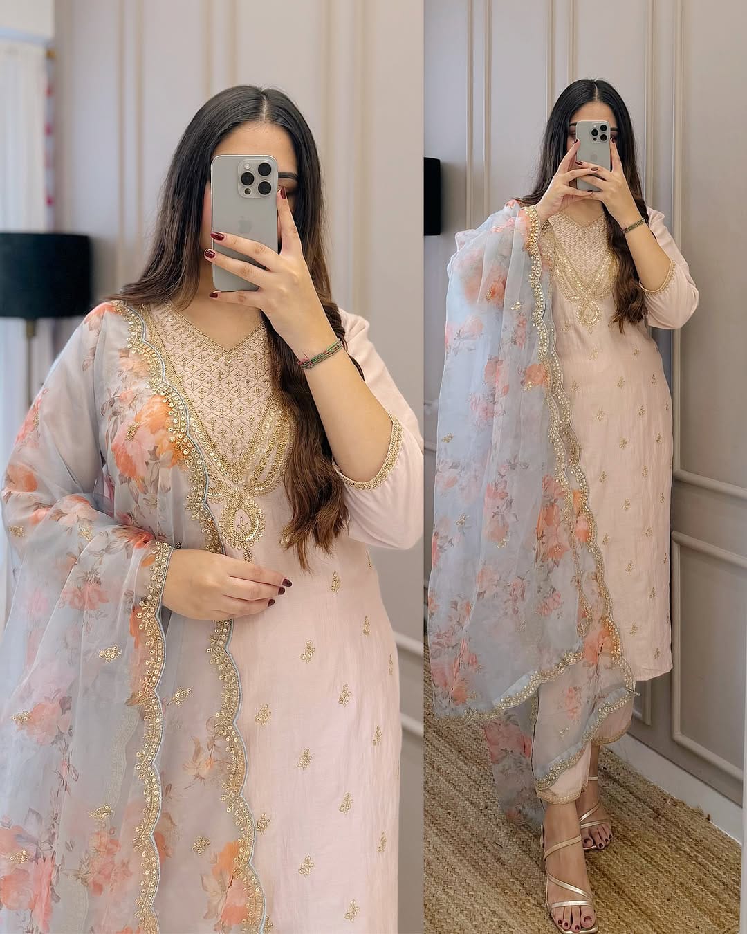 Featuring Soft Loom Pakistani Suit Which Is Beautifully Decorated With Digital Prints And Hand Embroidery. It Is Absolutely Perfect For Your Upcoming Occasions, It Is Very Easy Breezy And Comfortable.