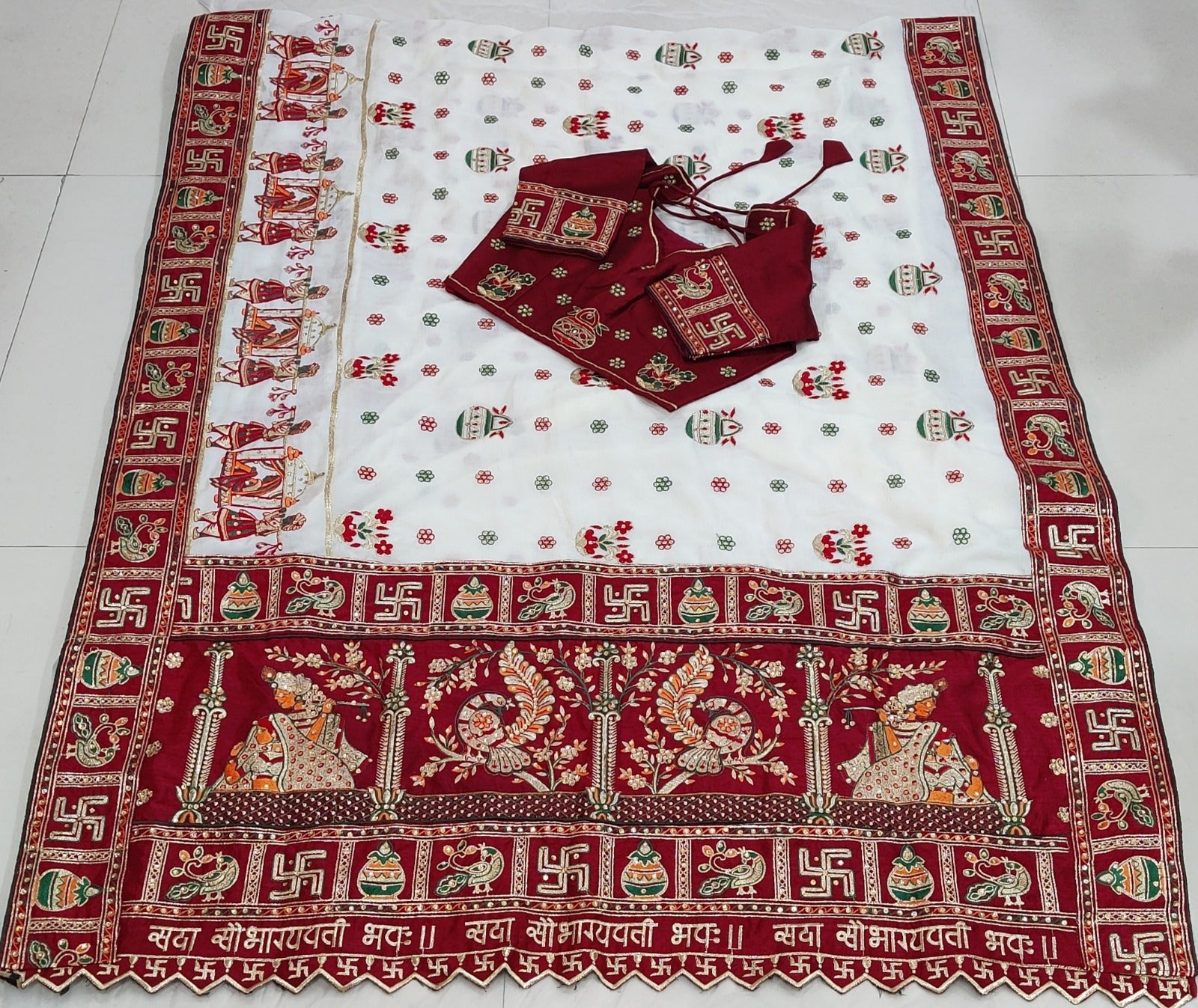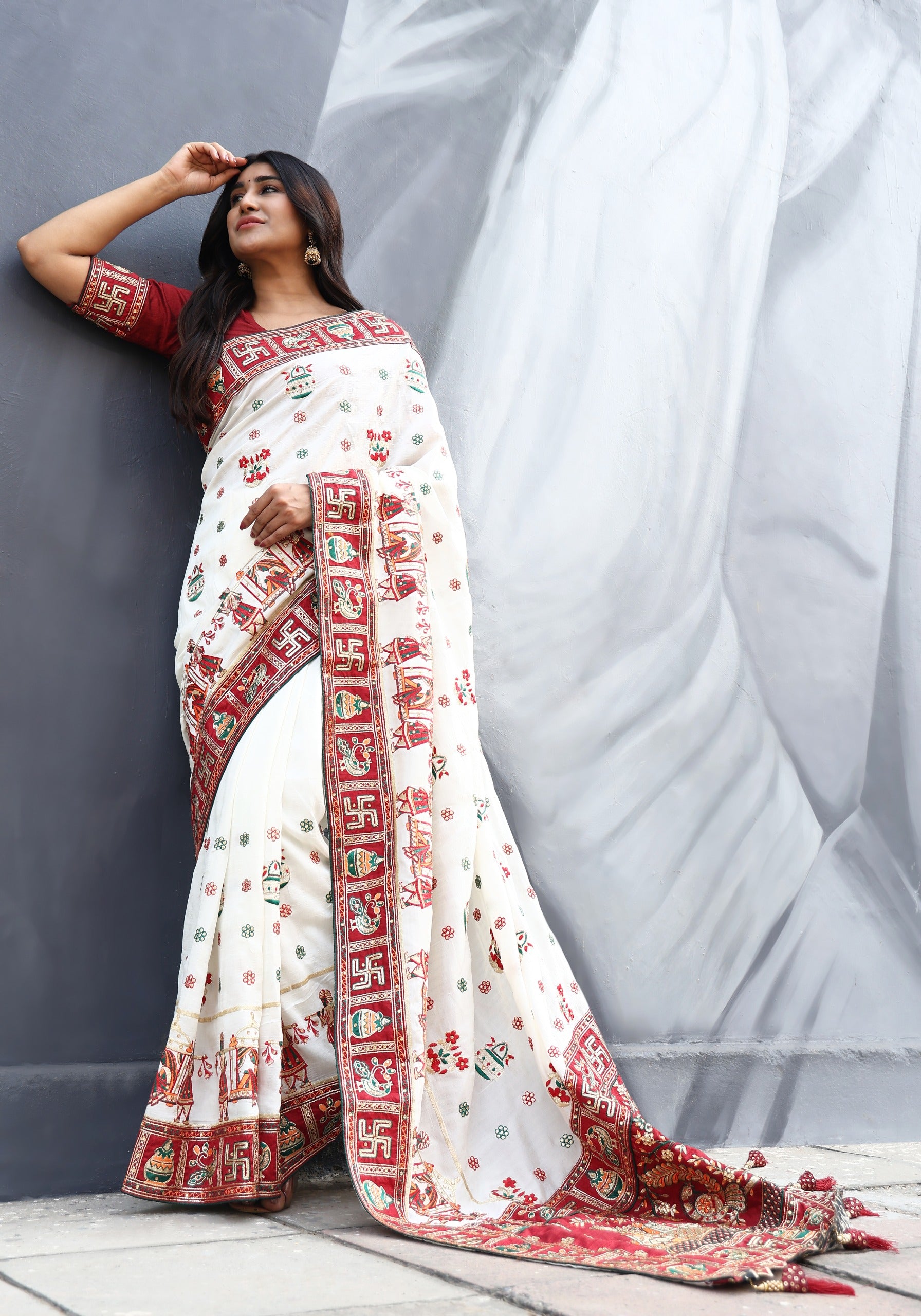 Panetar Patola Kalash White Maroon Colour Wedding & Special Occasion Saree