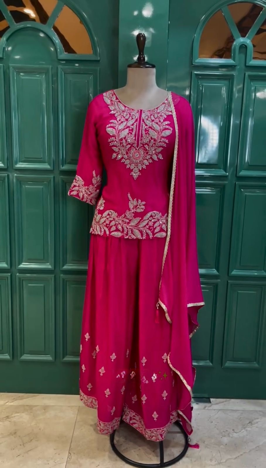 Party Wear Look Pur Chinon Silk Top Plazzo & Dupatta set