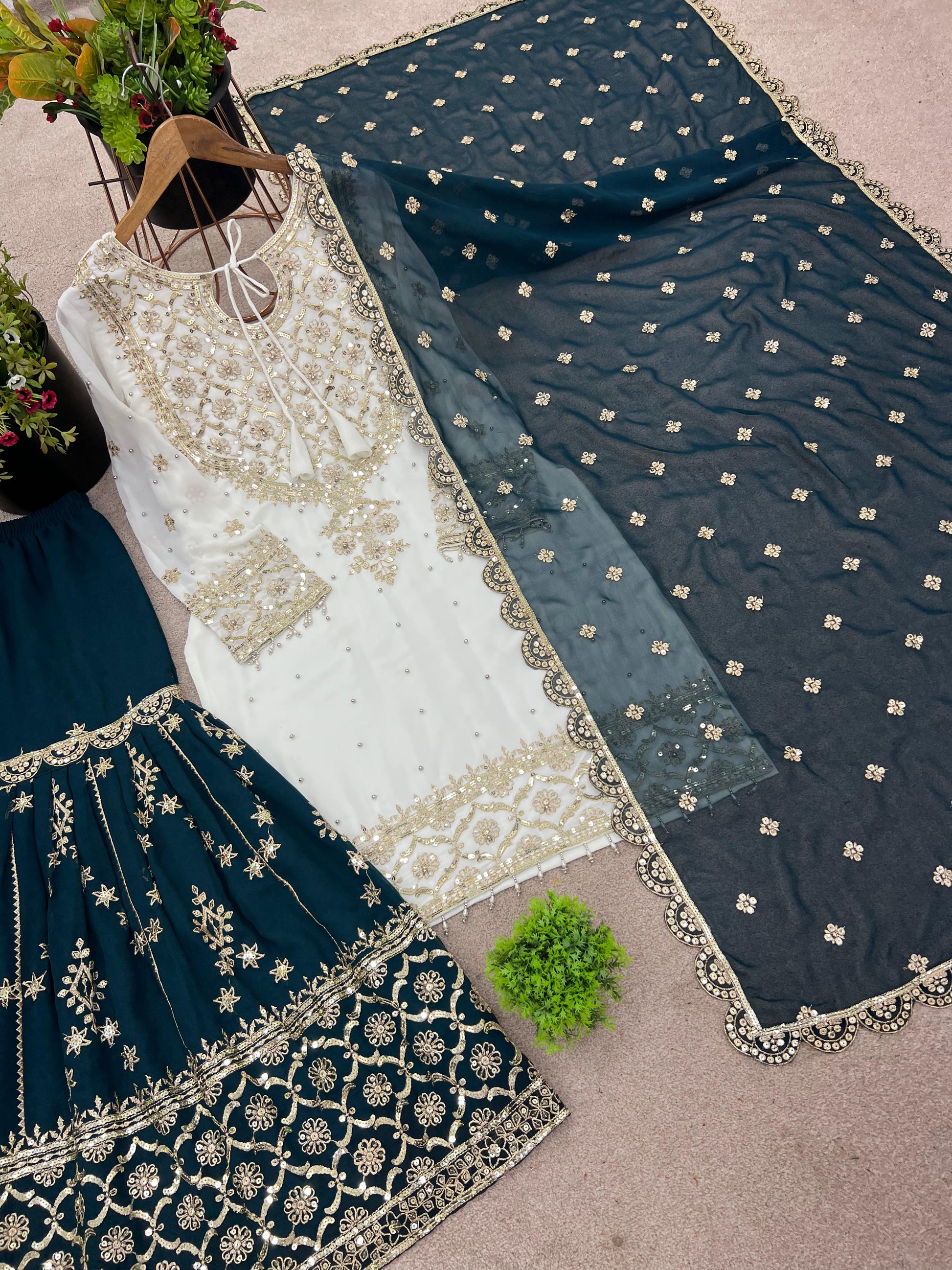 Plazzo Fabrics : Heavy Faux Georgette With 5mm Embroidery Sequence With Fully Flair