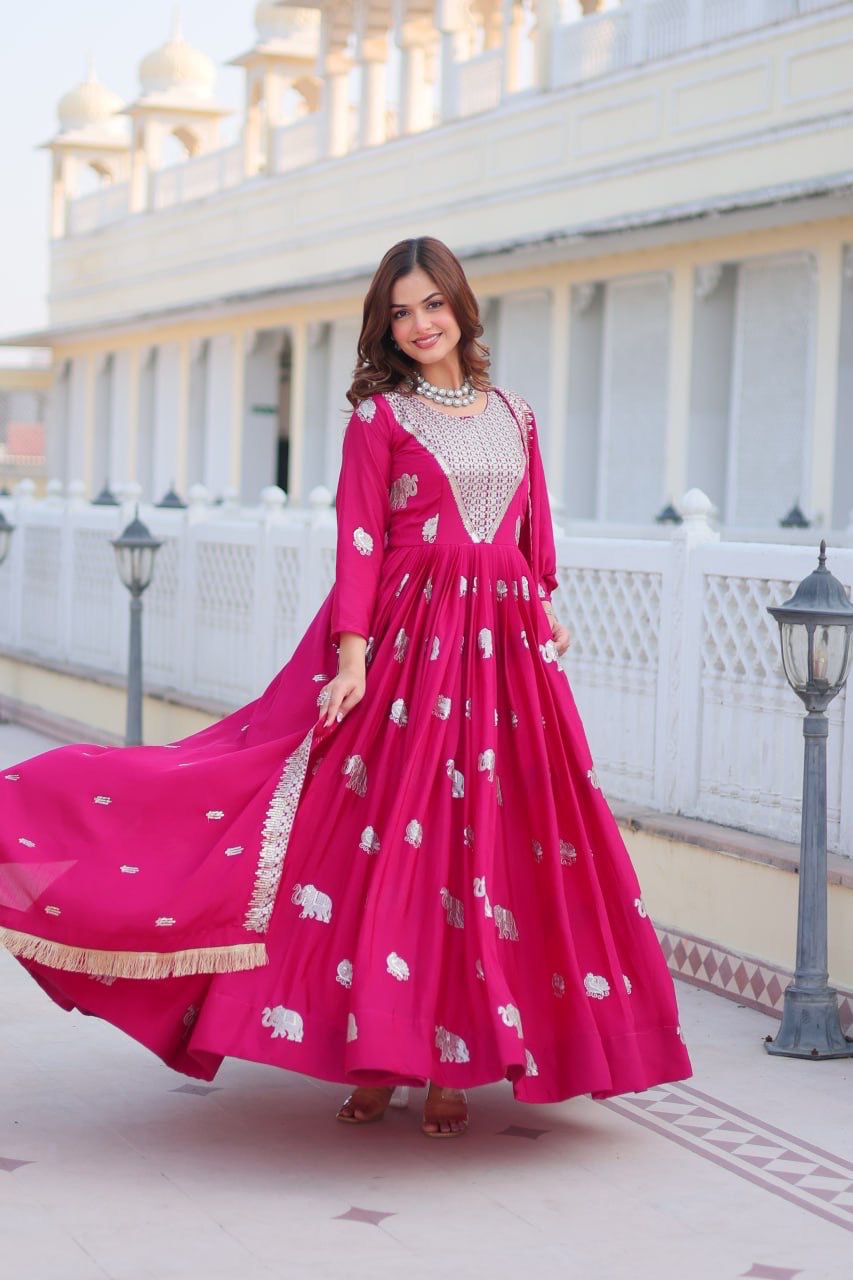 Pink Color Beautiful Anarkali Gown In Gerogette Fabric