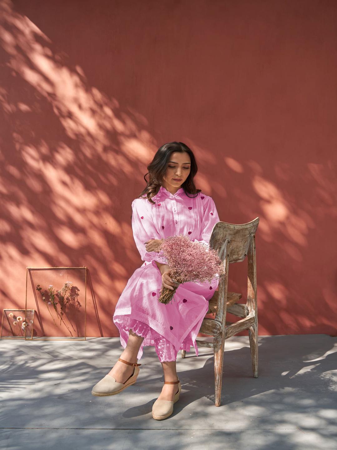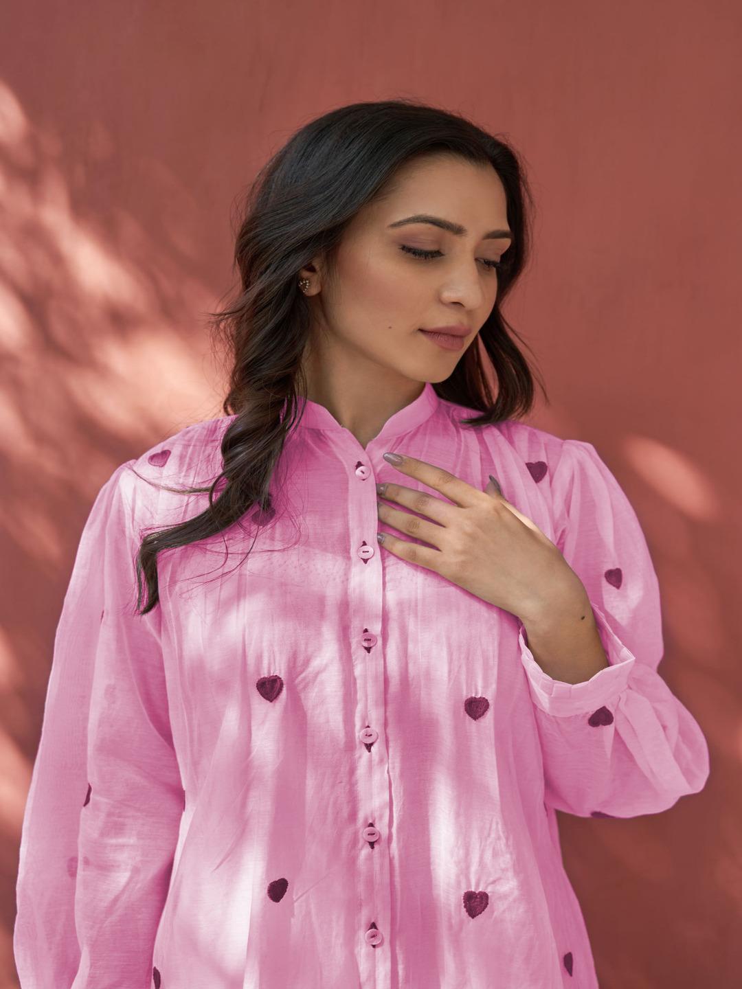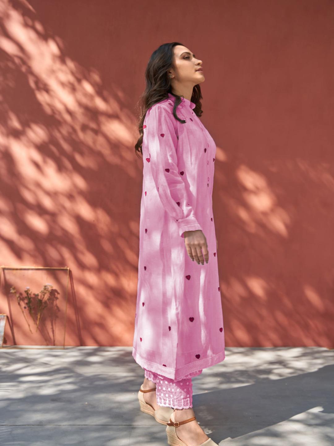 Pink Color Beautiful Cotton Wear Kurti Pent Set