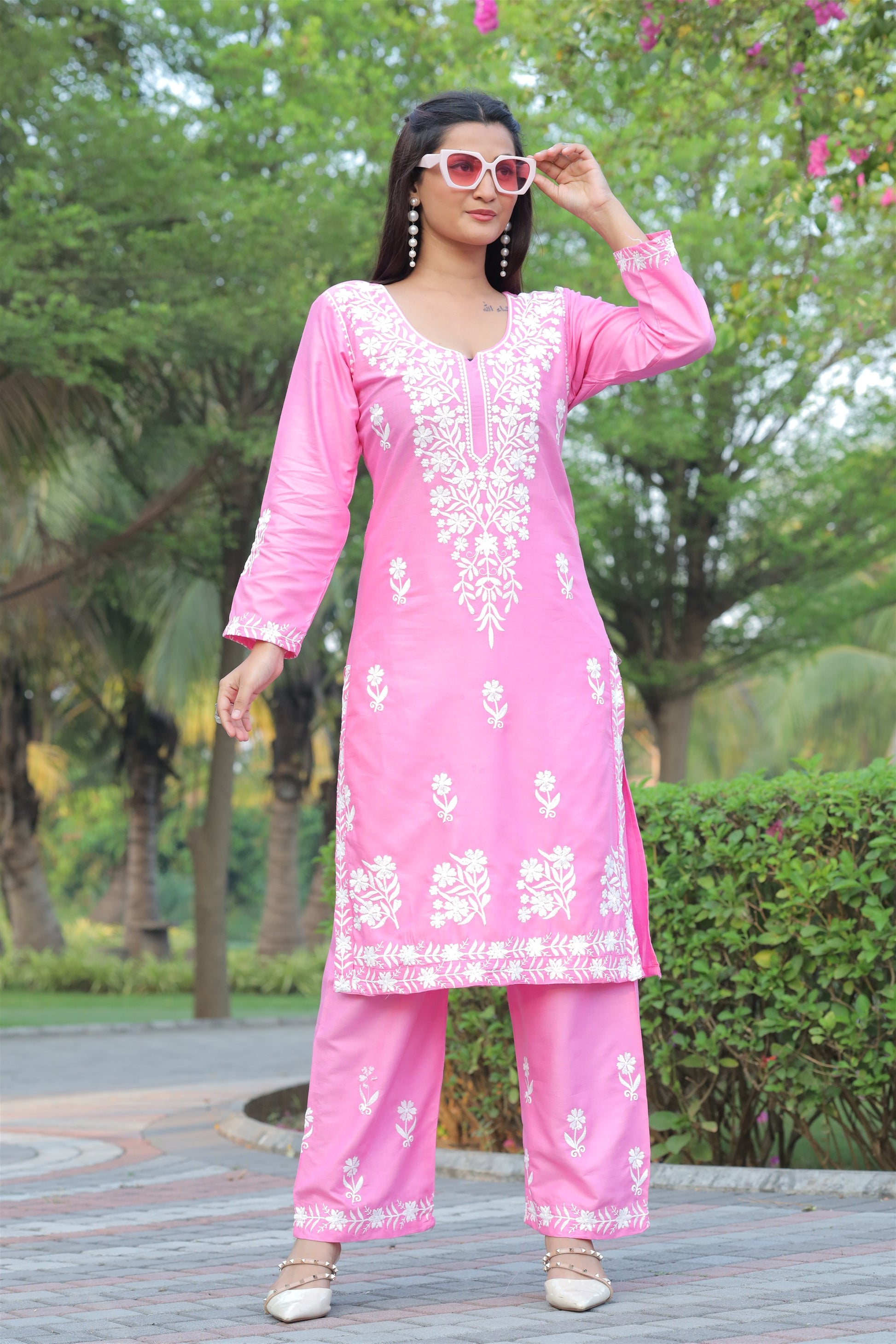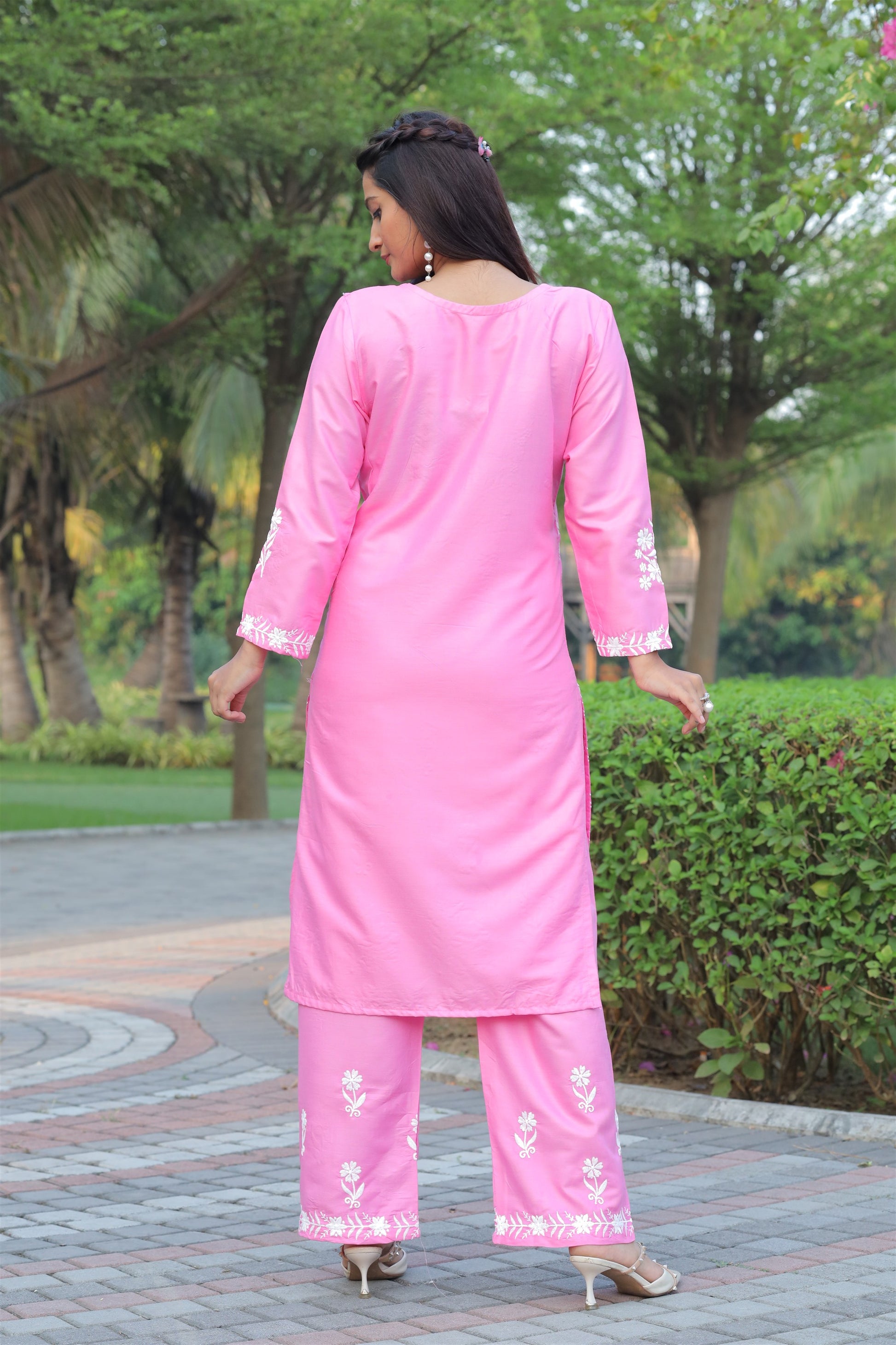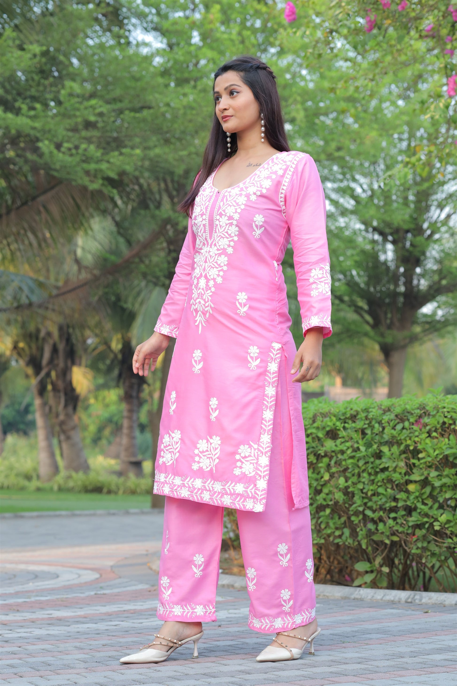 Pink Color Beautiful Daily Wear And Summer Wear Kurti With Plazo in Rayon Fabric
