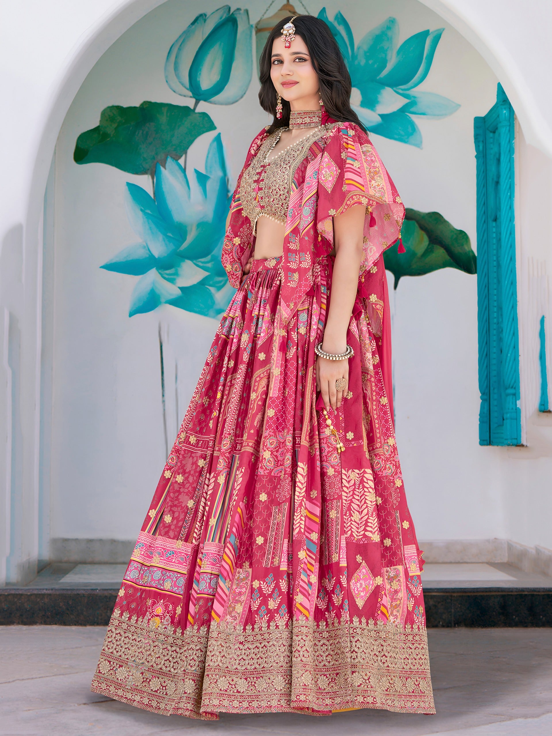Pink Color Beautiful Lehenga Choli in Chinon Silk Fabric