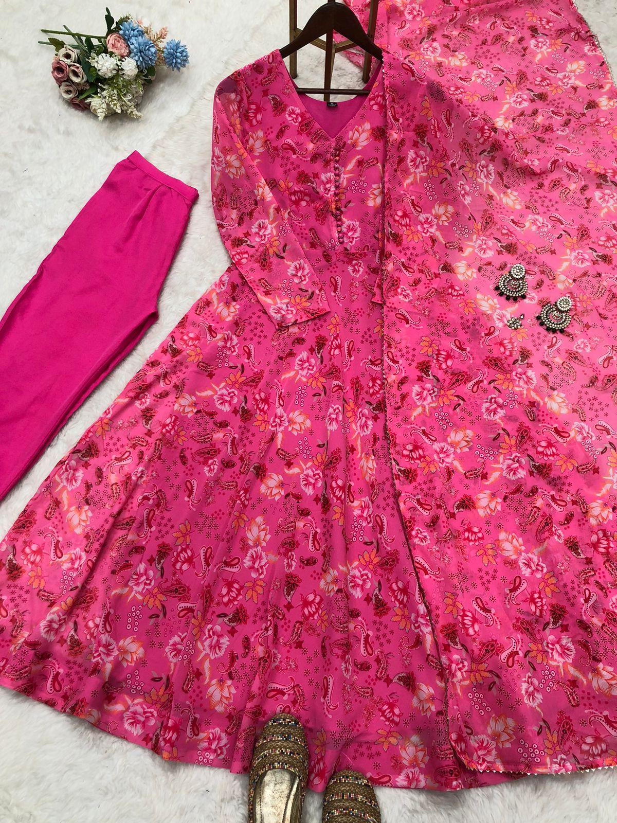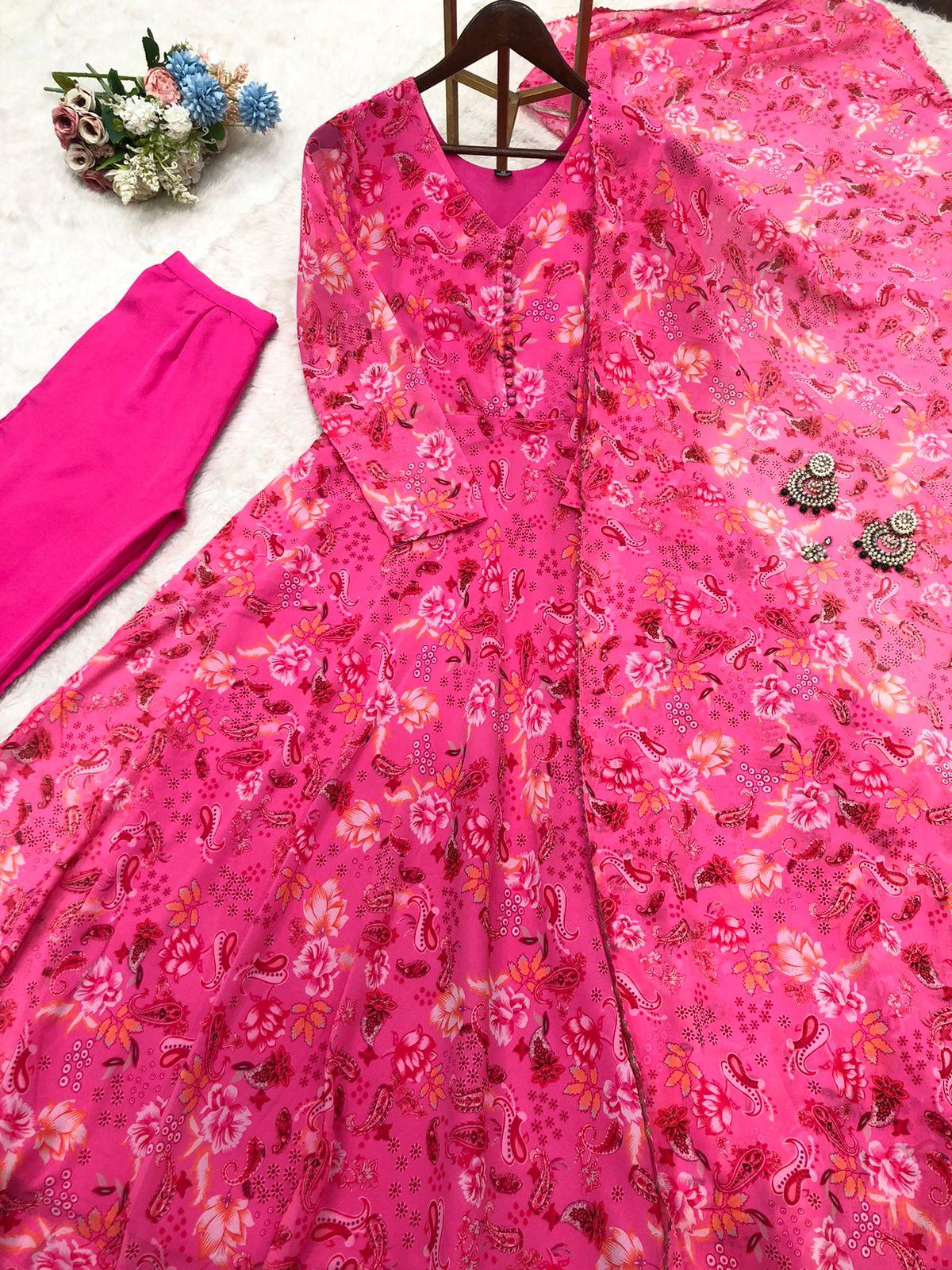 Pink Color Beautiful Partywear Gown in Georgette Fabric