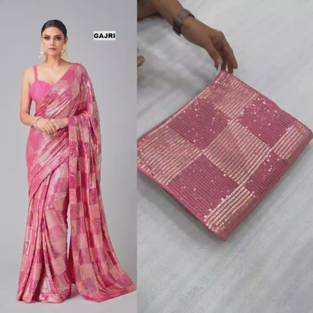 Dual Sequins Of 3mm & 5mm Sequins Work In Saree