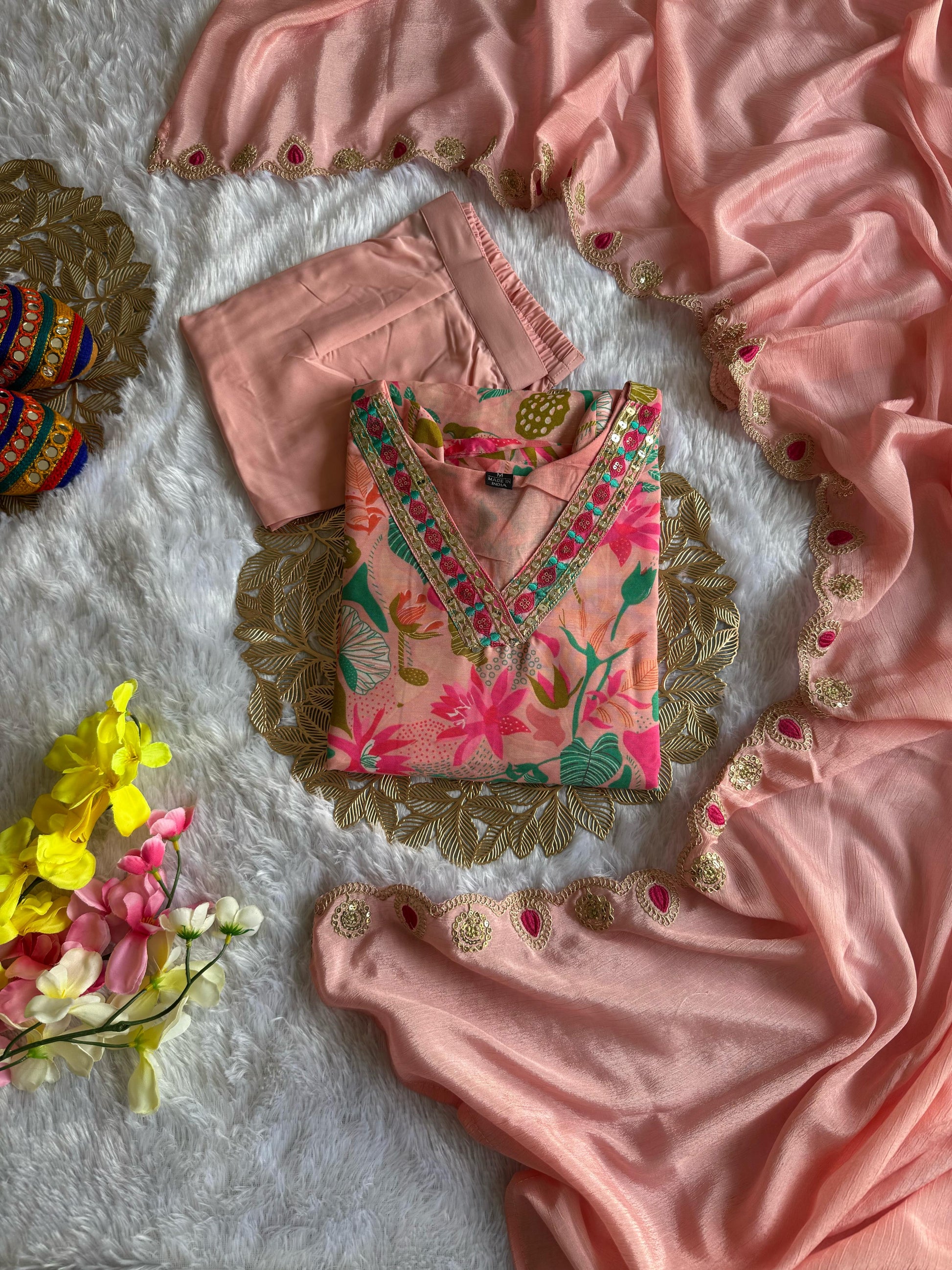 Dupatta :- Chinon With Embroidery And Sequence, Dori Work (2.10 Mtr)