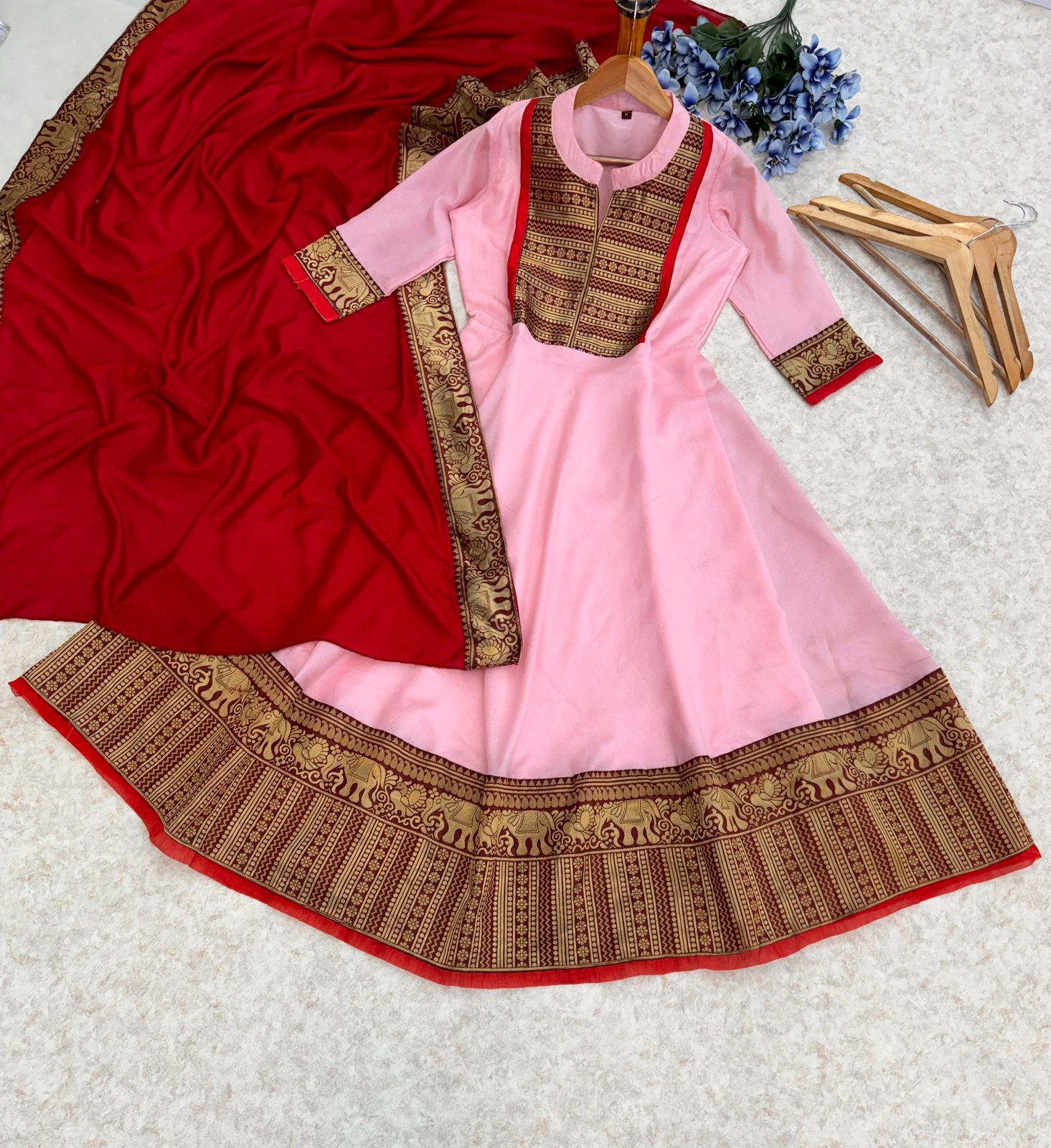 Pink Color Gown with dupatta in vichitra silk fabirc