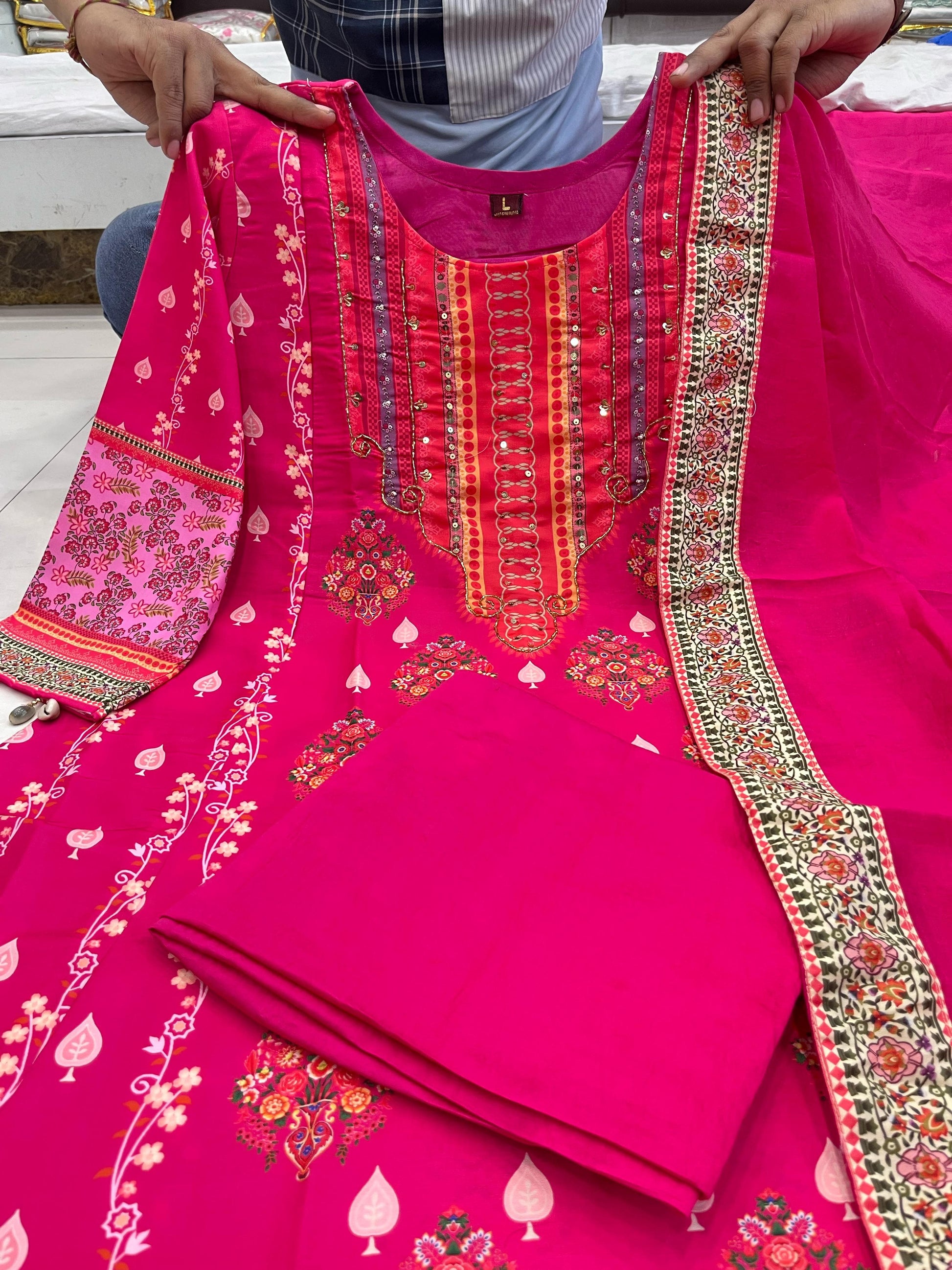 Wrap Yourself In Elegance This Festive With Our Reshmi Pink Readymade Suit , Featuring Intricate Schiffli Hand Works And Thread Kodi. Perfect For Celebrating The Bond Of Love. A Blend Of Tradition And Modernity, Just Like The Bond You Share.