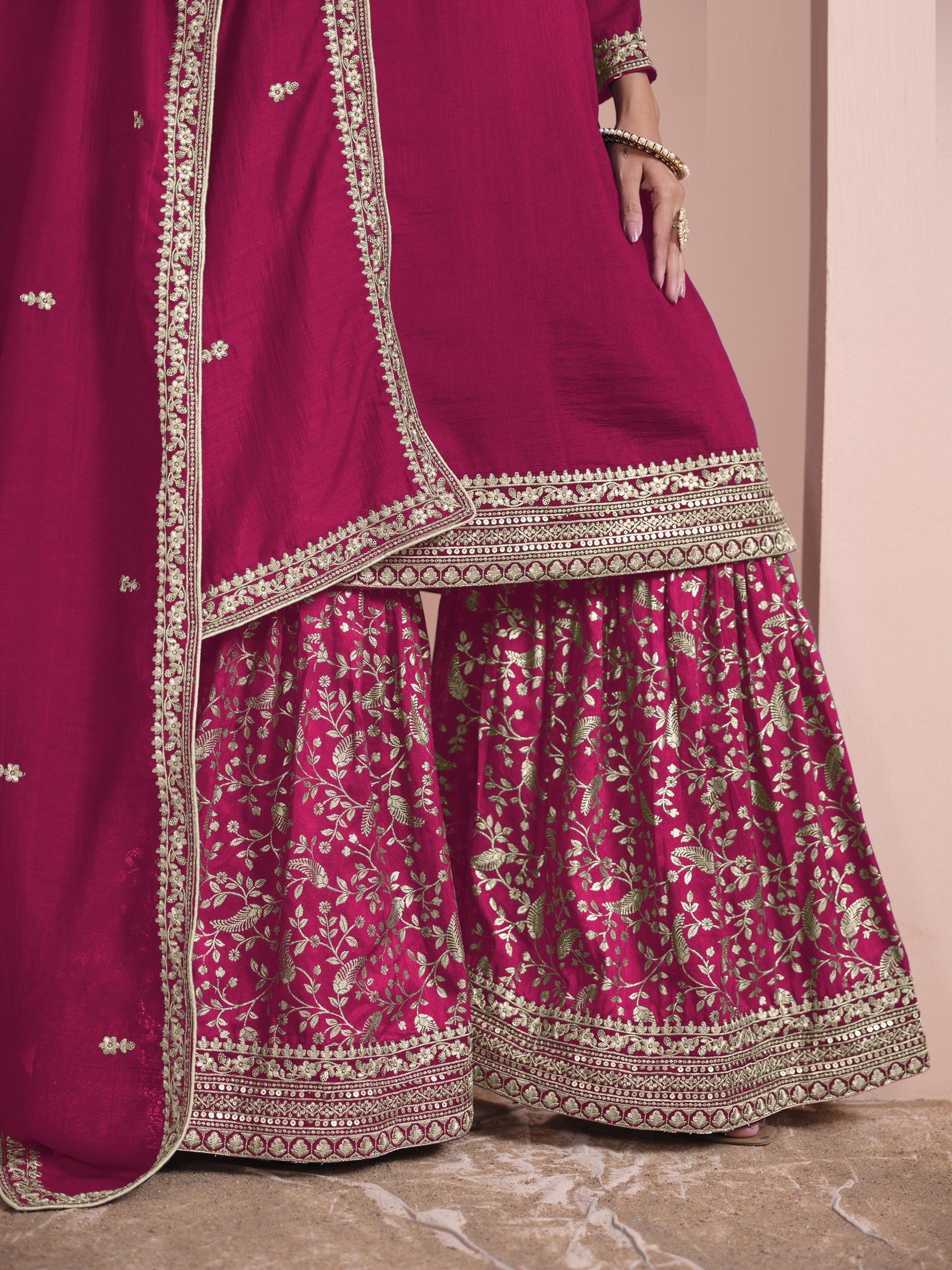 Pink Color Partywear Plazo Suit In Silk Fabric Wedding Function