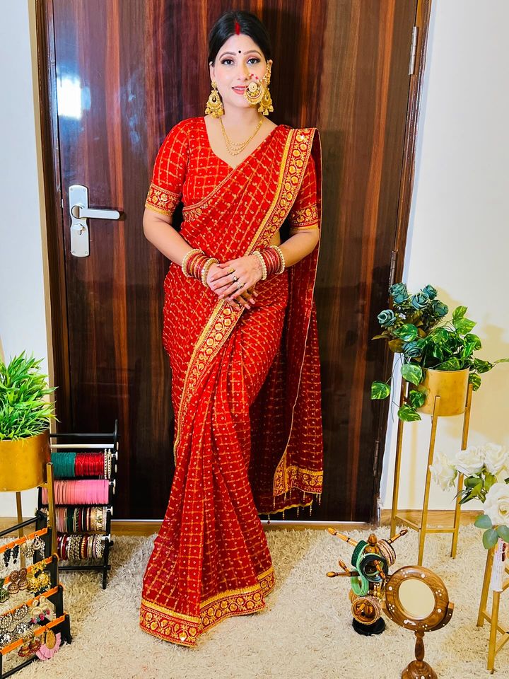Pure Viscose Fabric Red Colour Ghatchola Saree