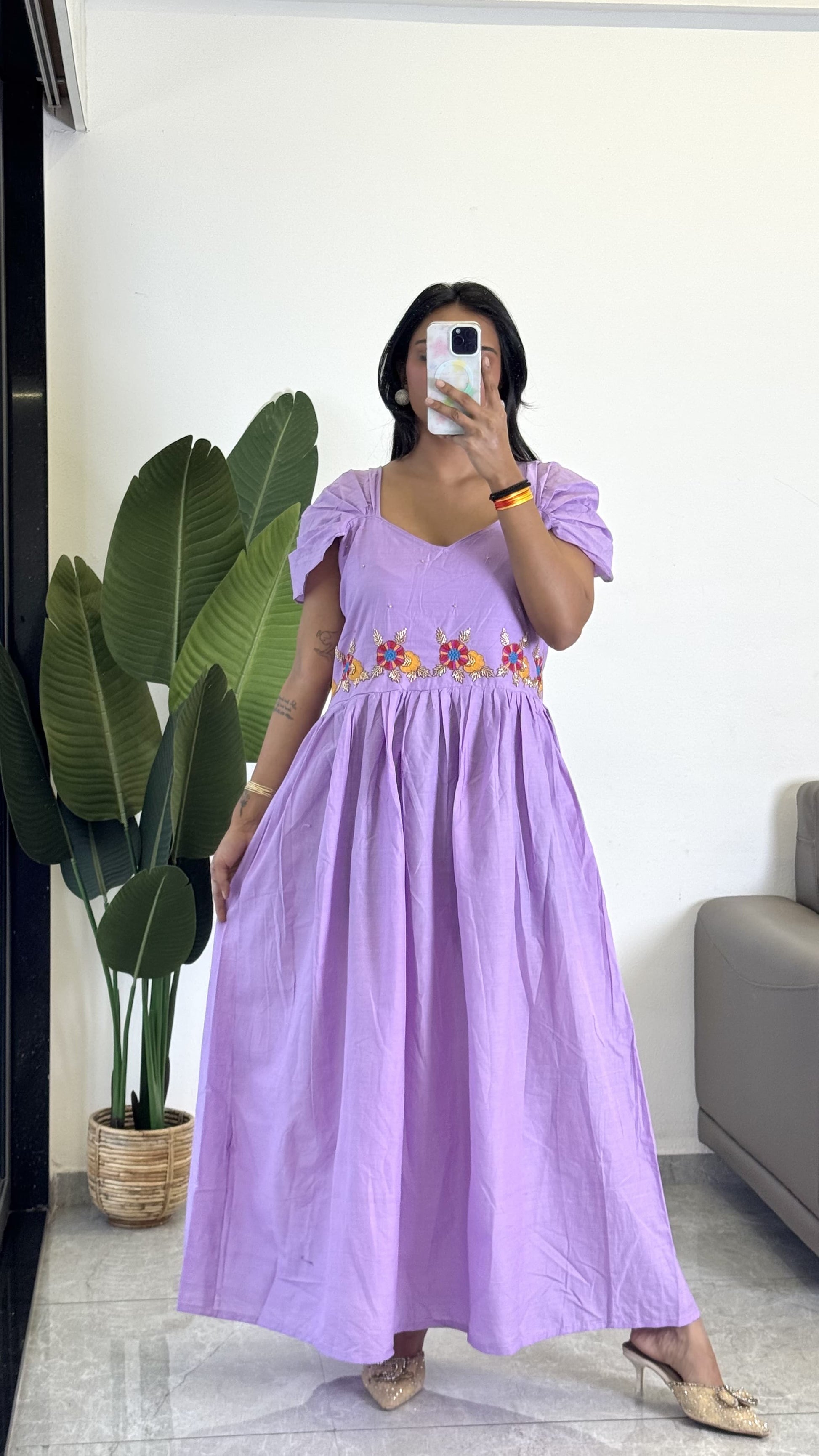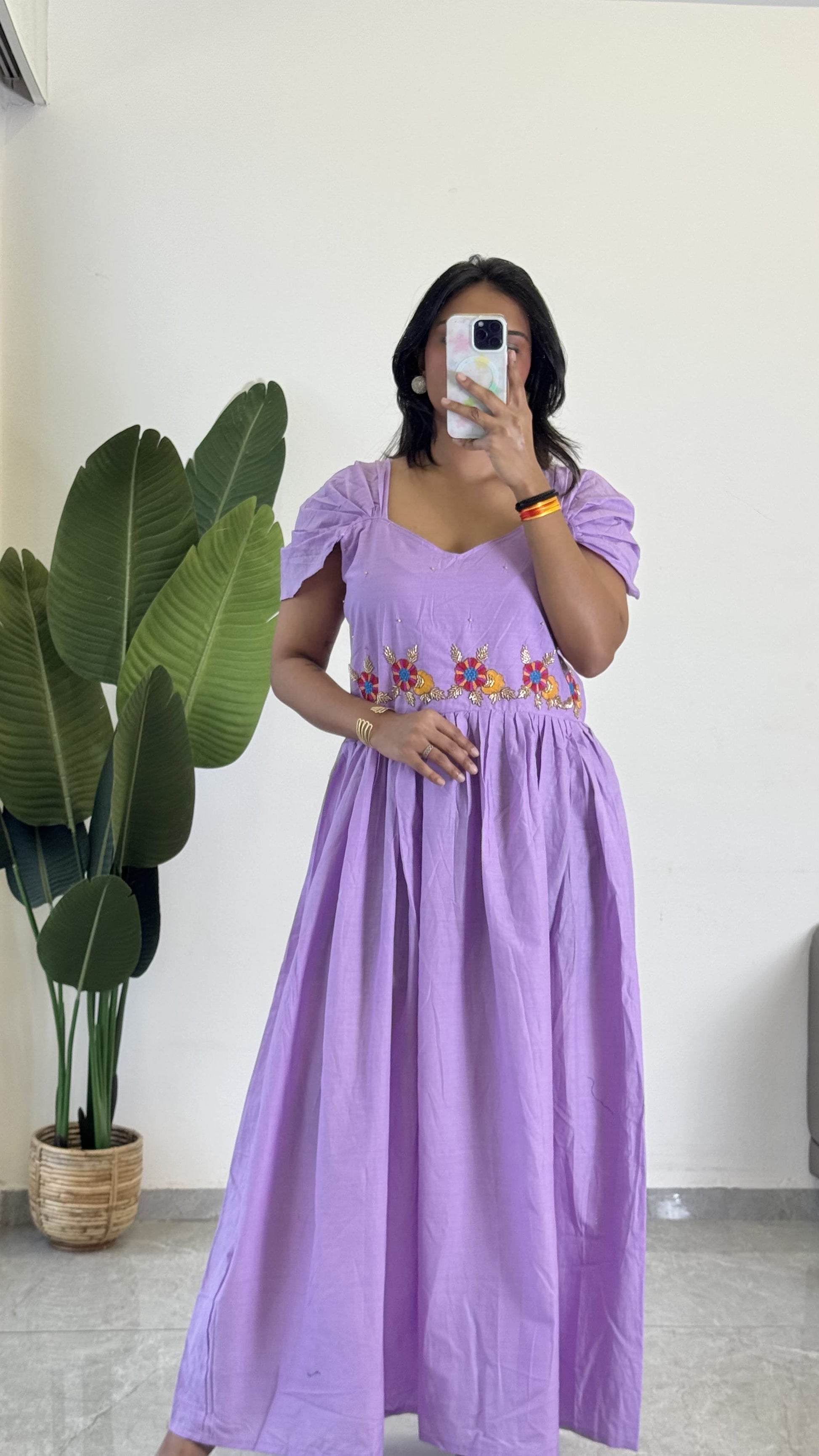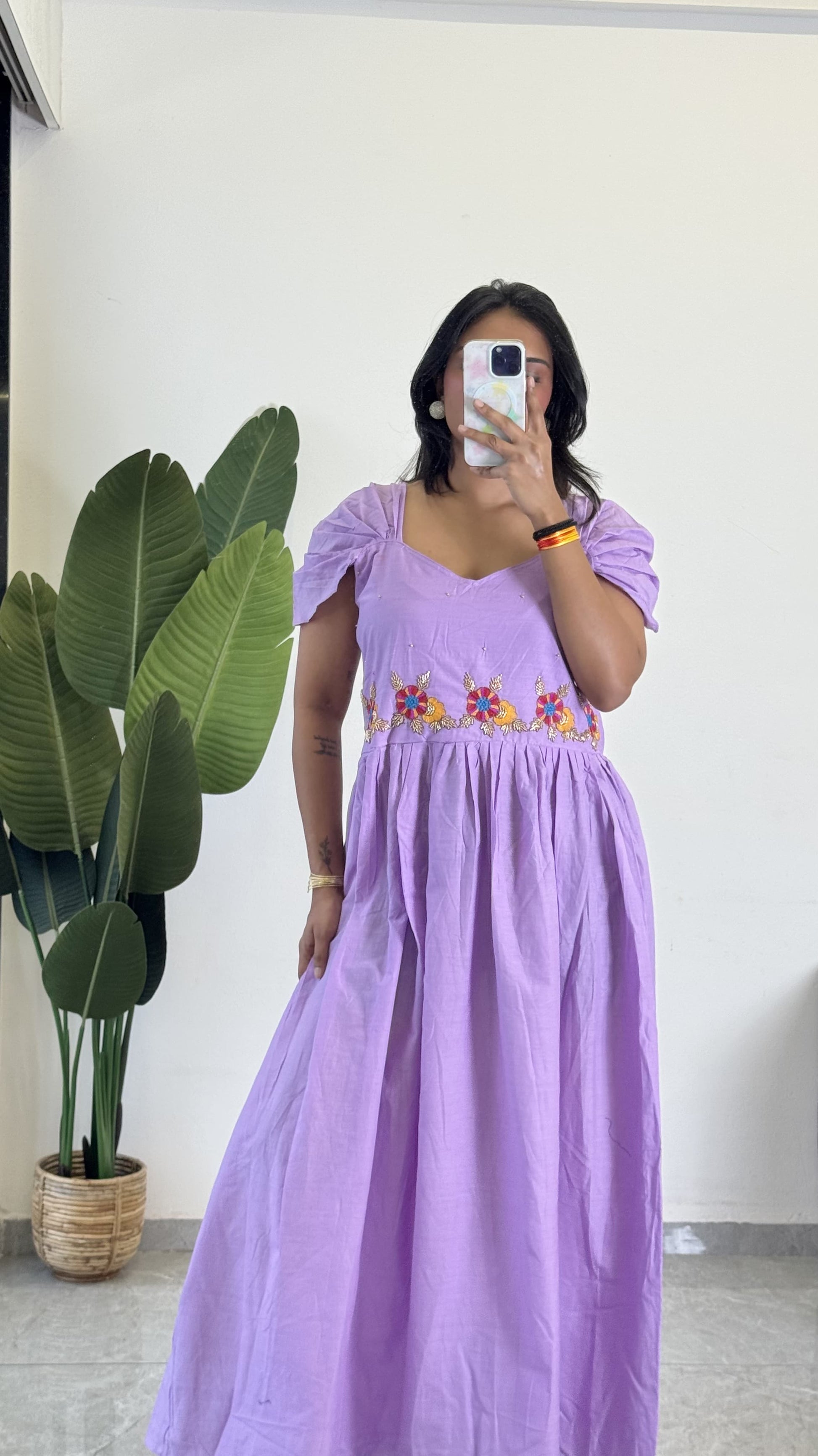 Purple Color Beauitful Gown in mul cotton fabric