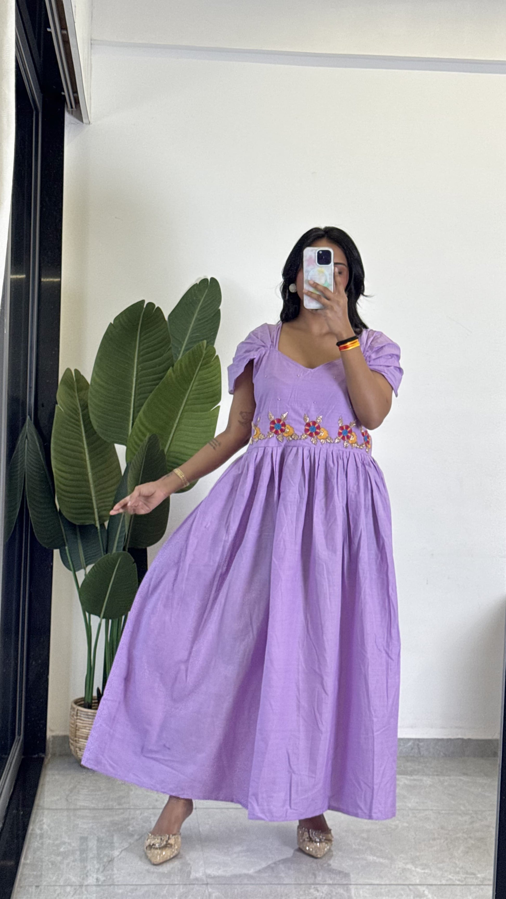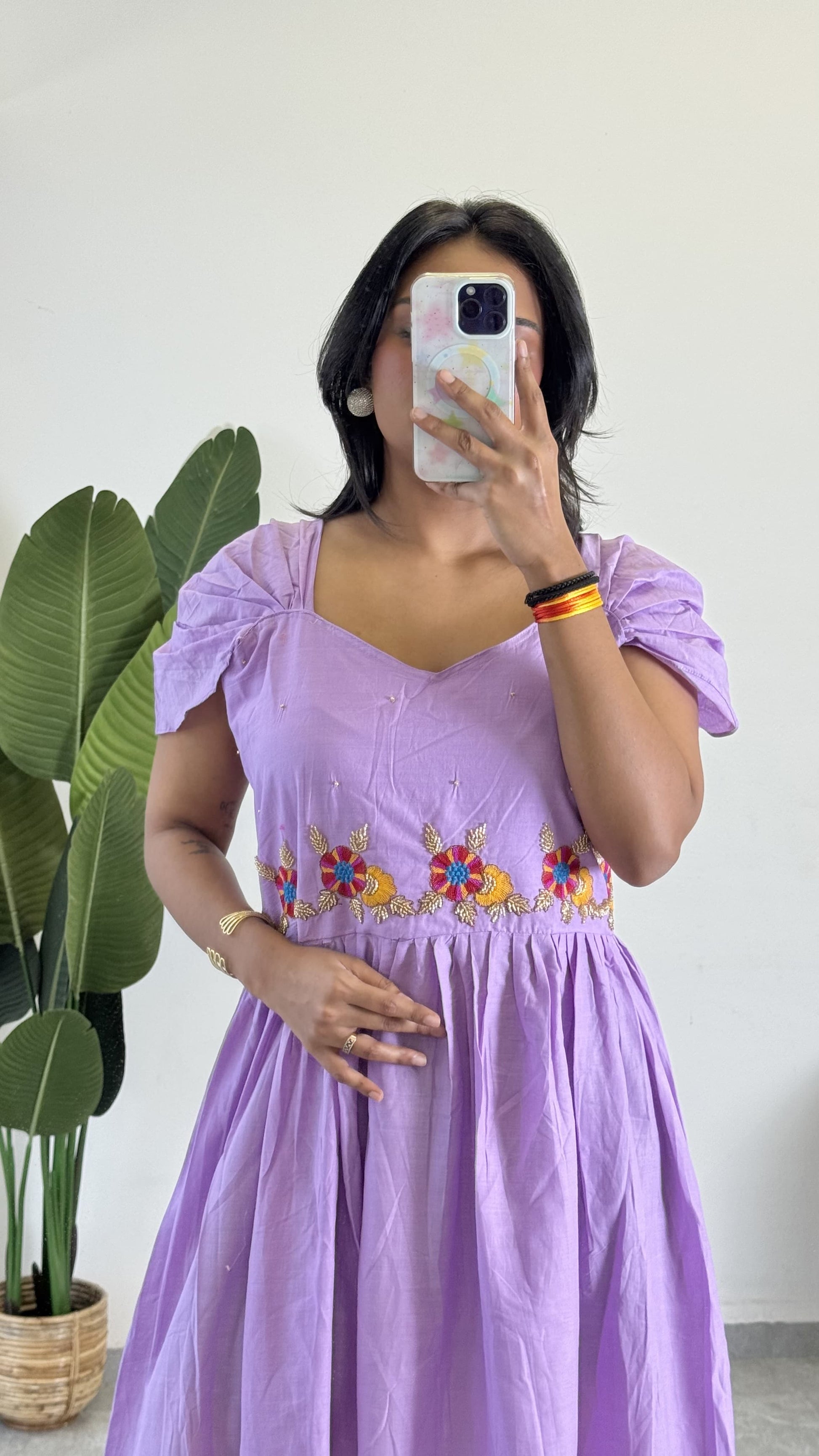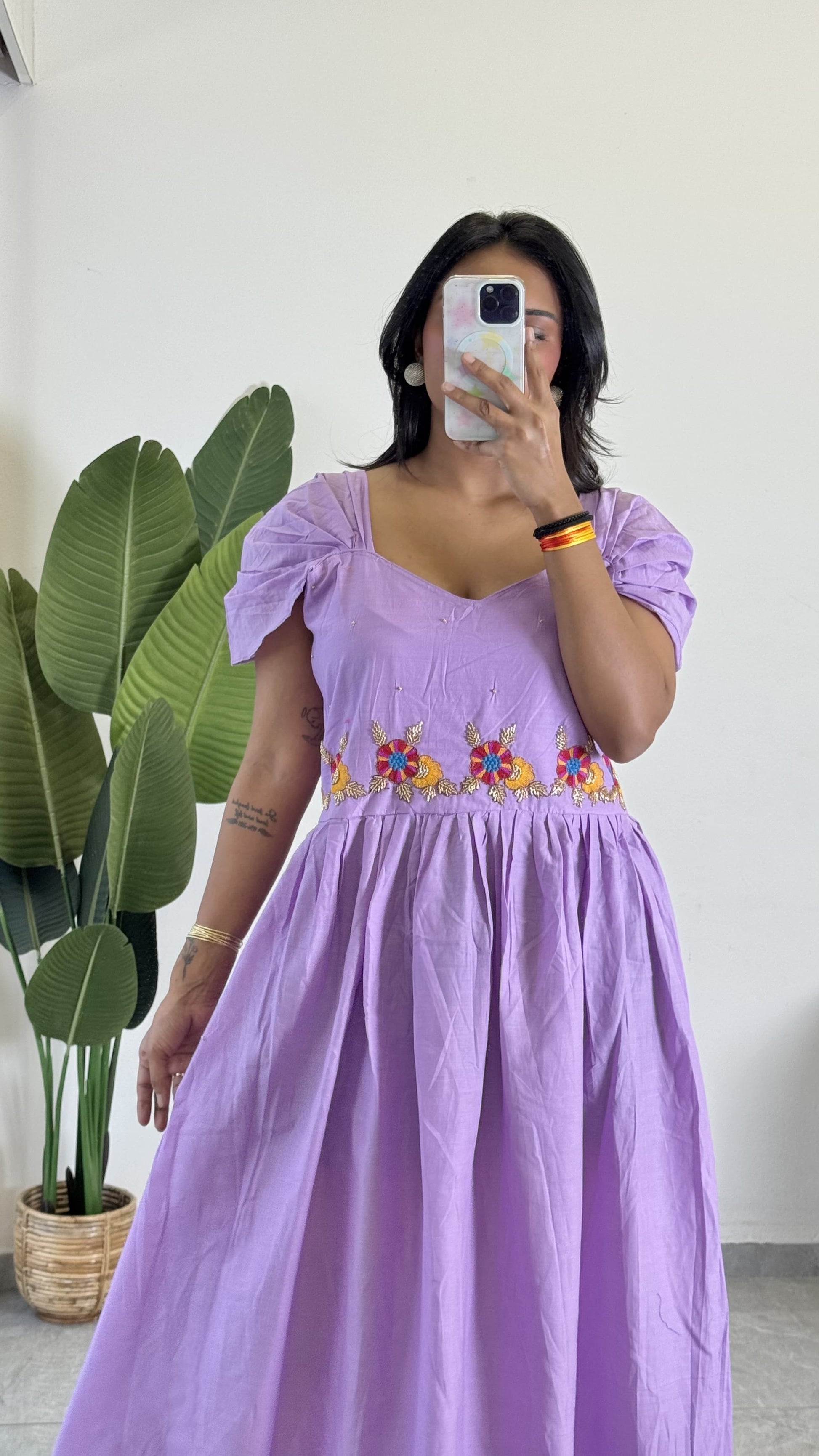 Purple Color Beauitful Gown in mul cotton fabric