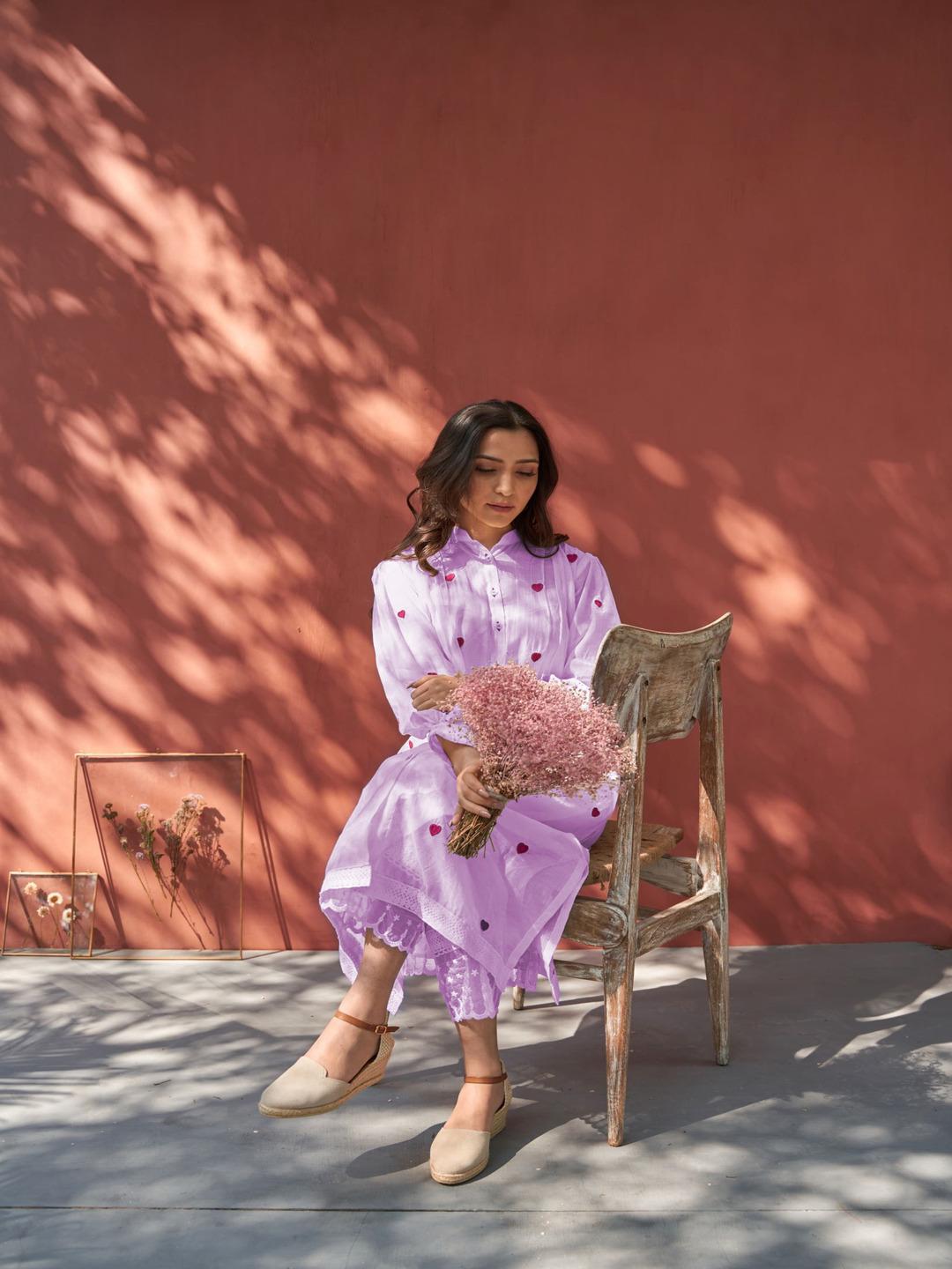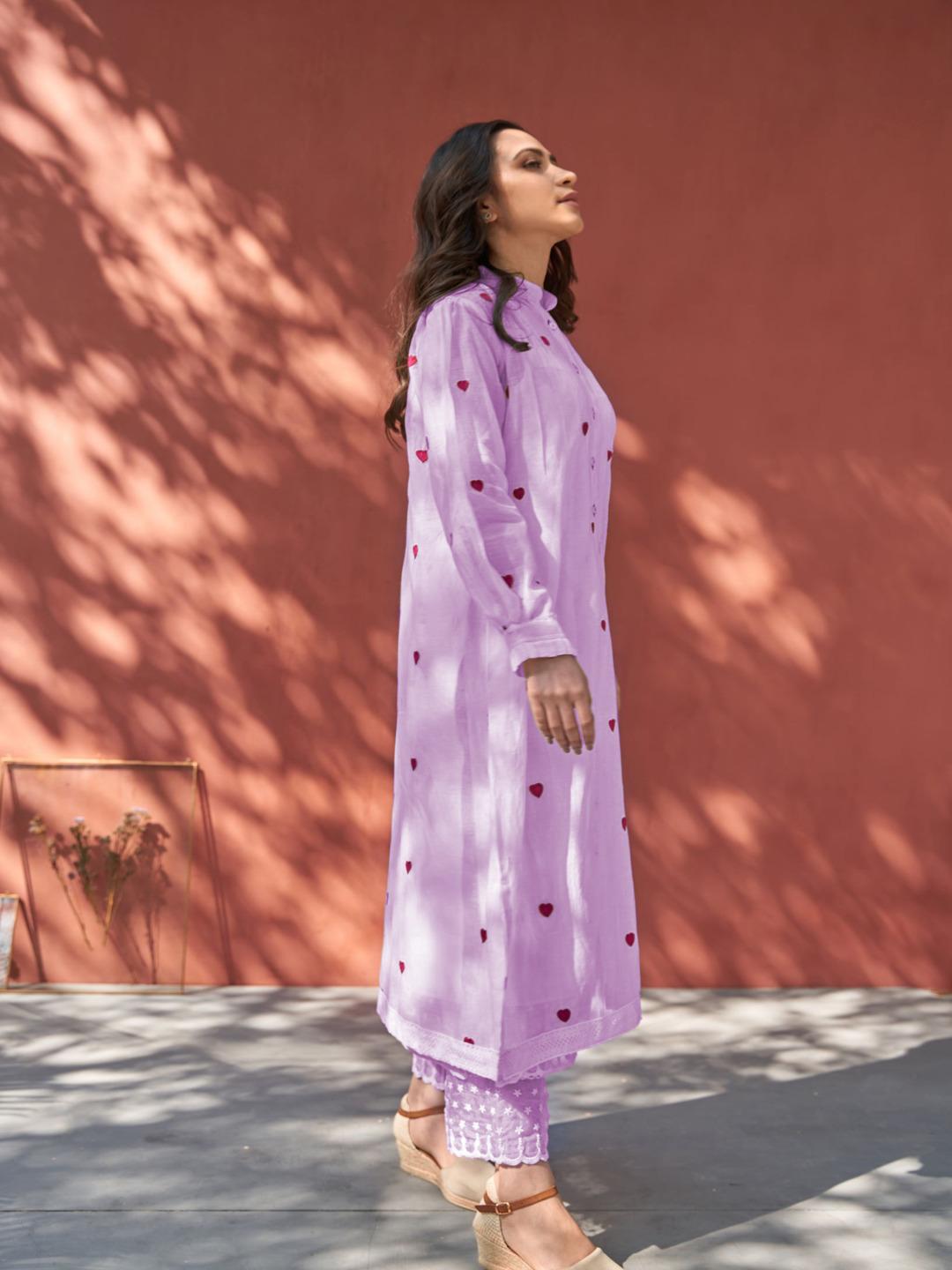 Purple Color Beautiful Cotton Wear Kurti Pent Set