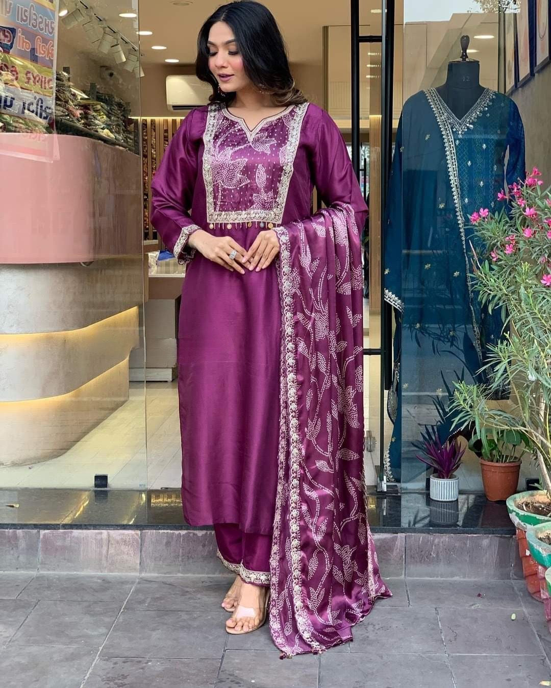 Purple Color Beautiful Daily Wear Kurti Pent Set