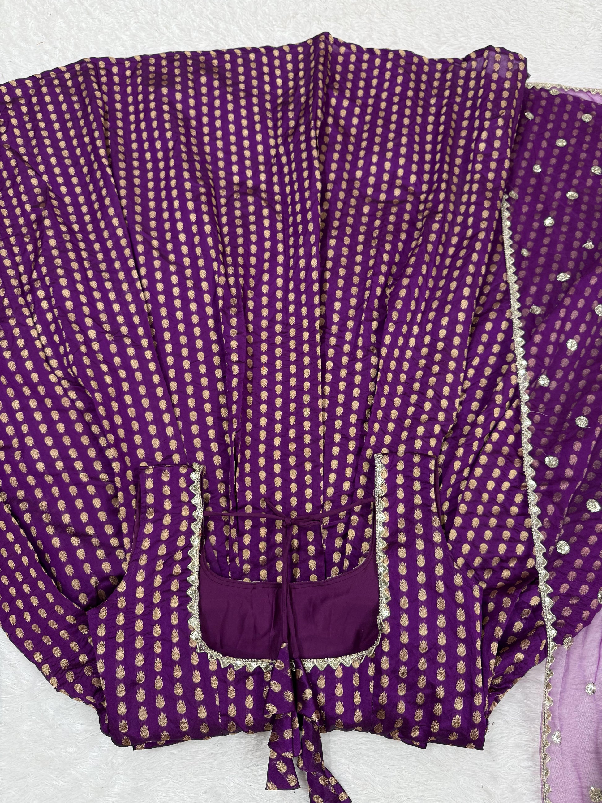 Purple Color Beautiful Gown in Jacquard Silk Fabric