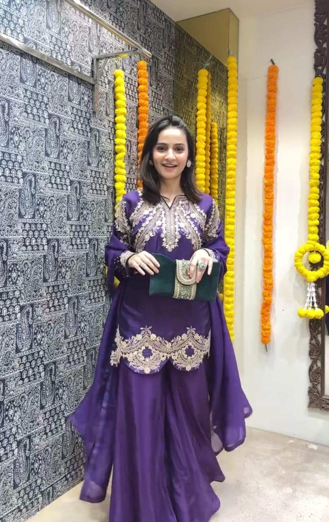 Purple Color Beautiful Plazo Suit in Chinon Fabric