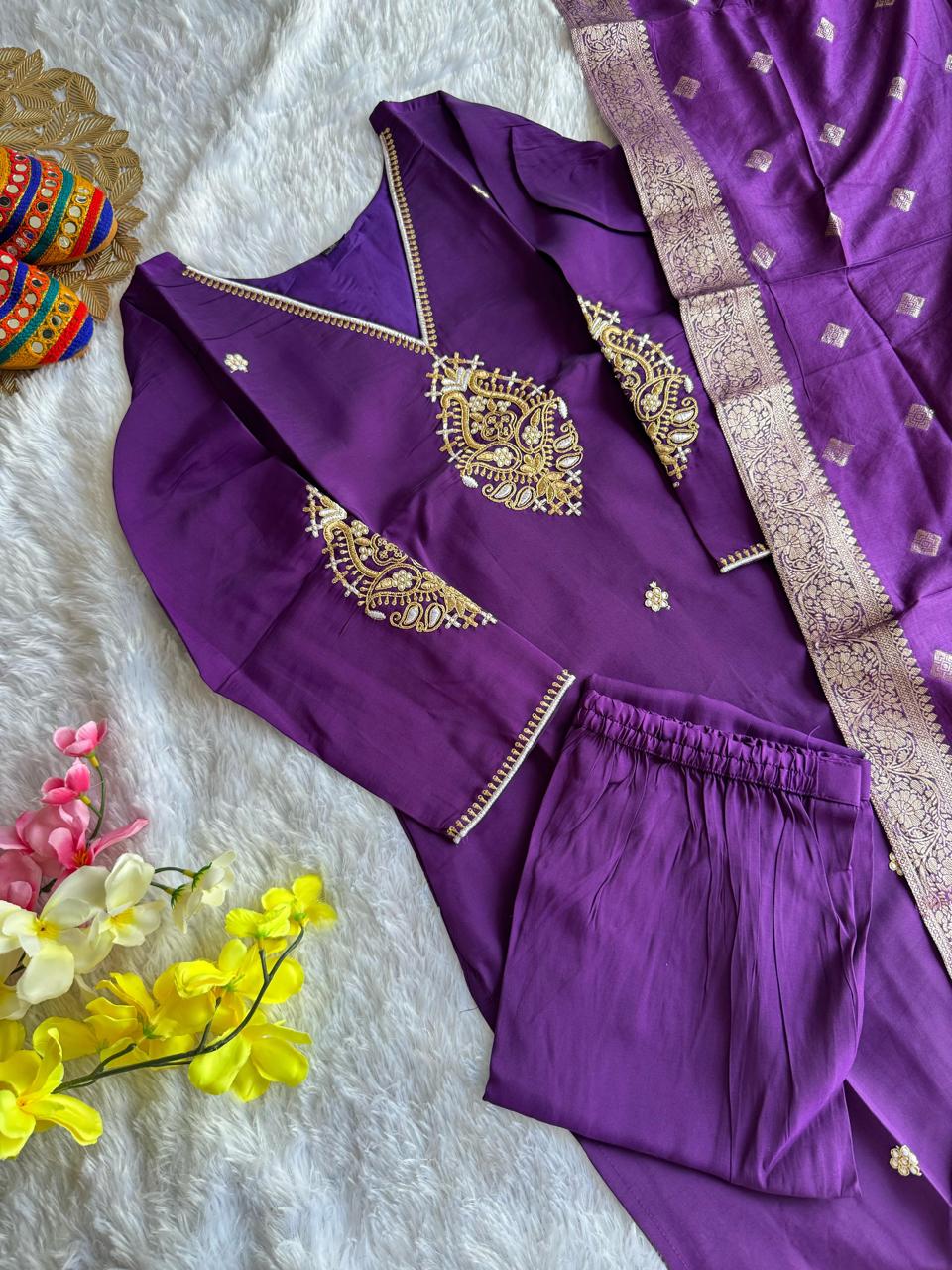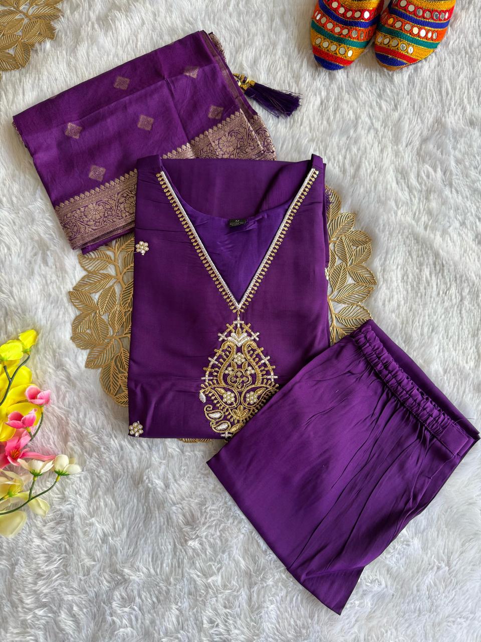 Purple Color Beautiful Summer Wear Dress in Roman Silk Fabric