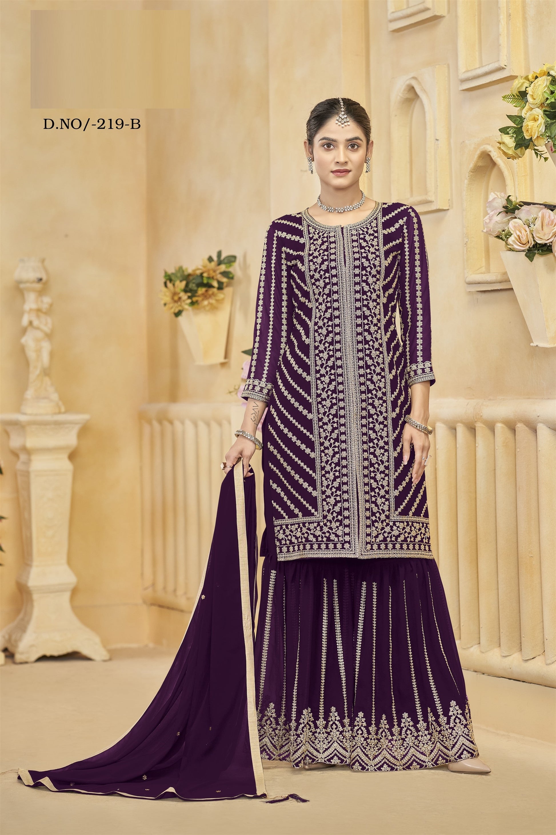 Purple Color Beautiful Wedding Wear Heavy Sharara Suit