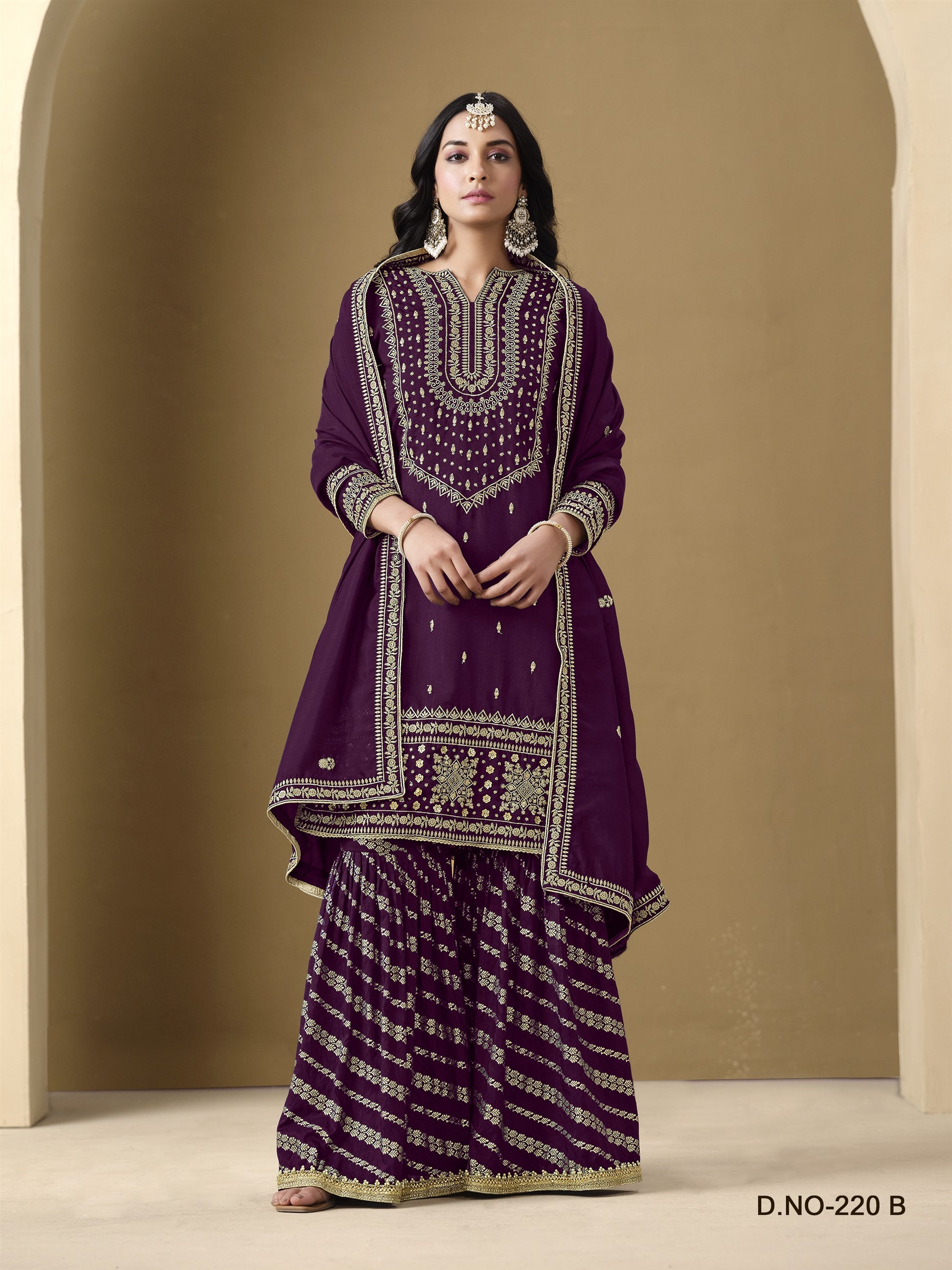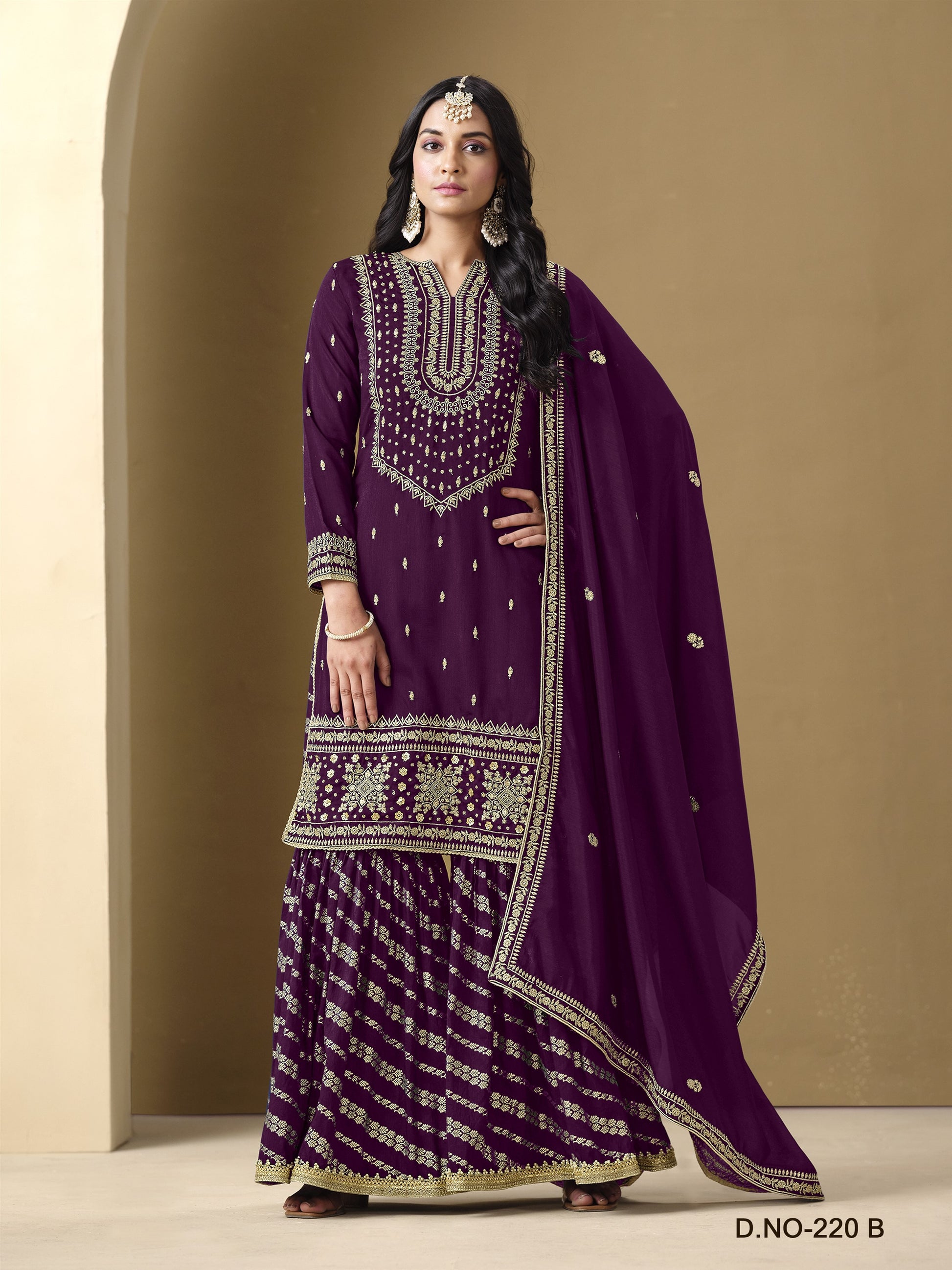 Purple Color Heavy Sharara Wedding Wear Suit For Family Function
