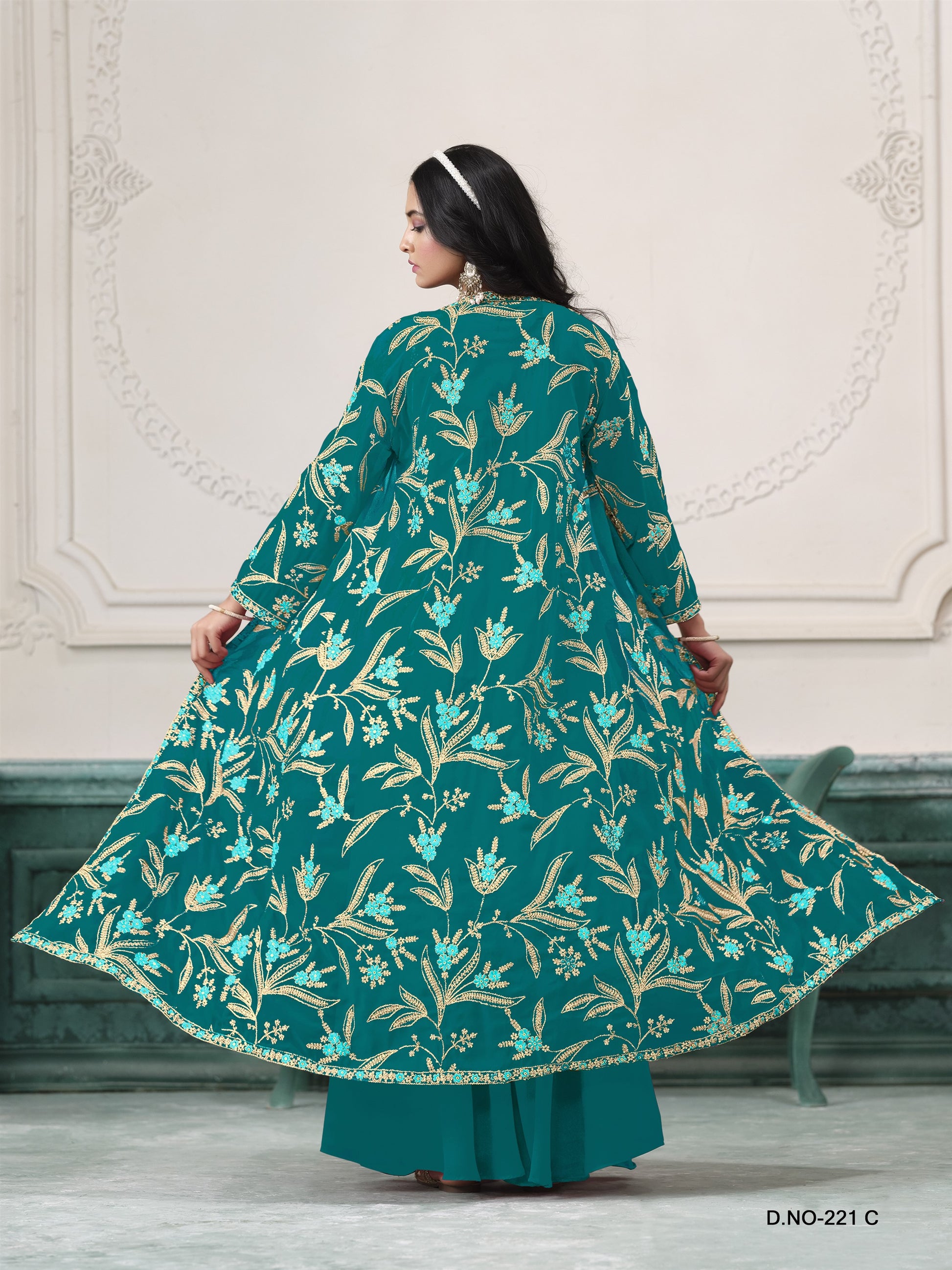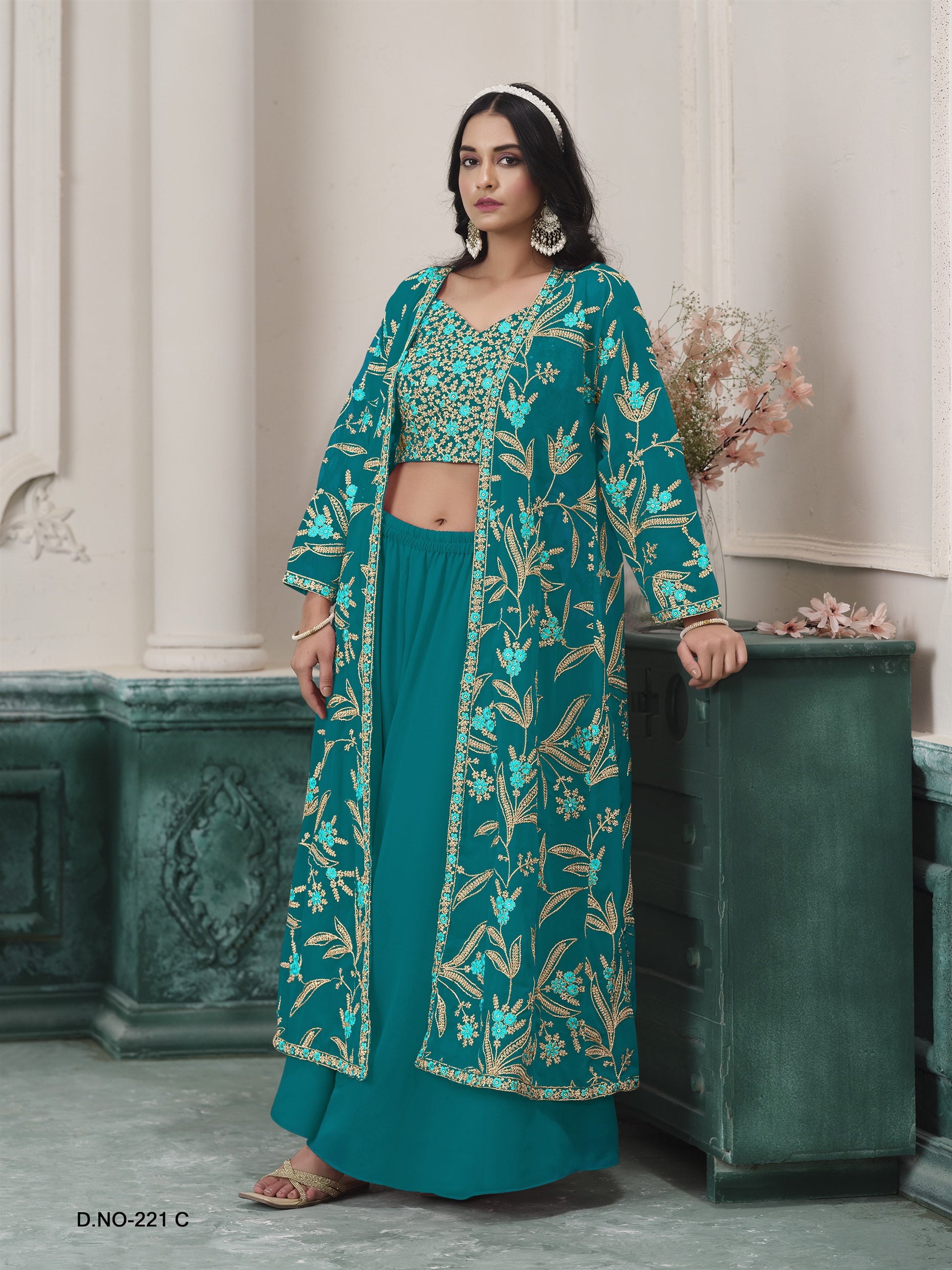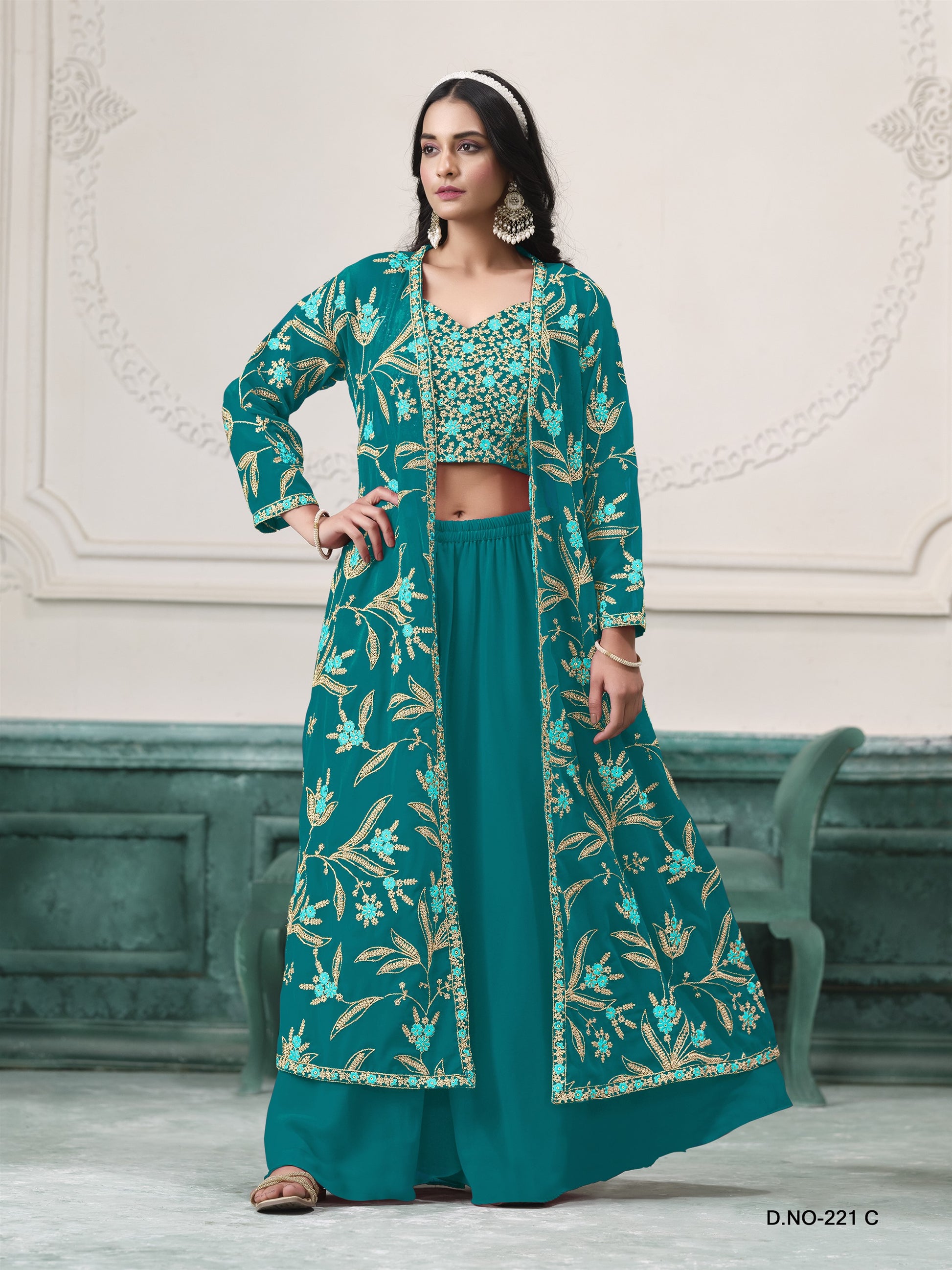 ZIP BAG CONTAIN :- BLOUSE (1 PCS) + PLAZO (1 PCS) + JACKET (1 PCS)