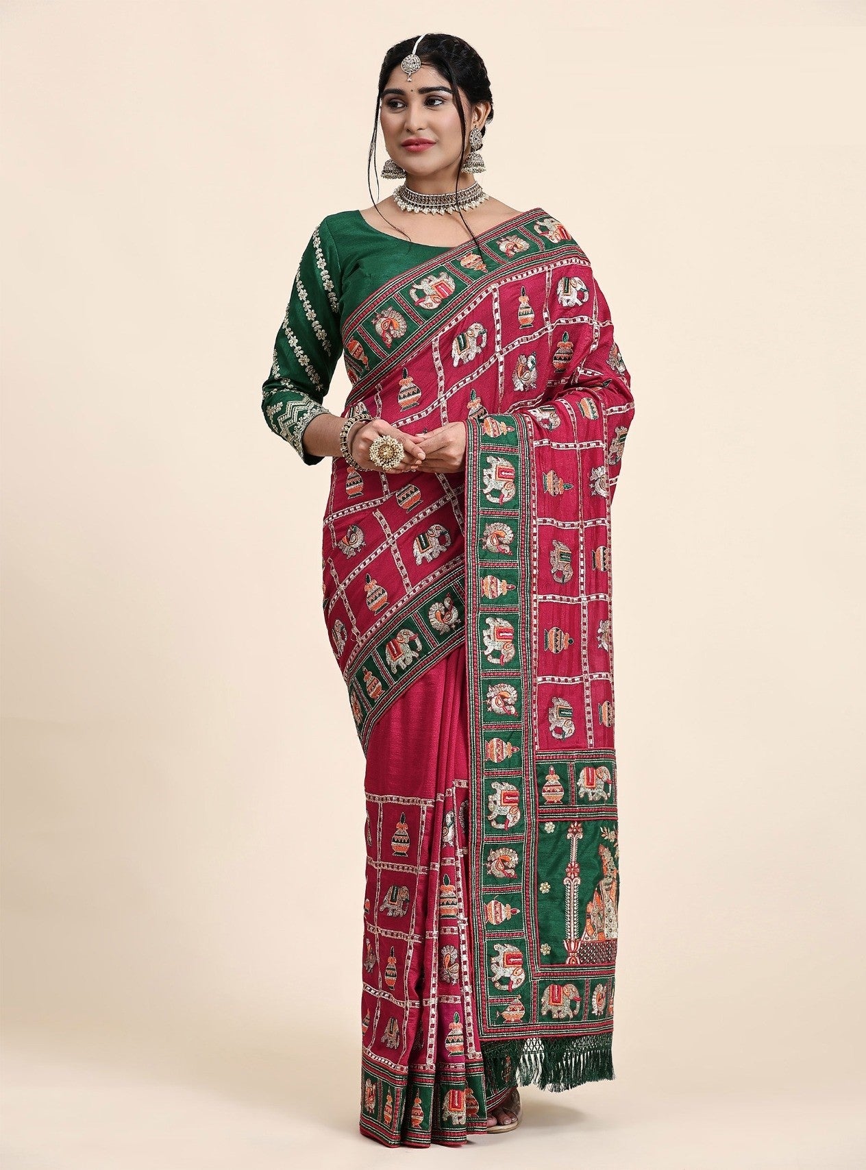 Rani Color Beautiful Panetar Saree in Vichitra Silk special Occasion Saree