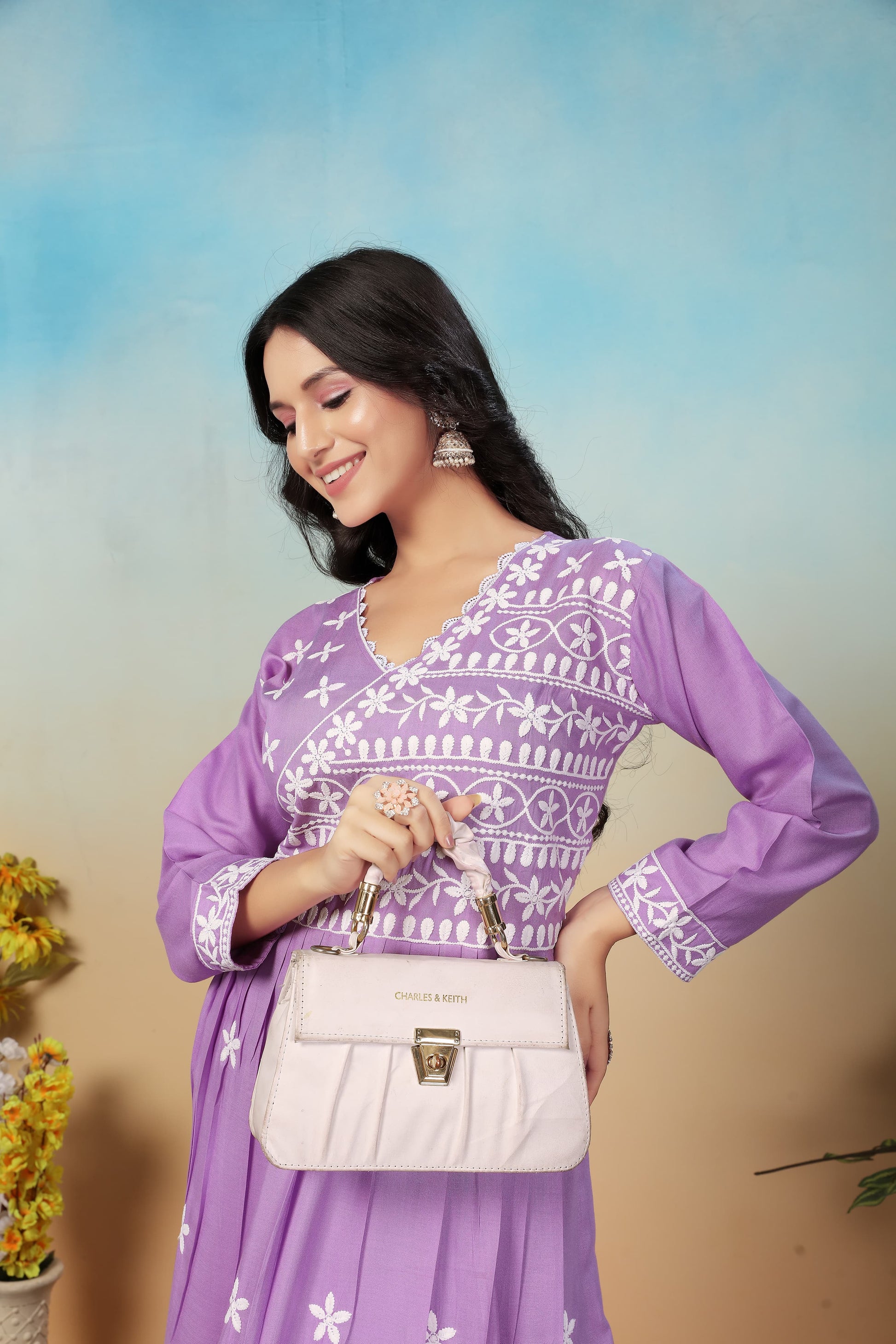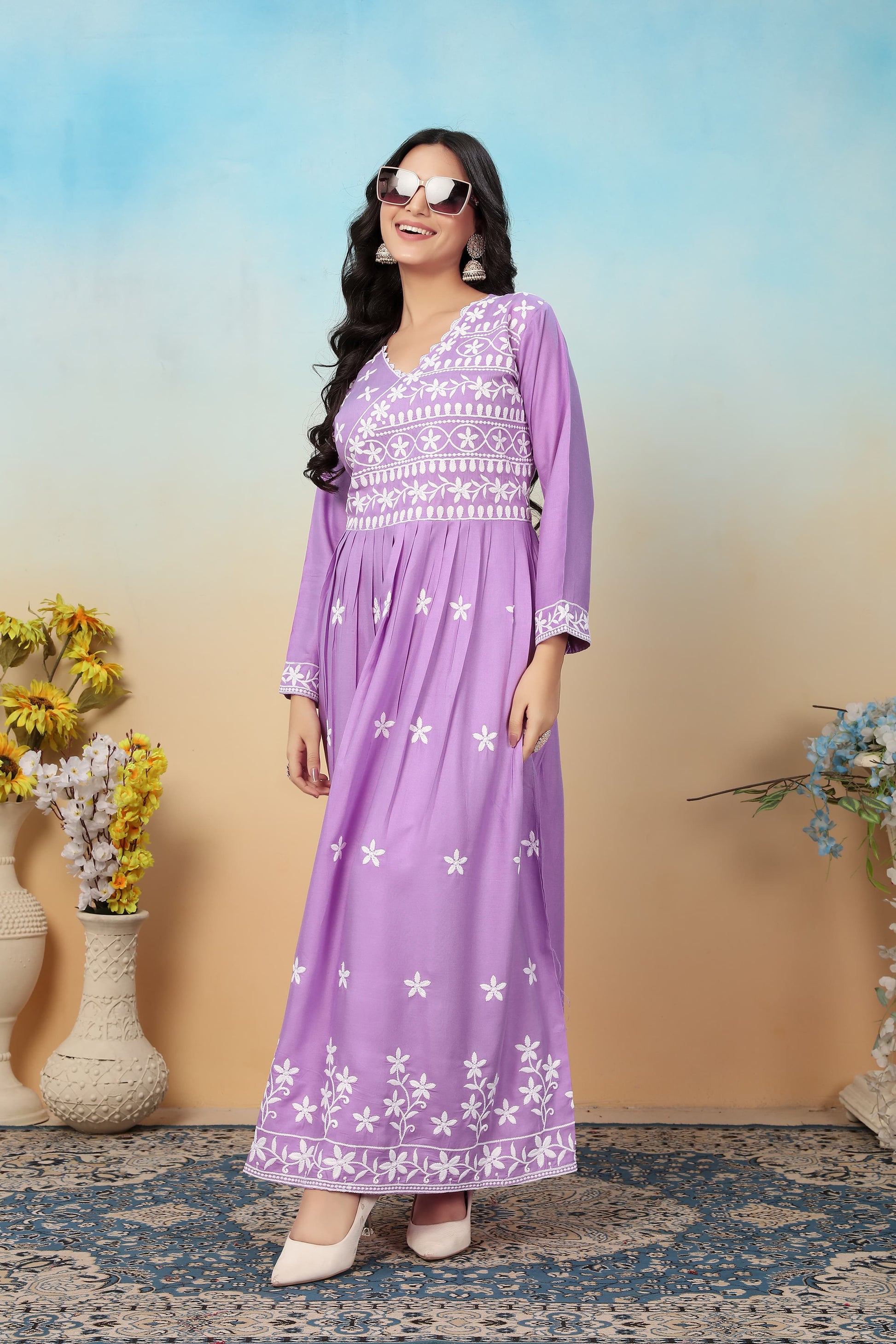 Rayon Fabric Chikankari Gown With Pant for summer wear or office wear