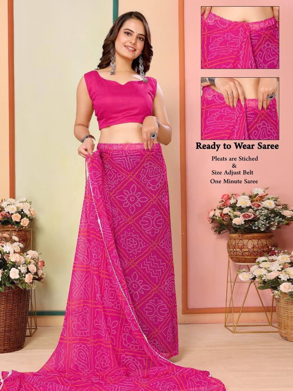 Ready to Wear Saree IN Georgette Fabric in Color Rani