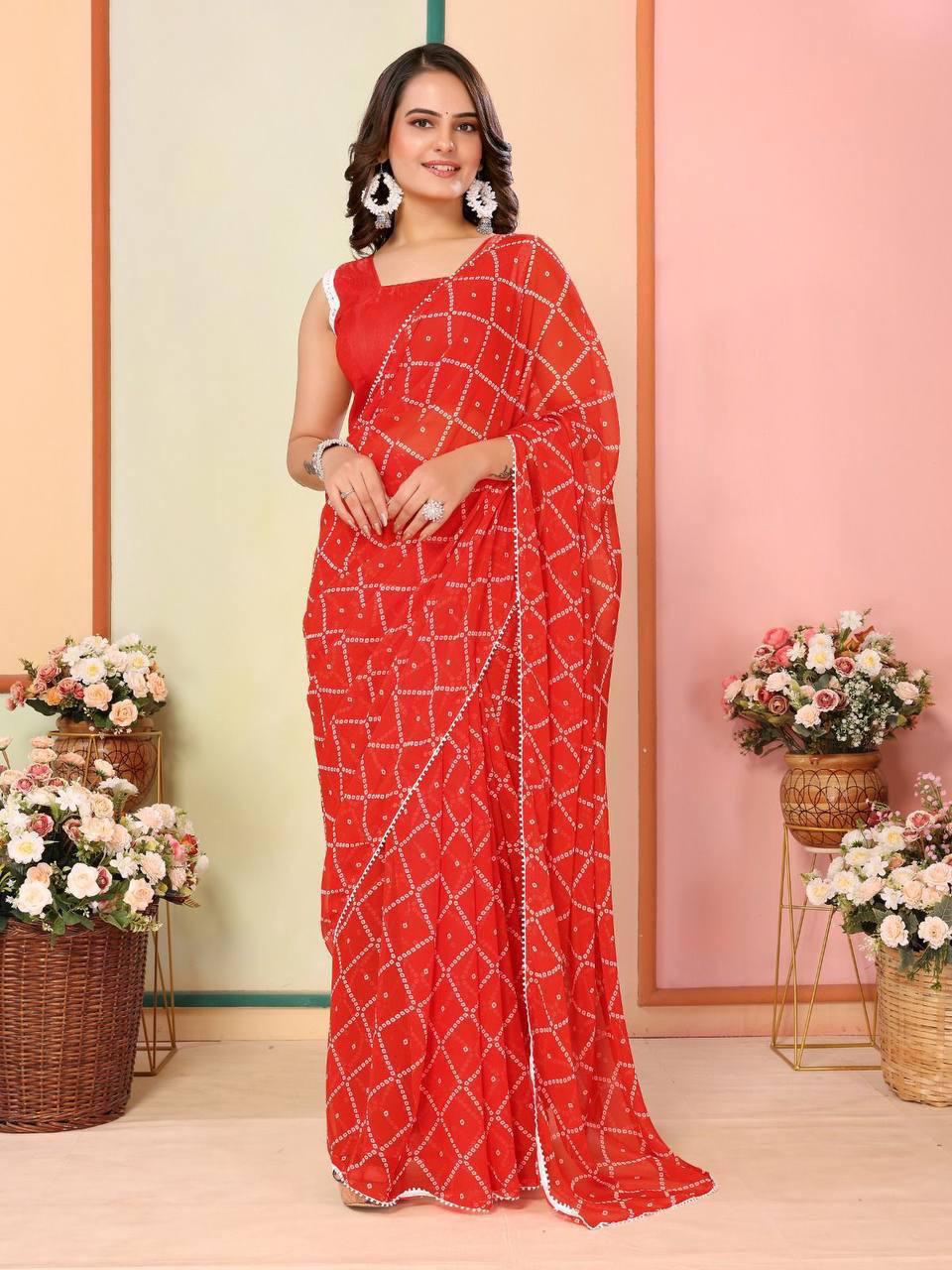 Ready to Wear Saree IN Georgette Fabric in Color Red