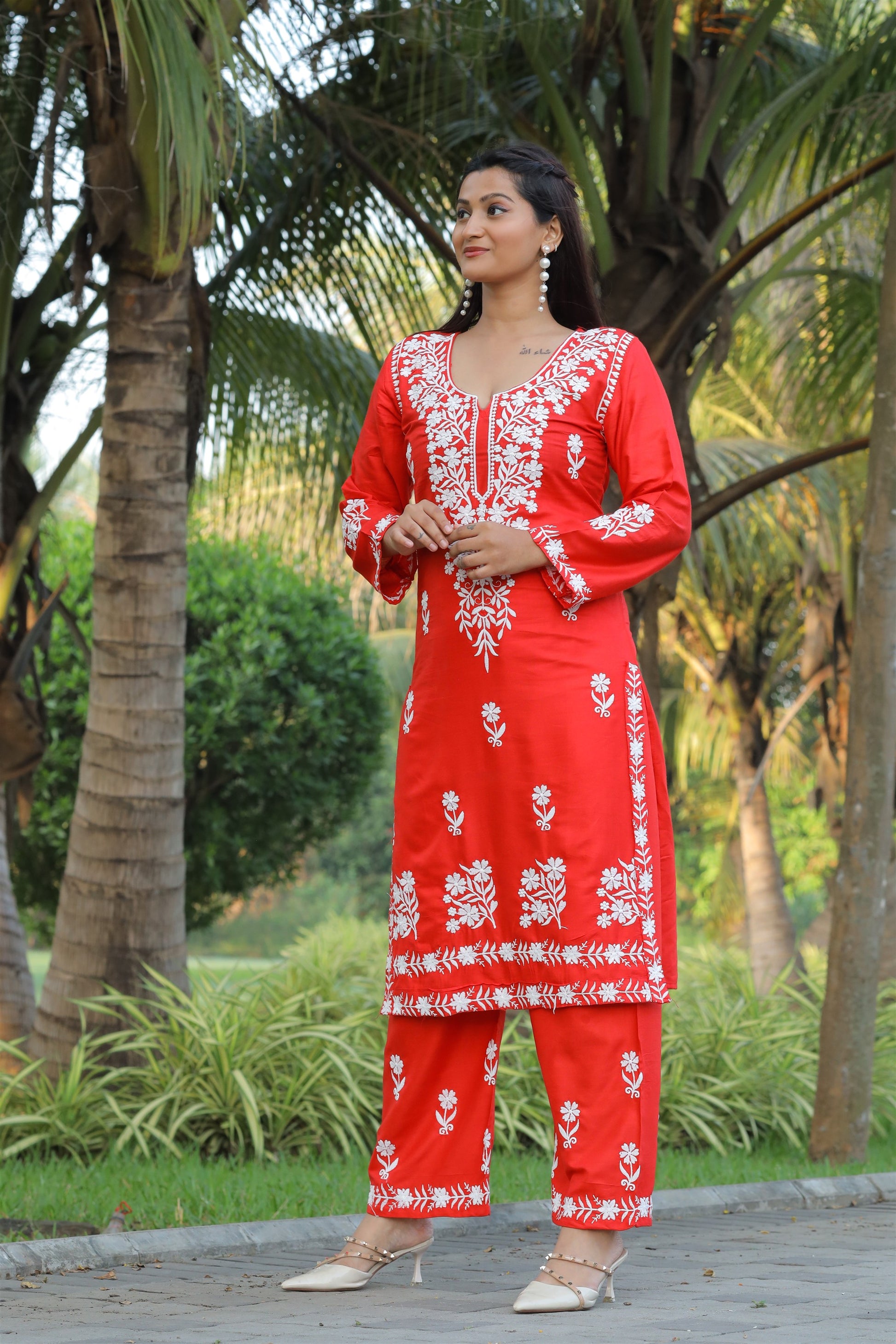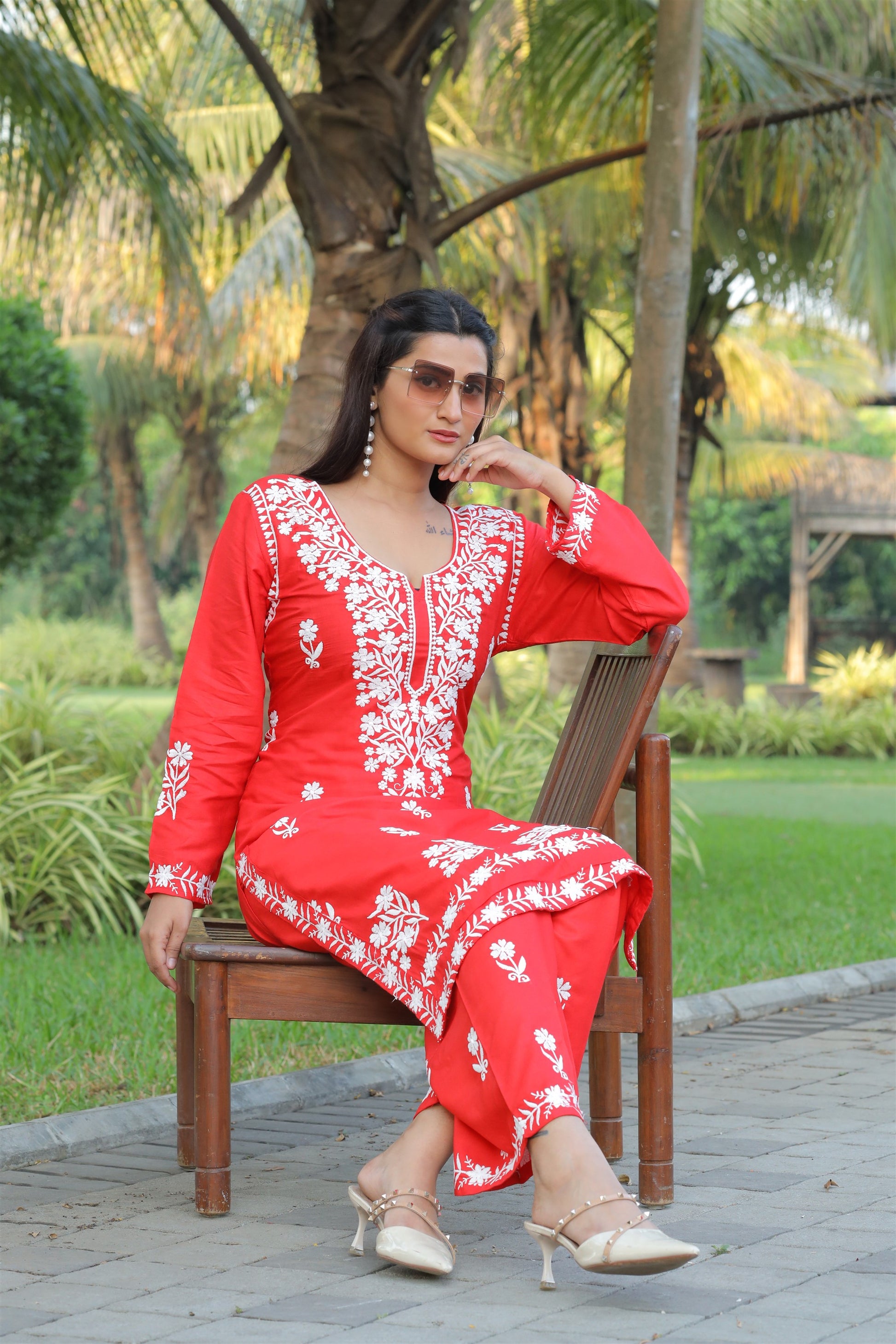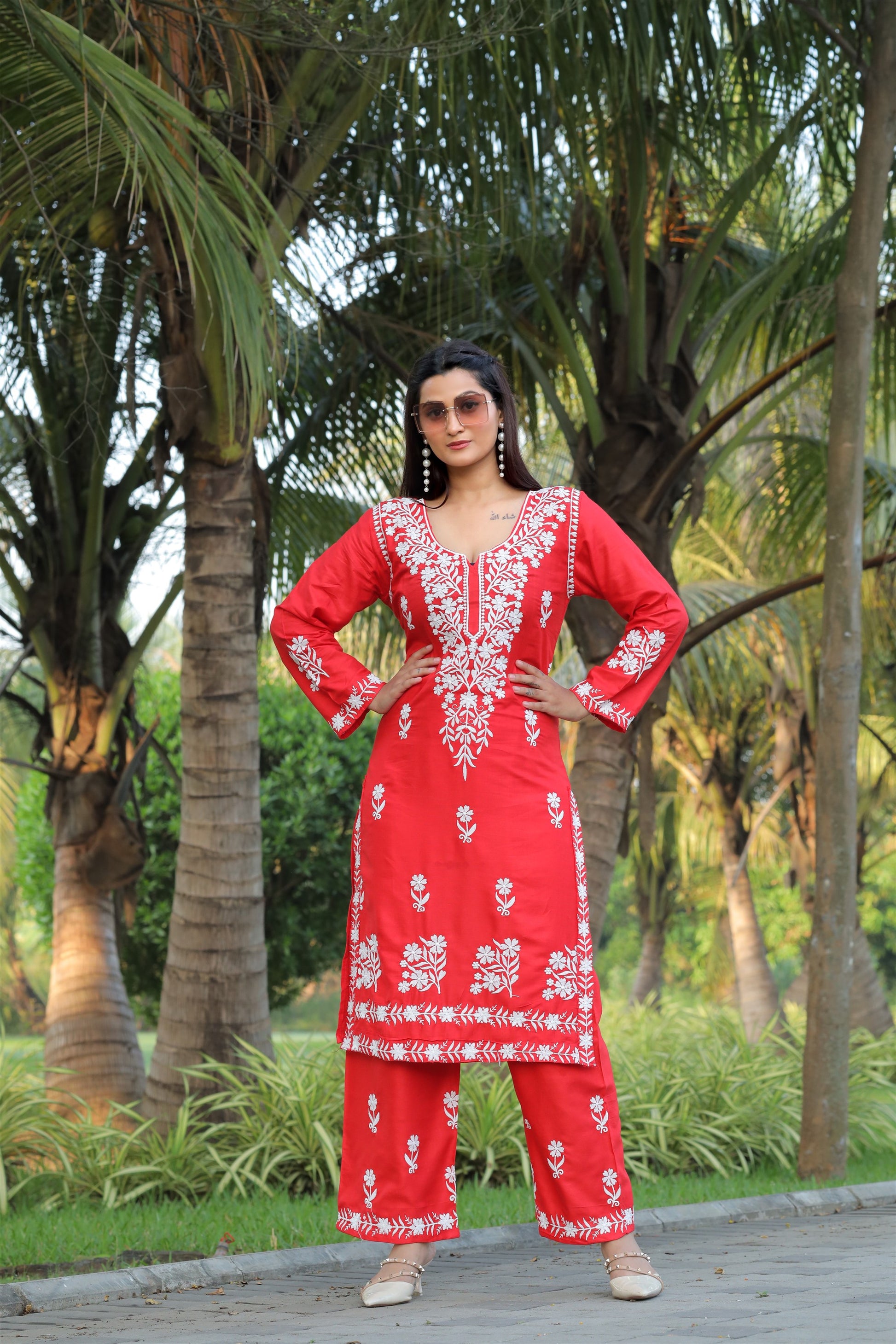 Red Color Beautiful Daily Wear And Summer Wear Kurti With Plazo in Rayon Fabric