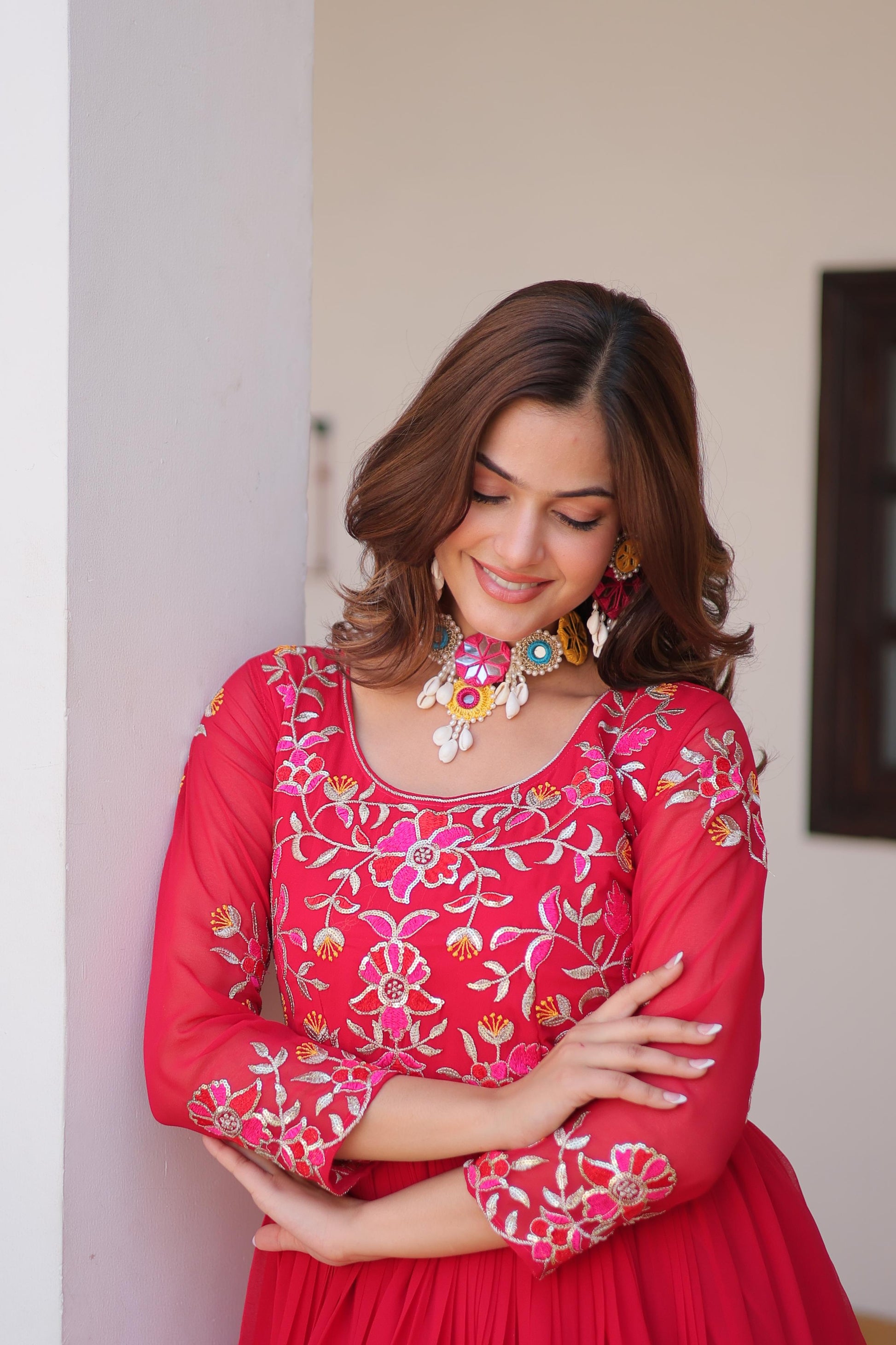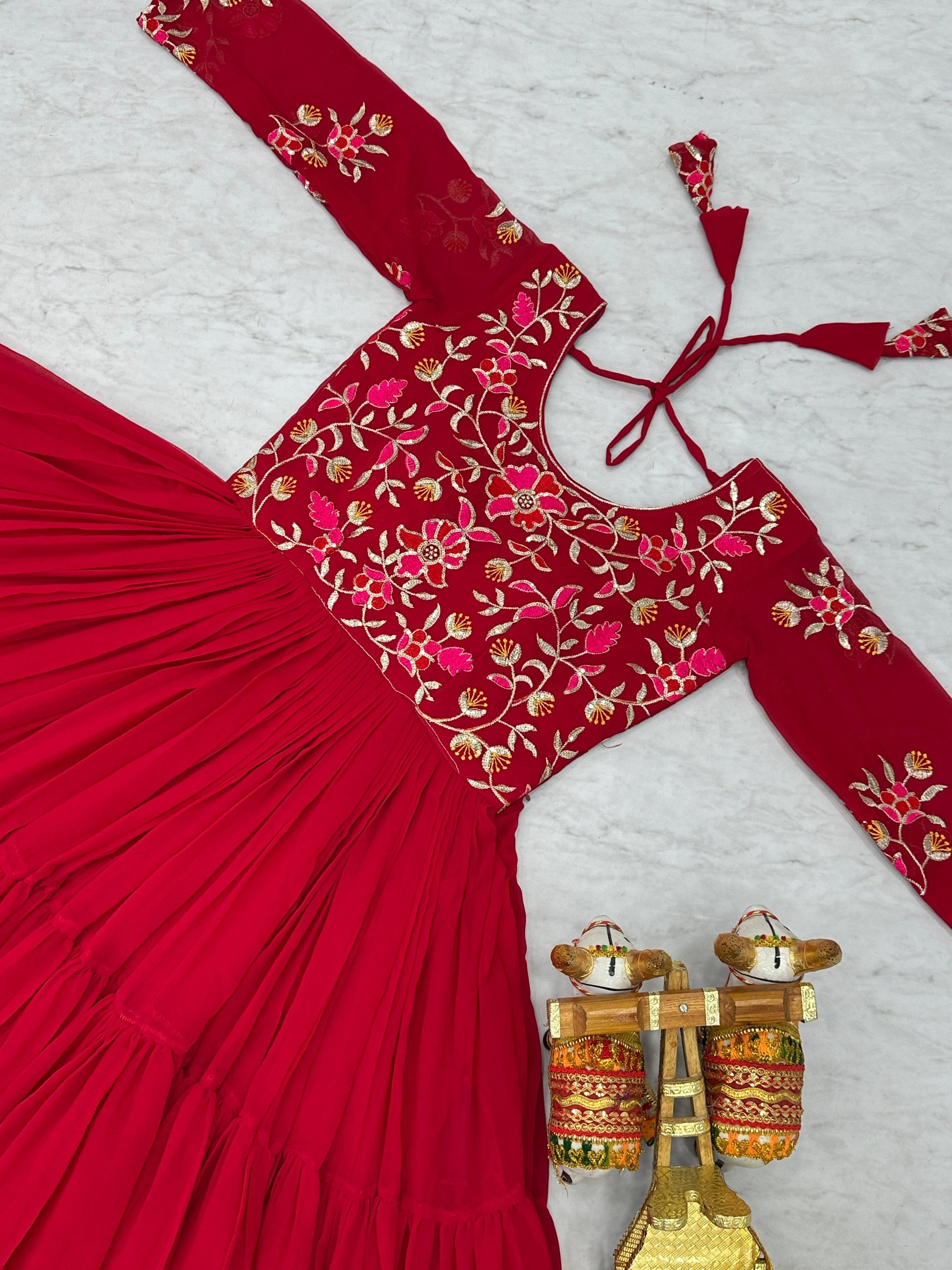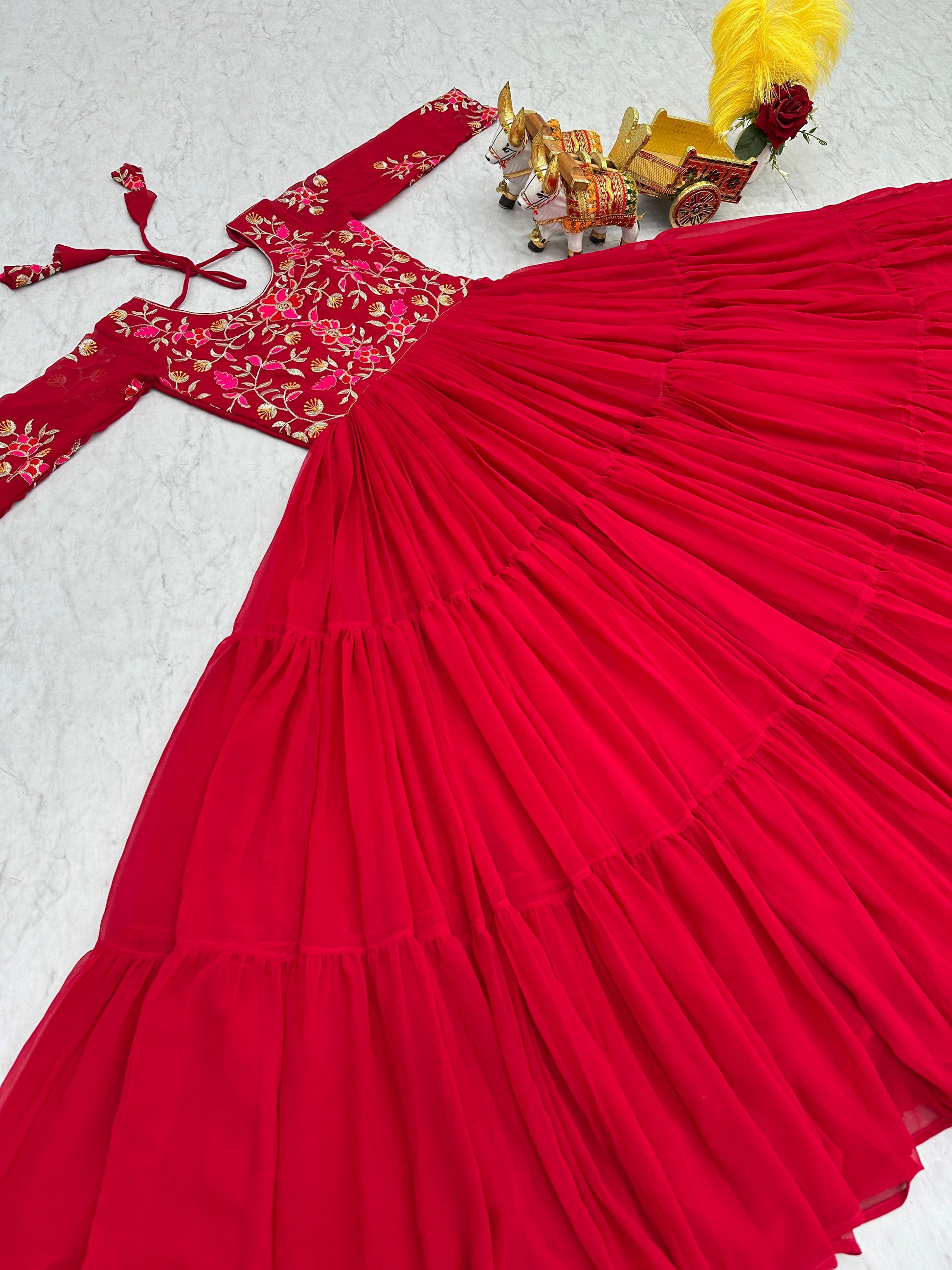 Red Color Beautiful Gown Buy Now In georgette Fabric