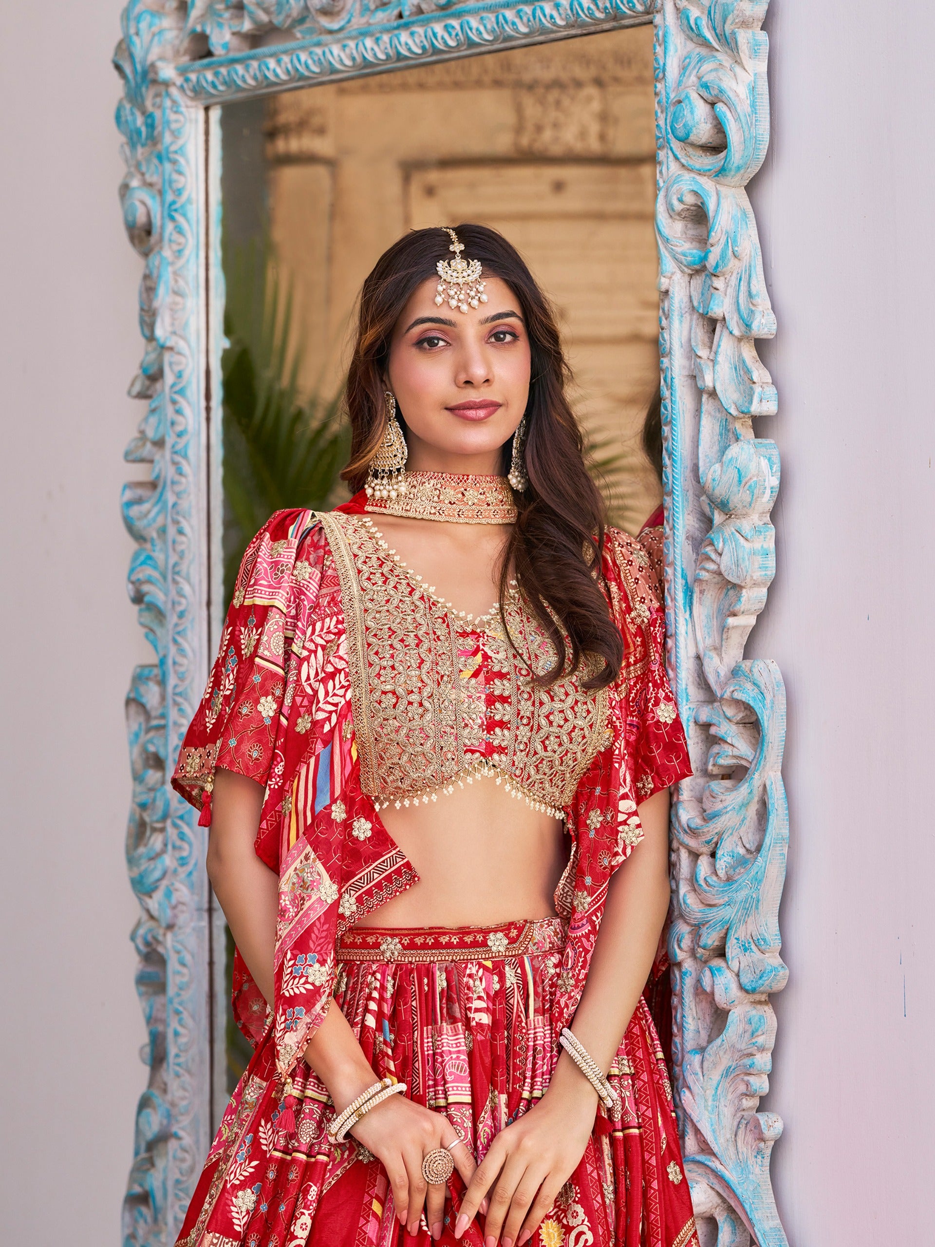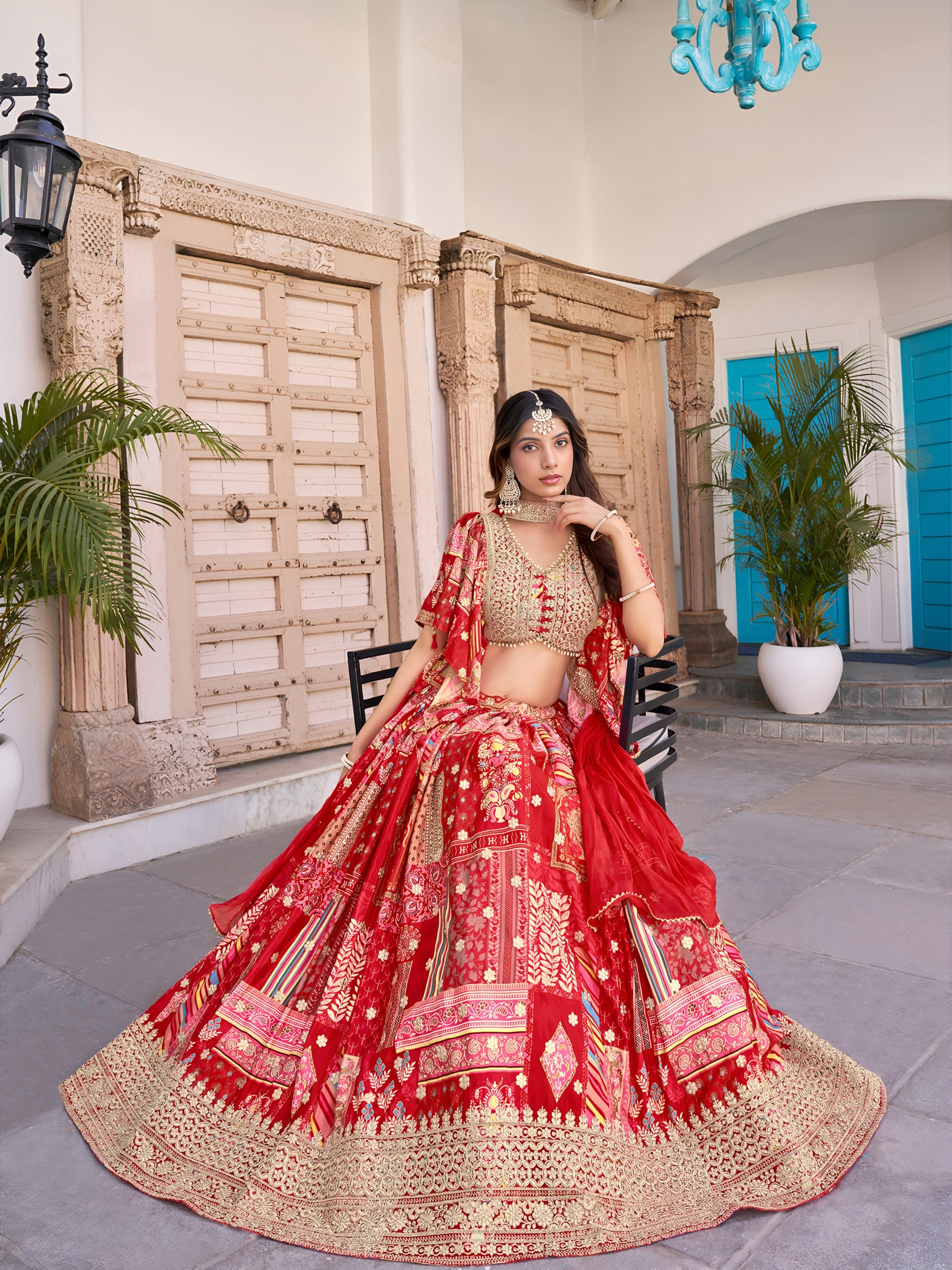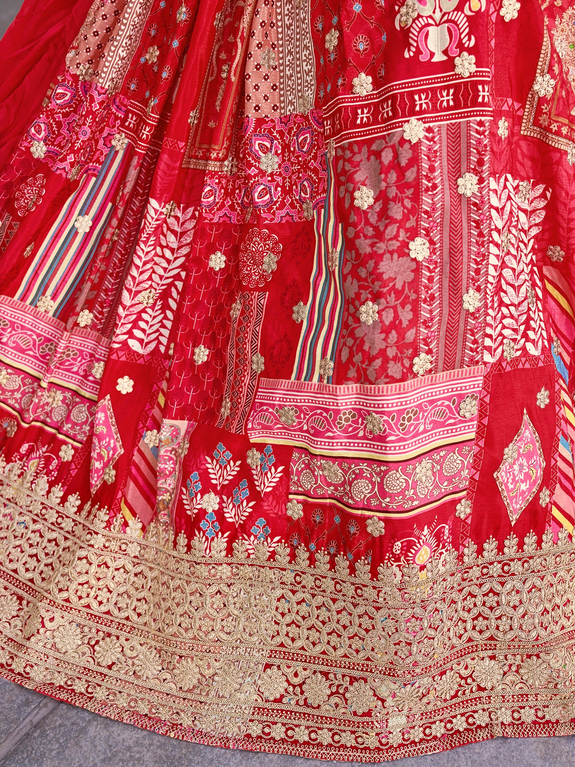 Red Color Beautiful Lehenga Choli in Chinon Silk Fabric