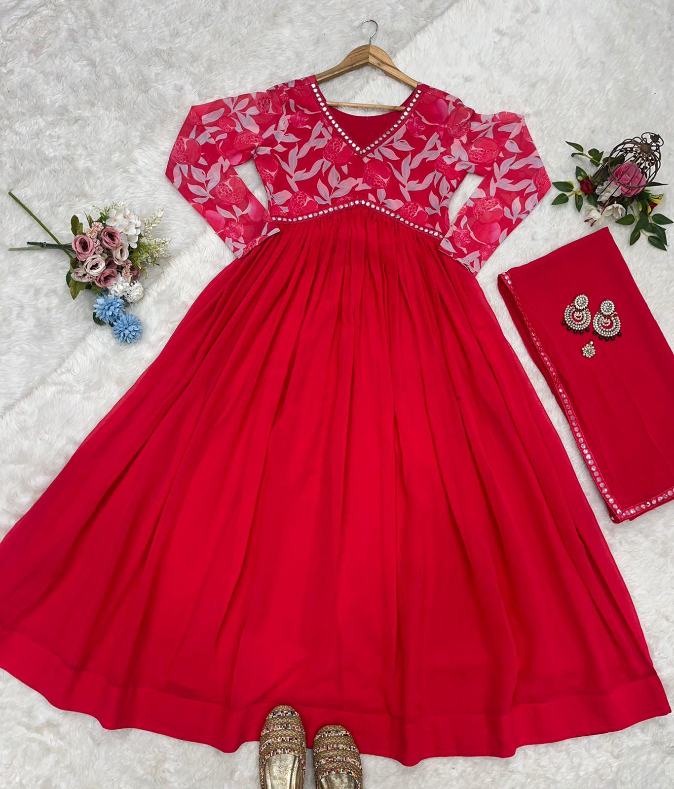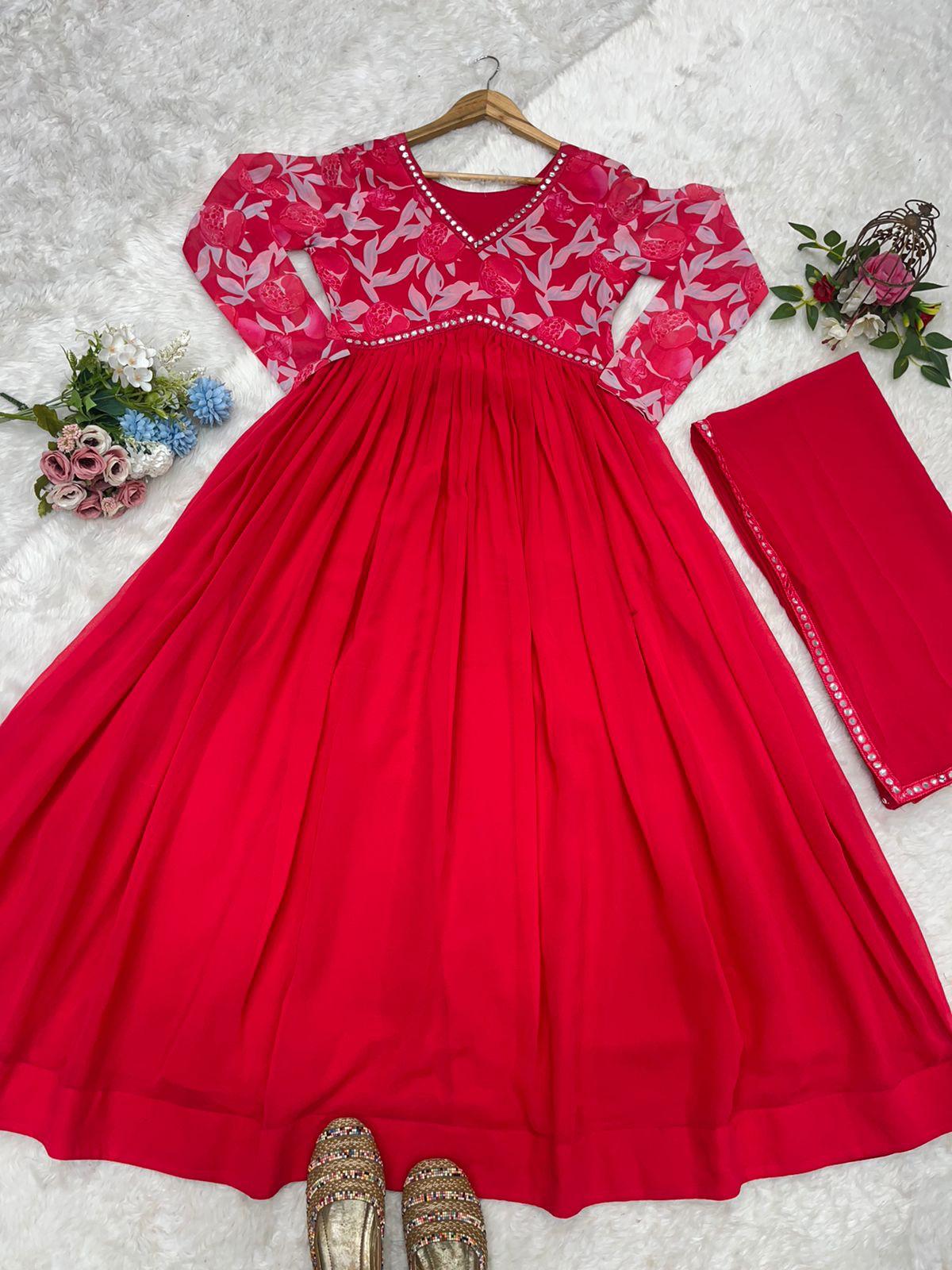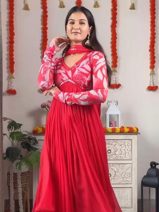 Red Color Beautiful Partywear ANarkali Dress with dupatta