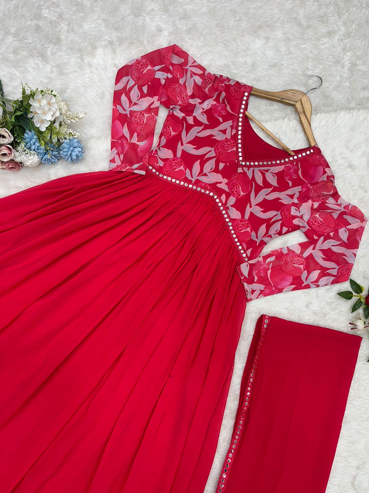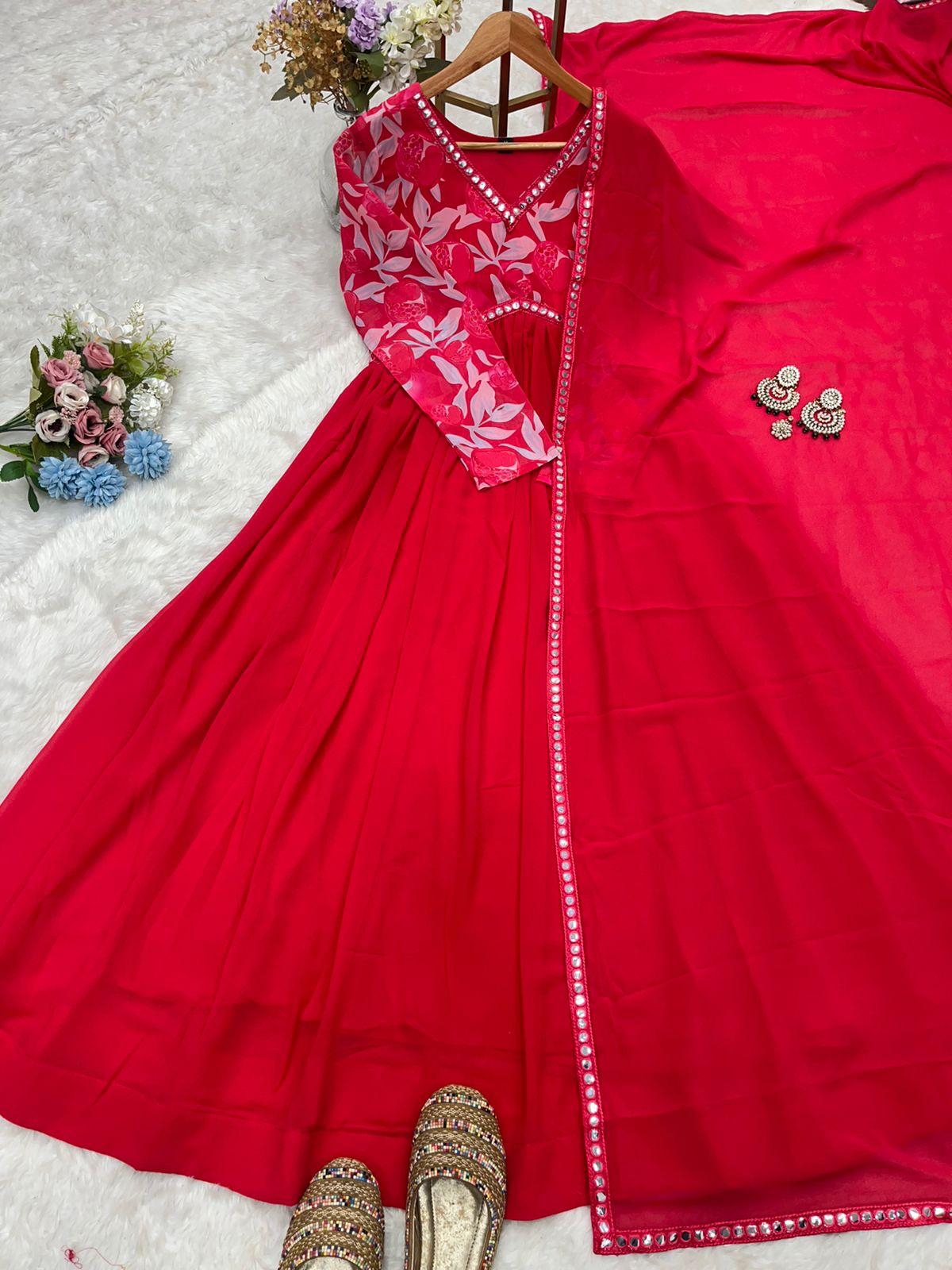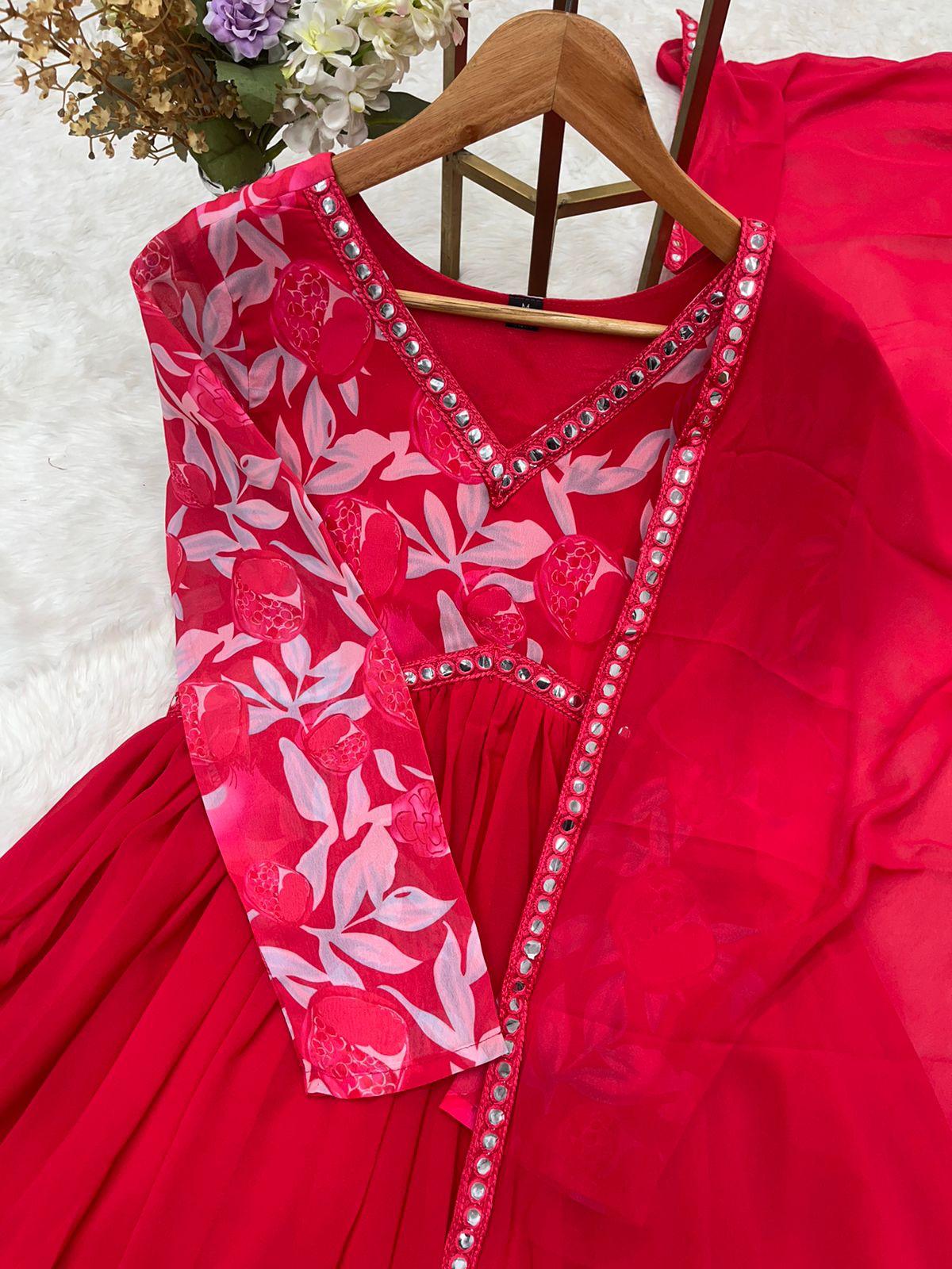 Red Color Beautiful Partywear ANarkali Dress with dupatta