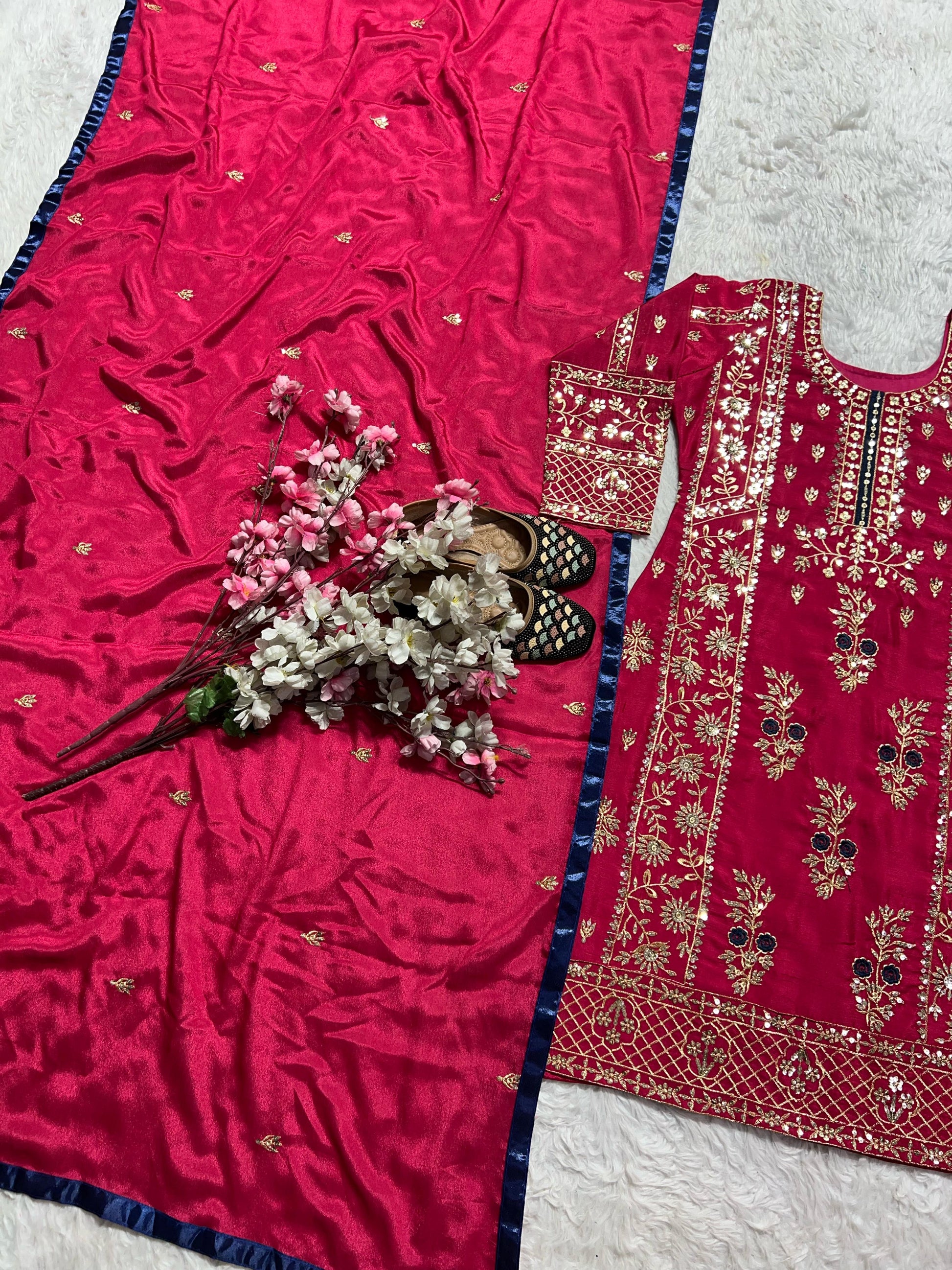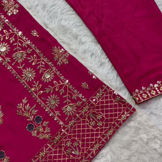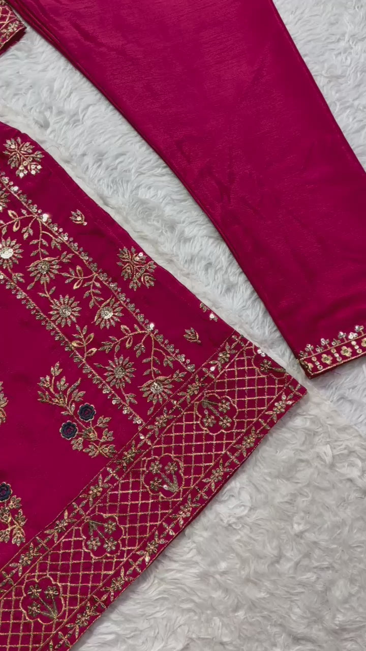 Top Fabric : Pure Heavy Chinnon Silk With 5mm Sequence Multi Embroidery Work. ( Fully Sleeves )