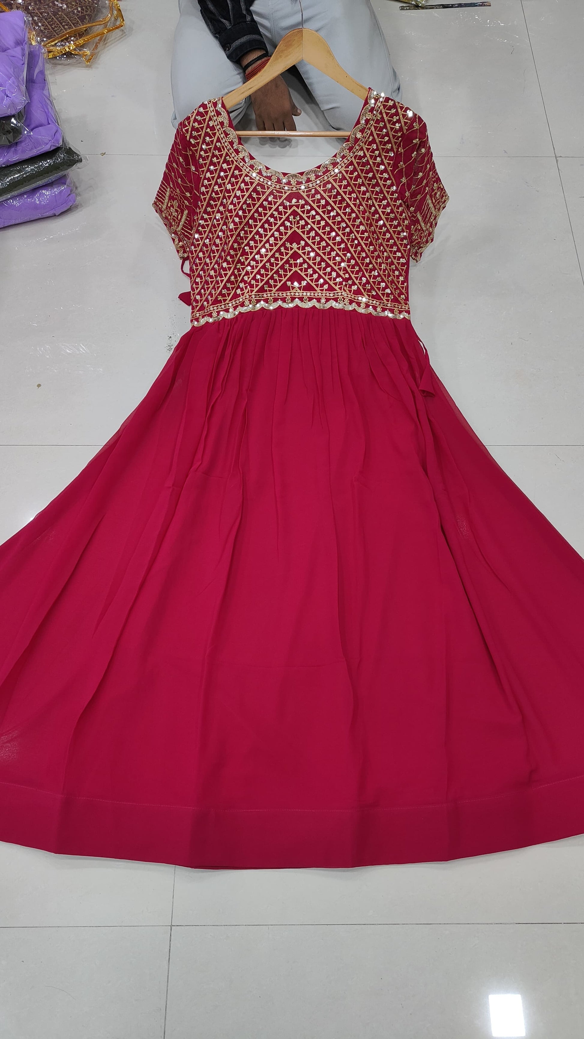 Gown Fabric & Work:- Faux Blooming With Embroidery Zari Sequins-Work