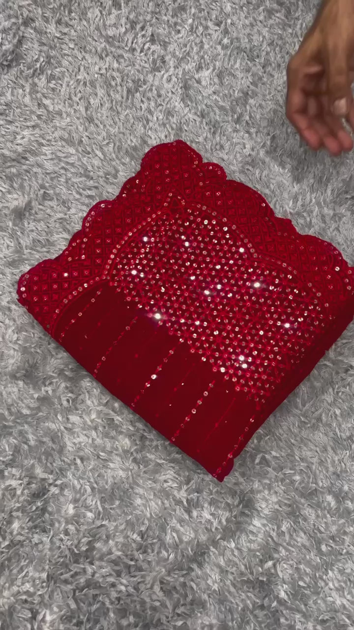 Red Color Beautiful Partywear Saree in Gerogette Fabric